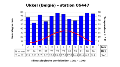 - Recht, de schaal met de gemiddelde temperaturen (in °).