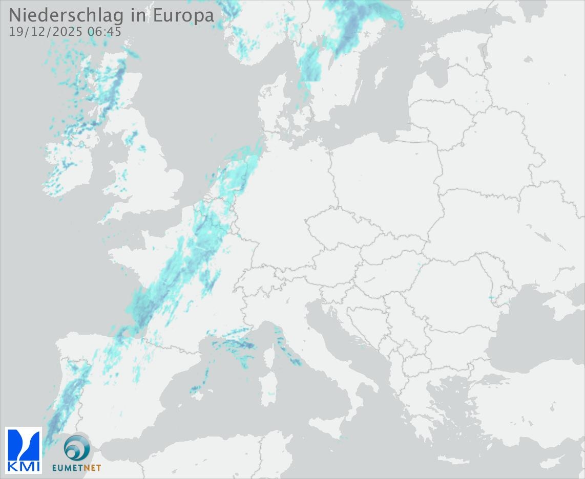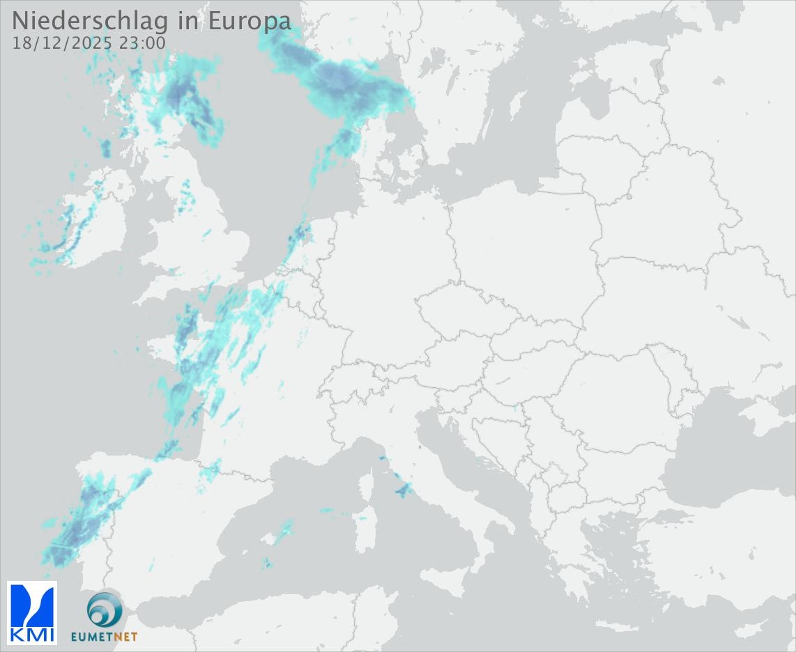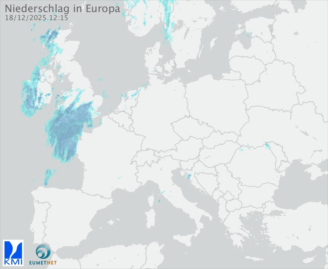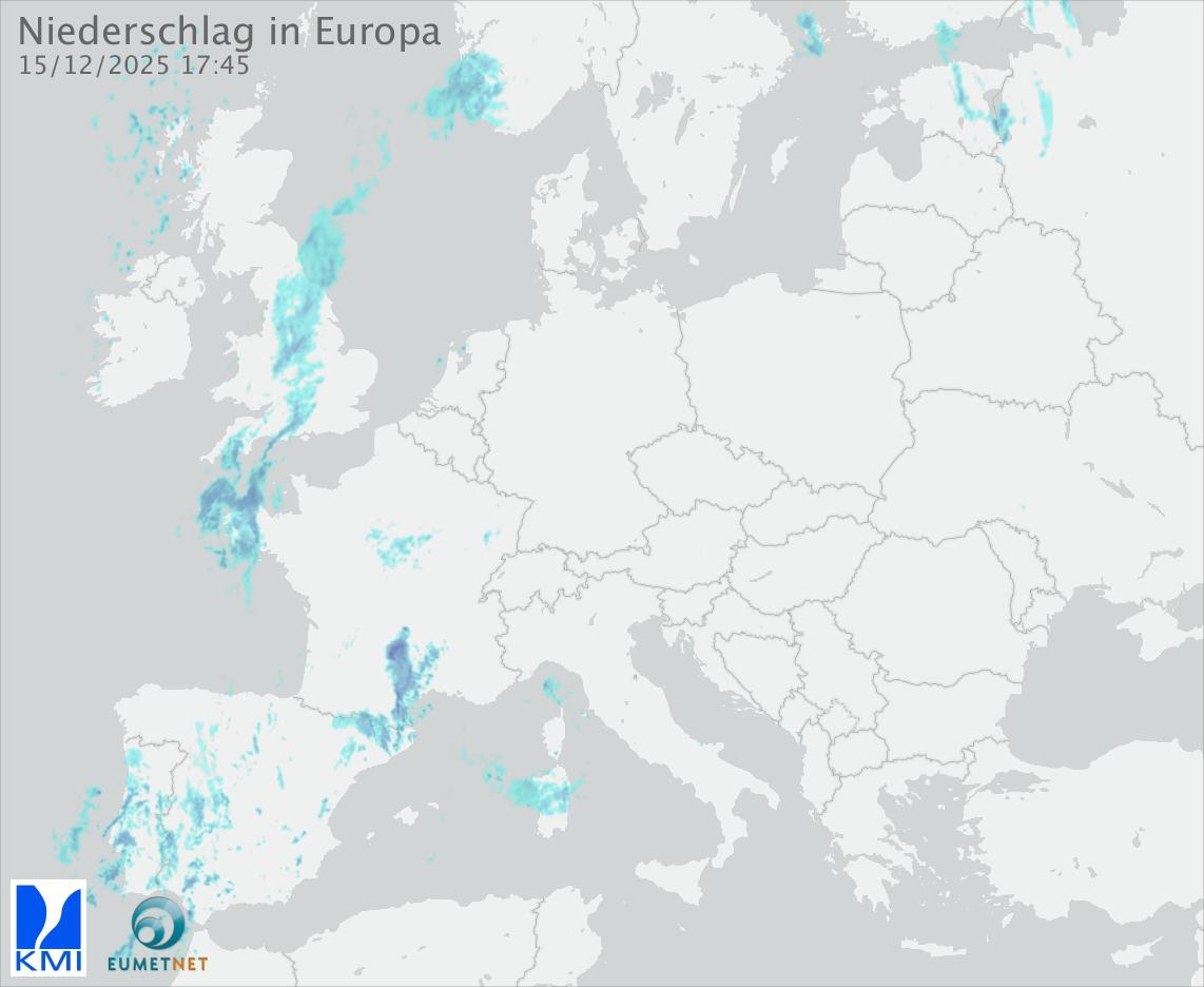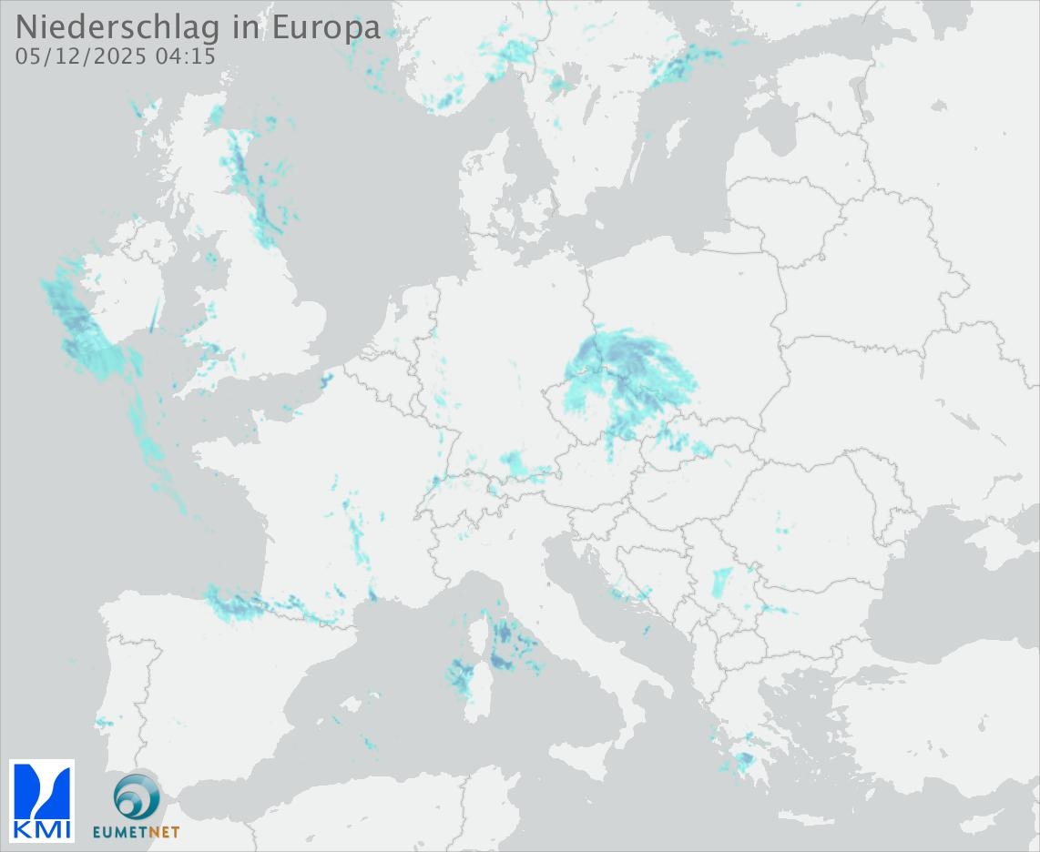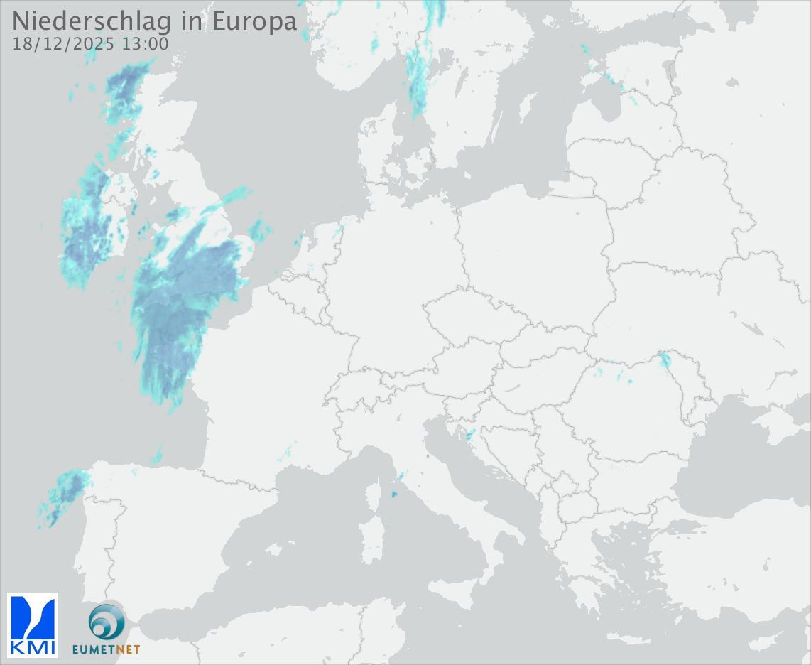 Diese Animation zeigt den gefallenen Niederschlag, gemessen durch die Regenradargeräte der europäischen Teilnehmer des Eumetnet-Programms OPERA (in 15-Minuten-Intervallen).