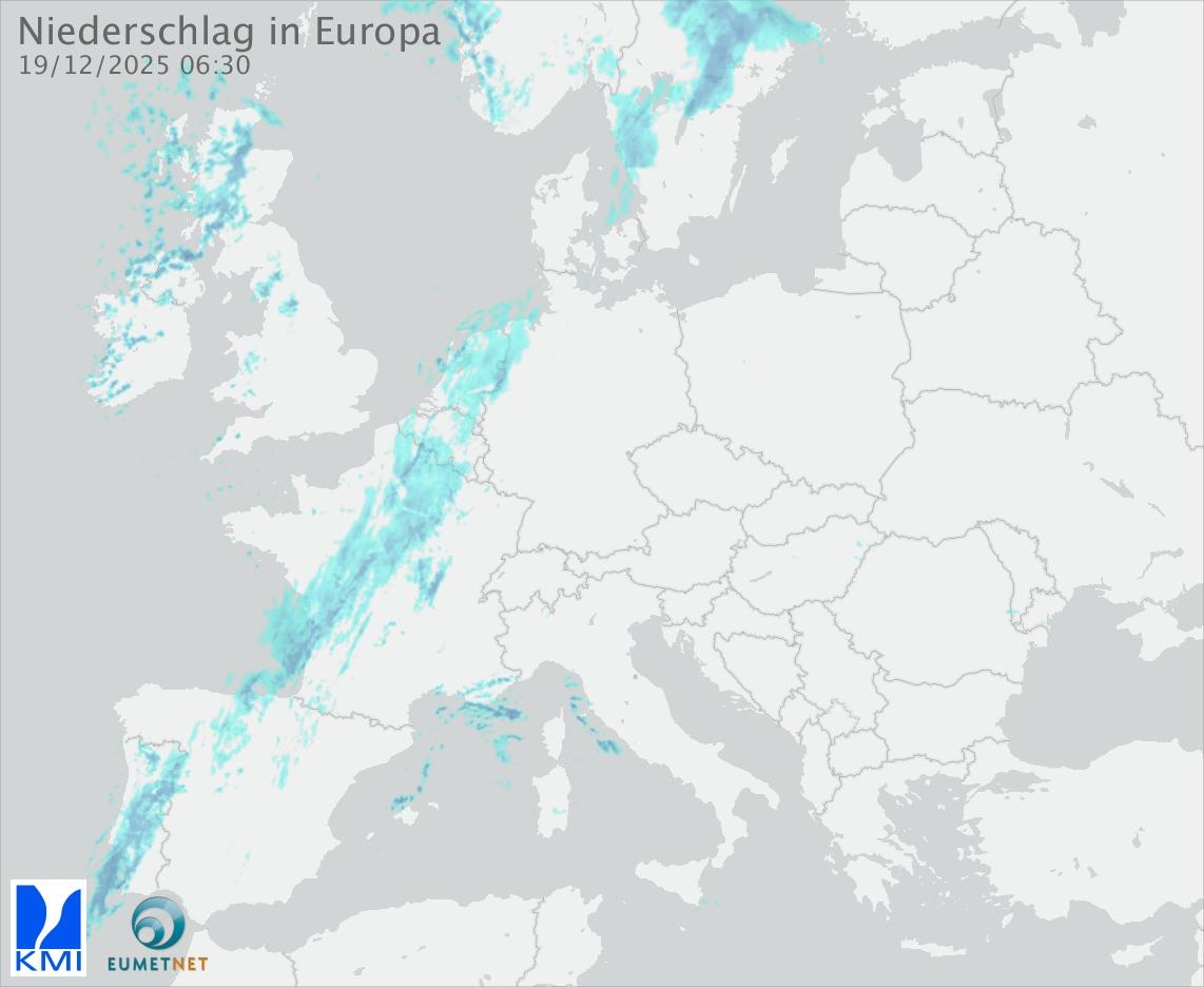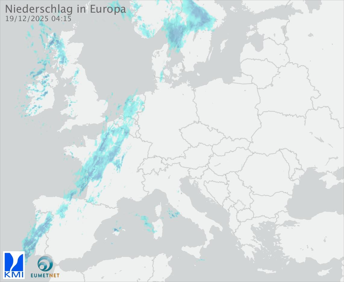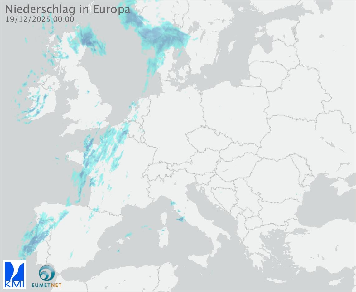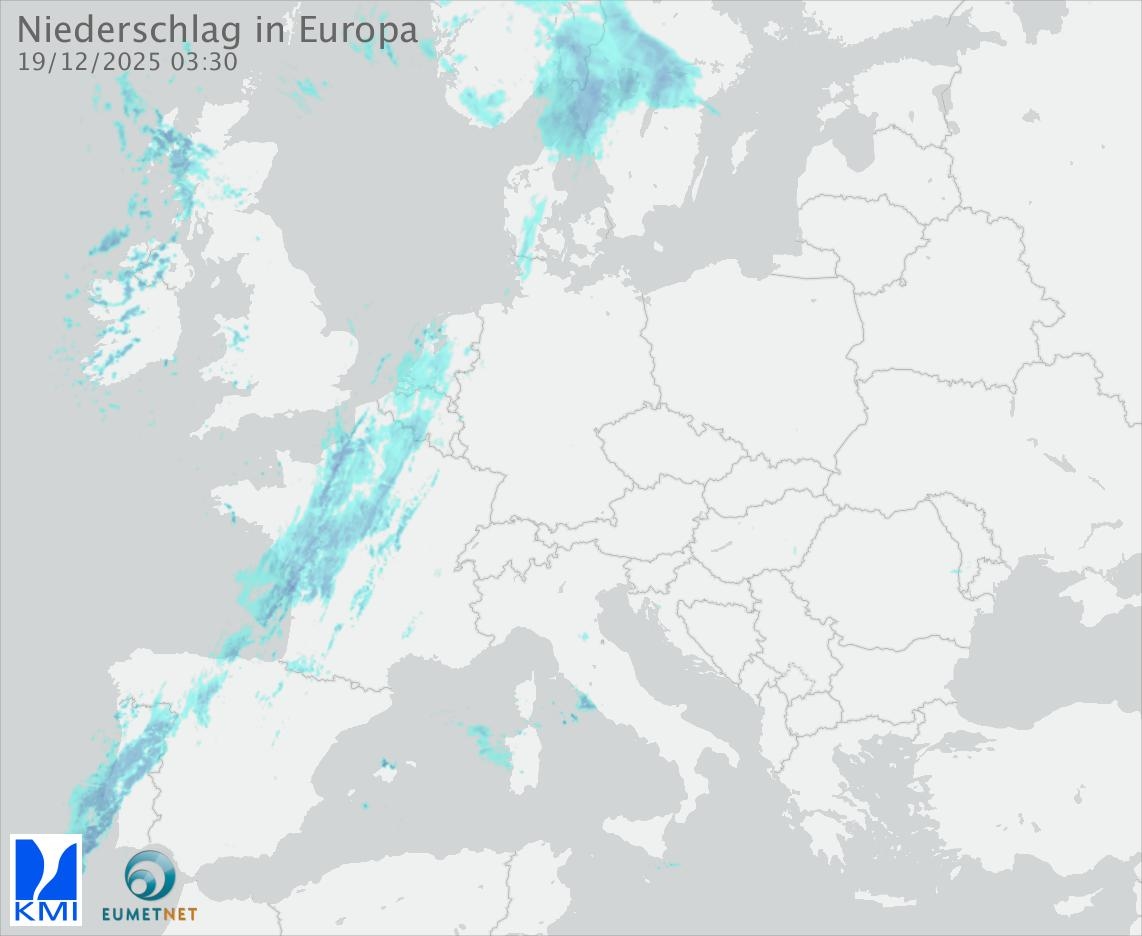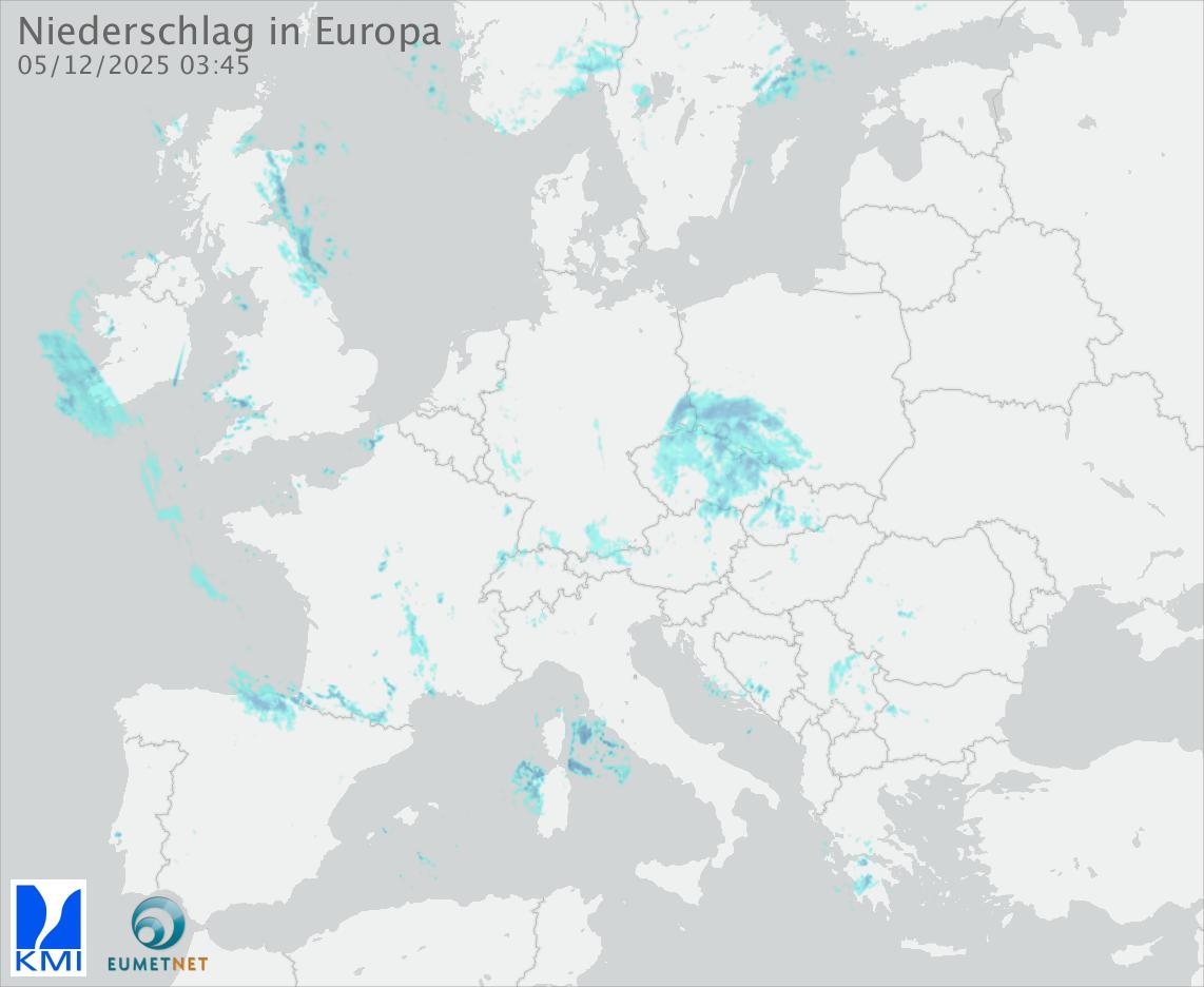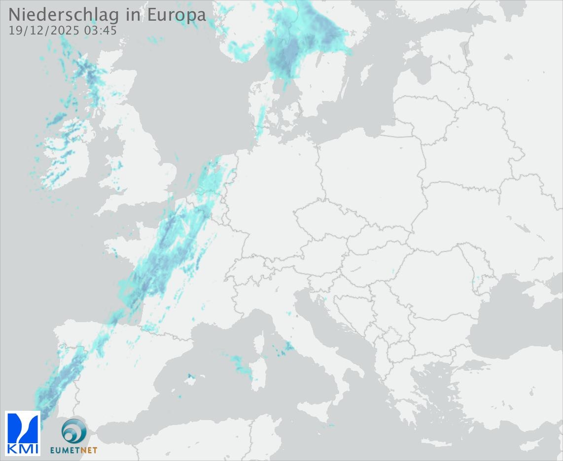 Diese Animation zeigt den gefallenen Niederschlag, gemessen durch die Regenradargeräte der europäischen Teilnehmer des Eumetnet-Programms OPERA (in 15-Minuten-Intervallen).