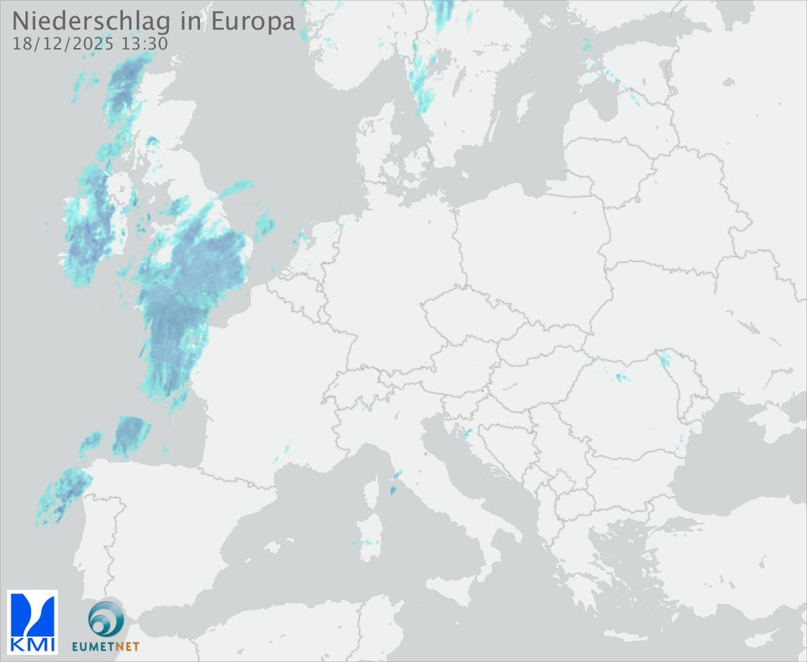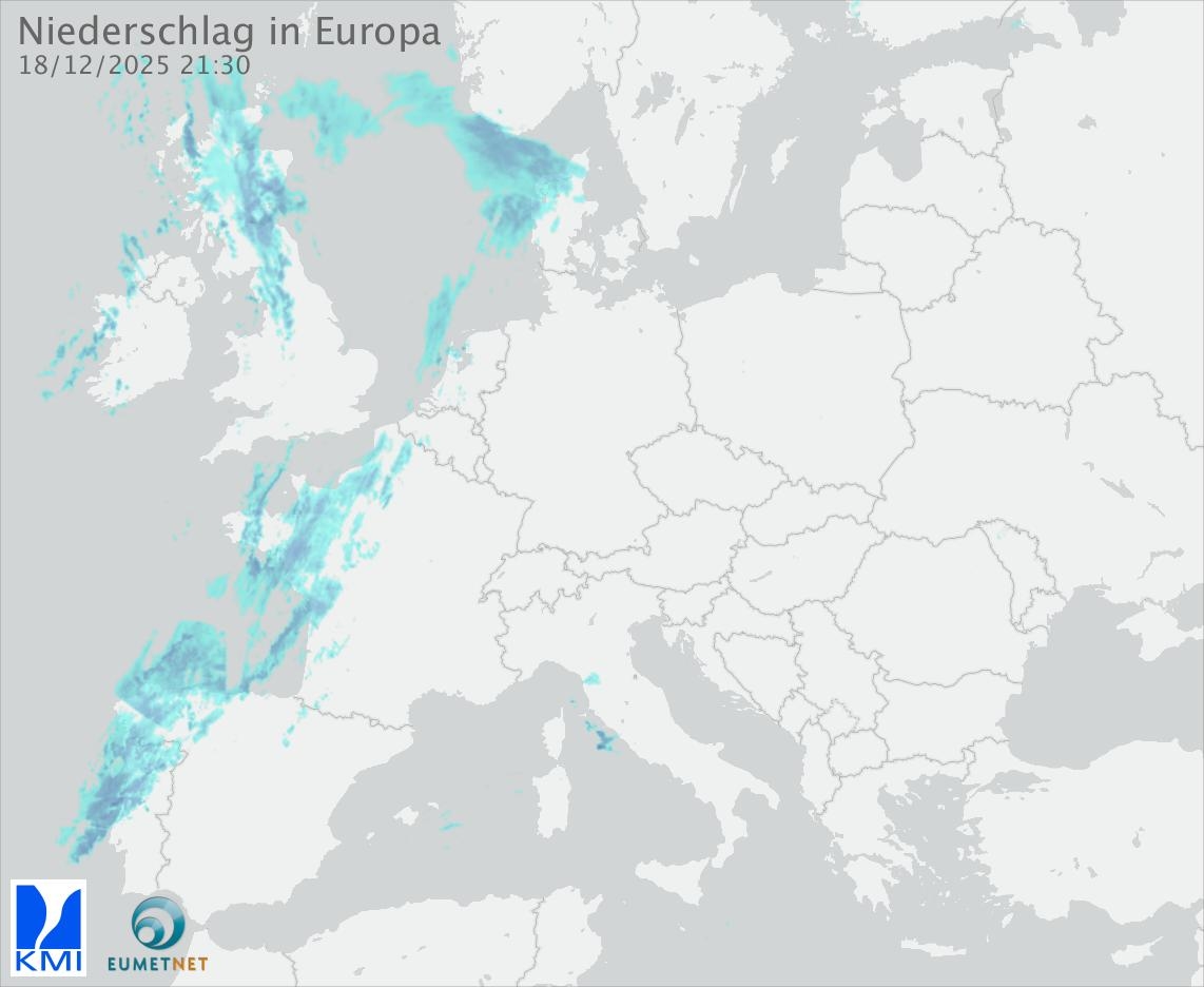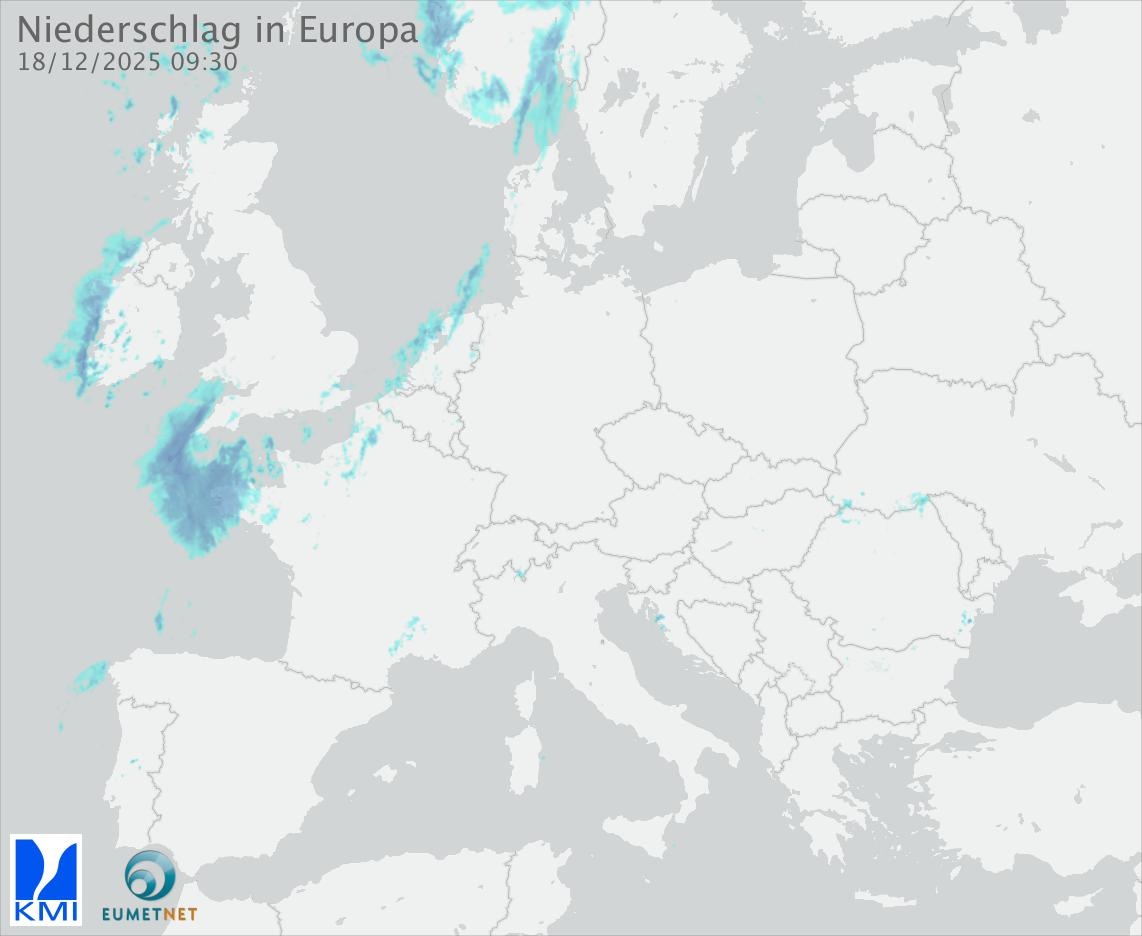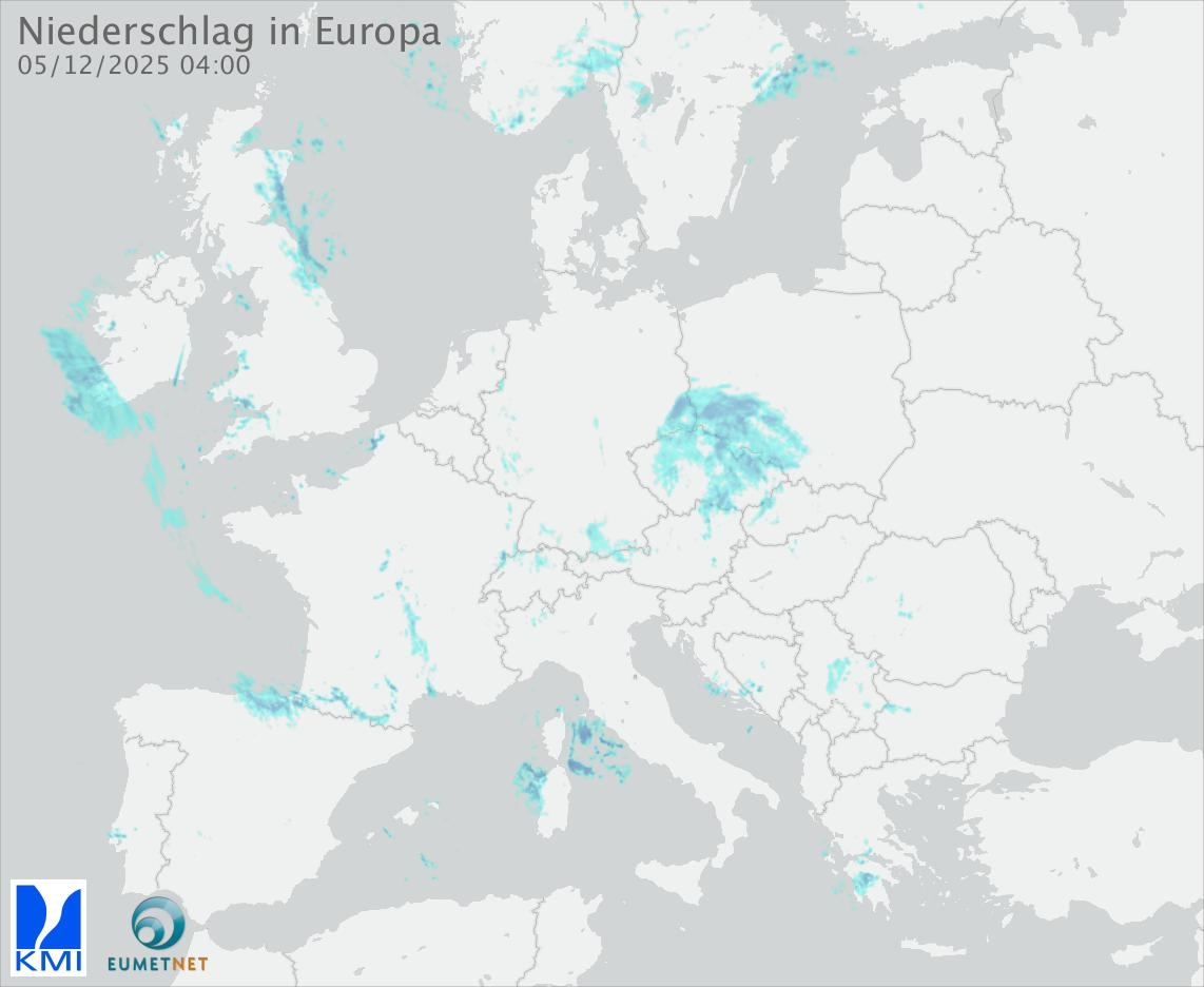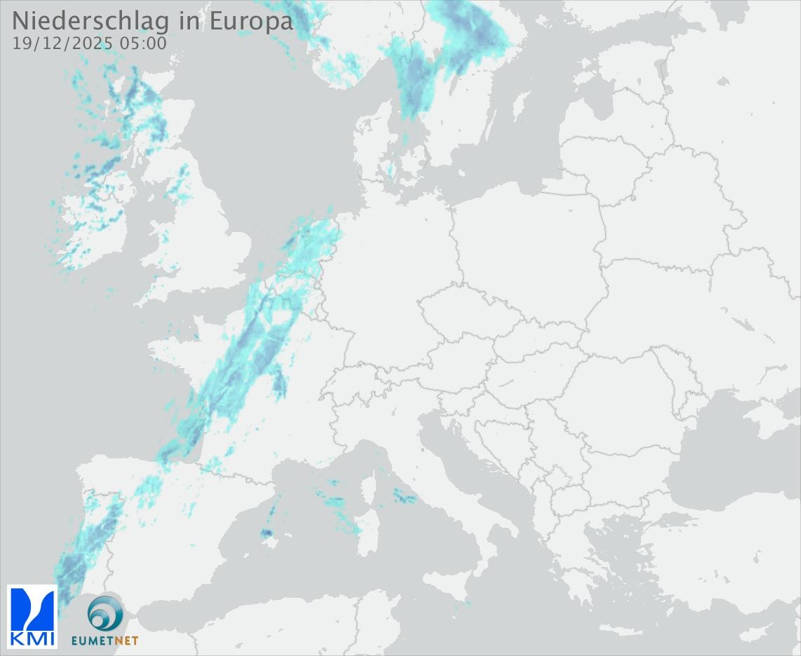 Diese Animation zeigt den gefallenen Niederschlag, gemessen durch die Regenradargeräte der europäischen Teilnehmer des Eumetnet-Programms OPERA (in 15-Minuten-Intervallen).