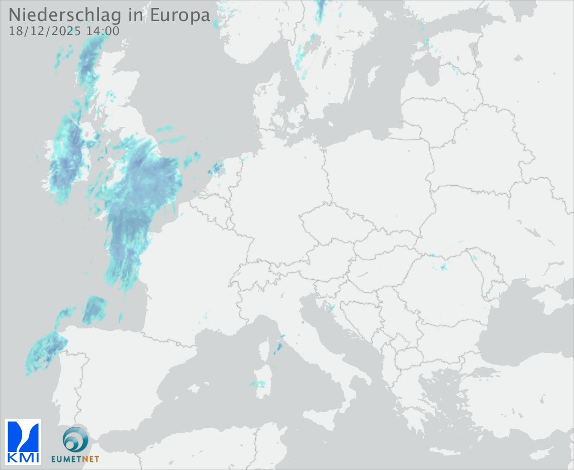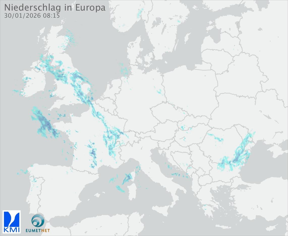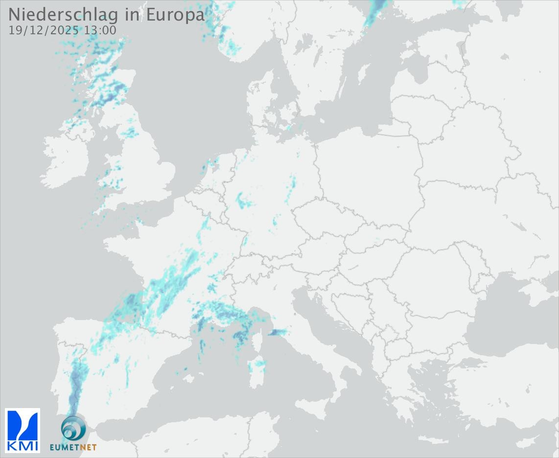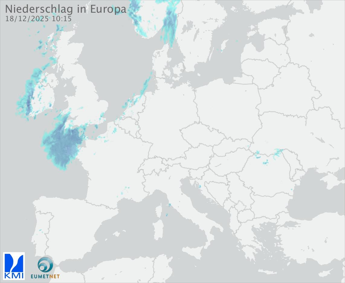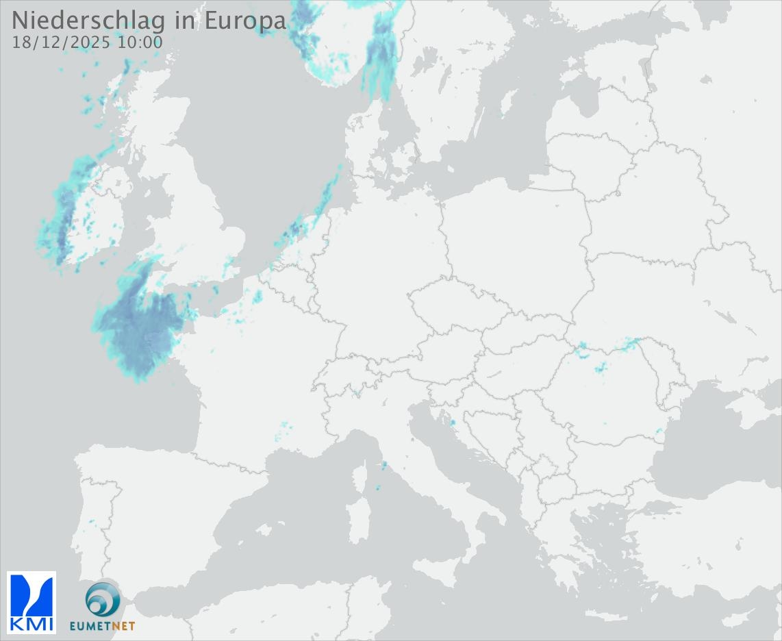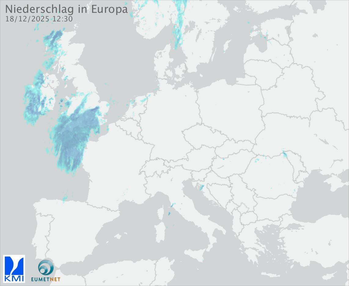 Diese Animation zeigt den gefallenen Niederschlag, gemessen durch die Regenradargeräte der europäischen Teilnehmer des Eumetnet-Programms OPERA (in 15-Minuten-Intervallen).