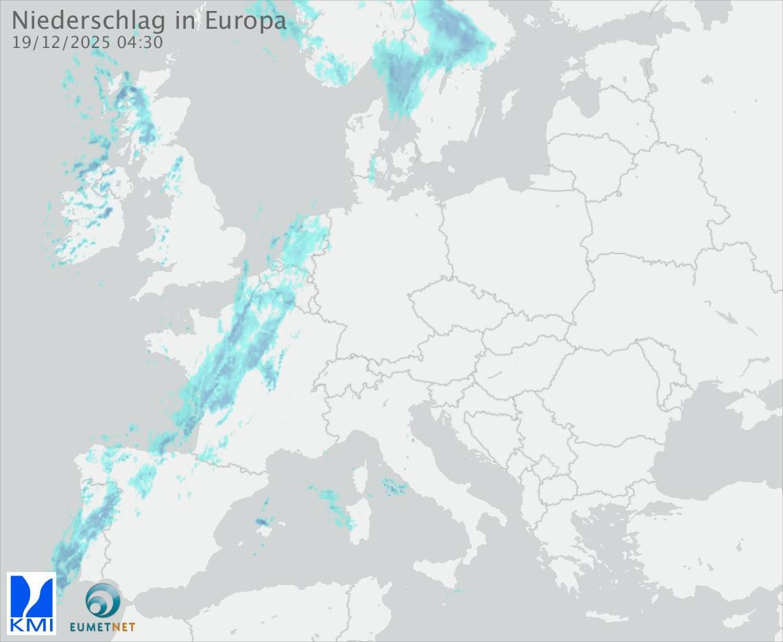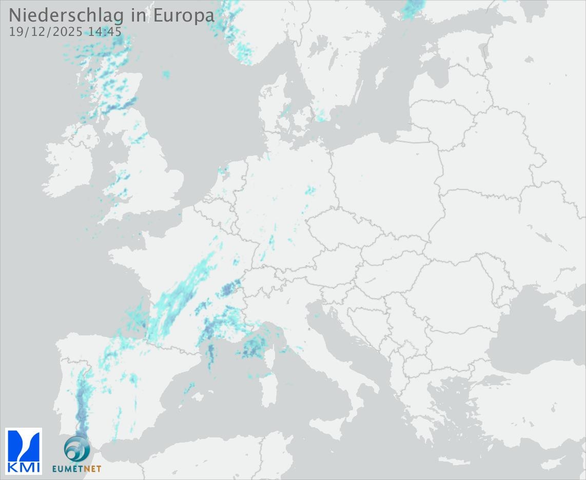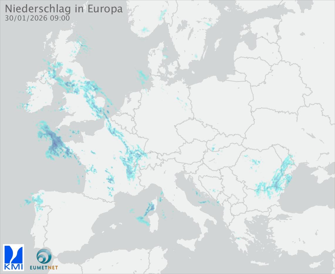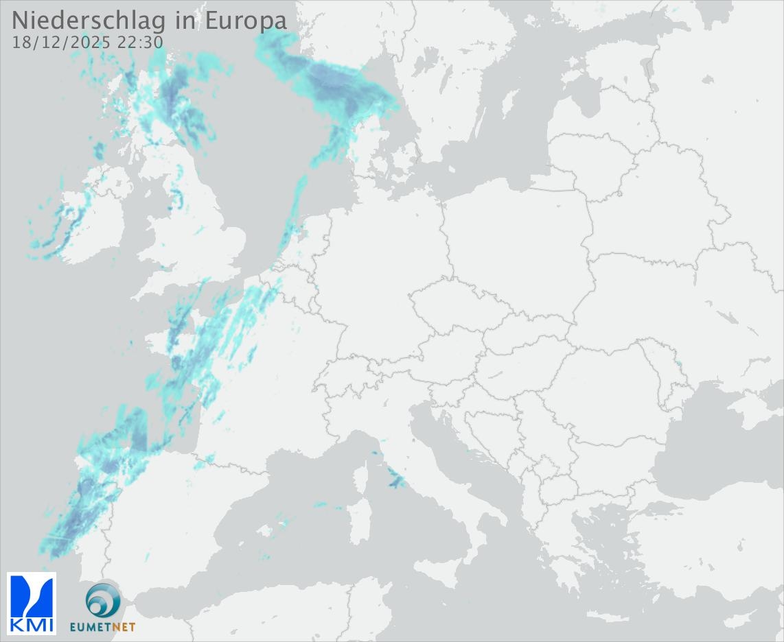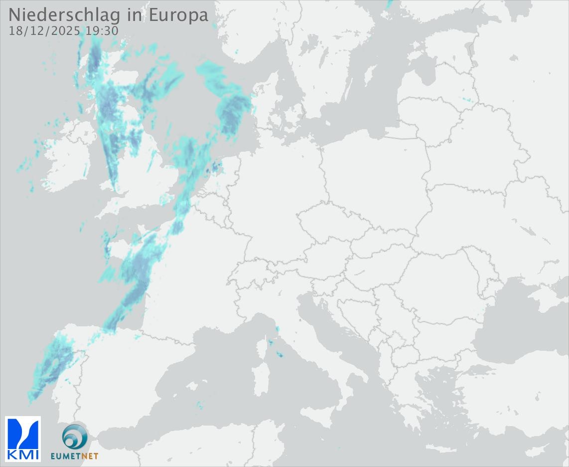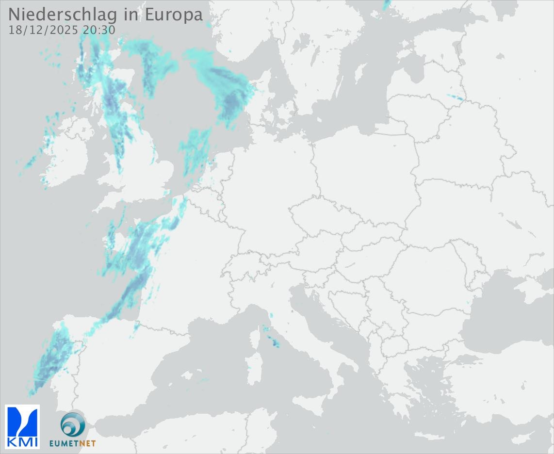 Diese Animation zeigt den gefallenen Niederschlag, gemessen durch die Regenradargeräte der europäischen Teilnehmer des Eumetnet-Programms OPERA (in 15-Minuten-Intervallen).