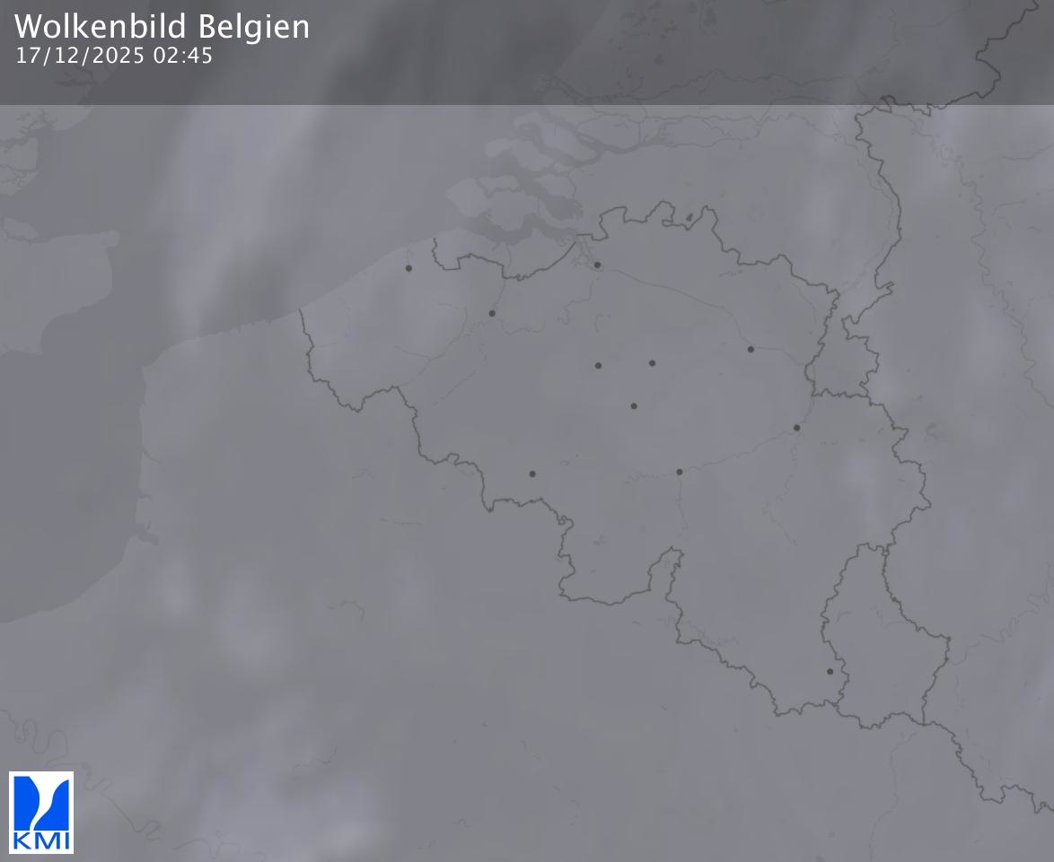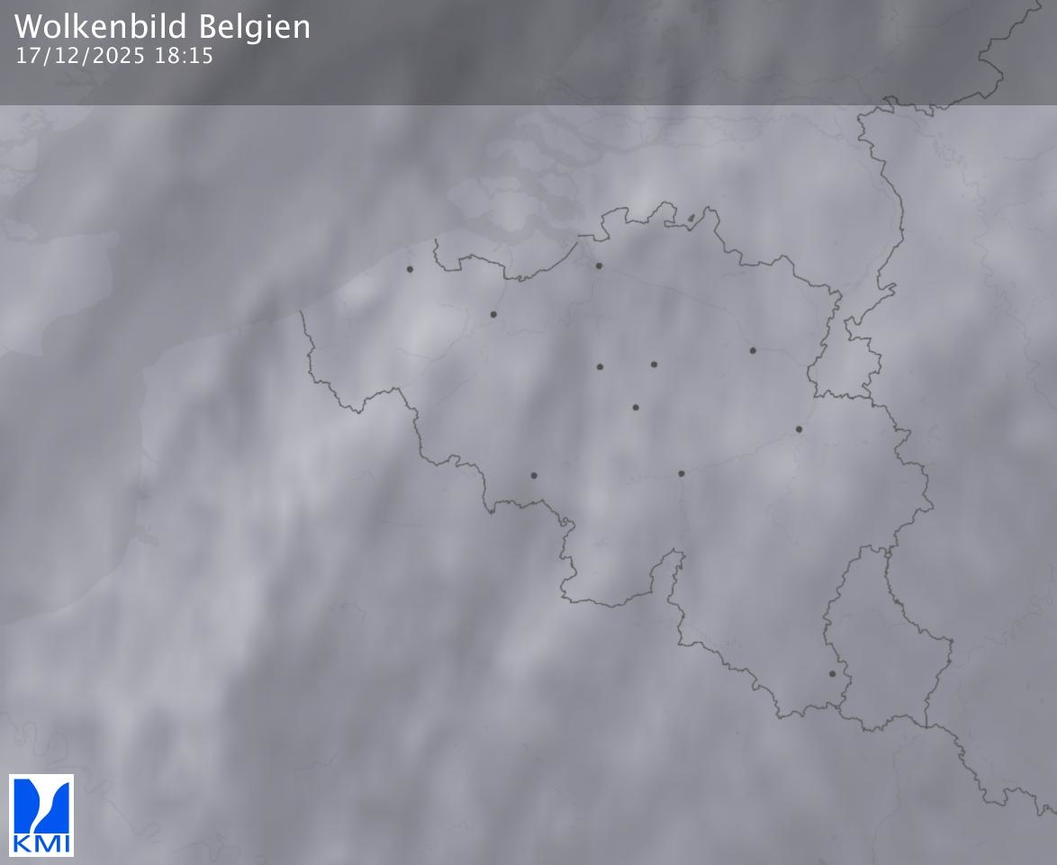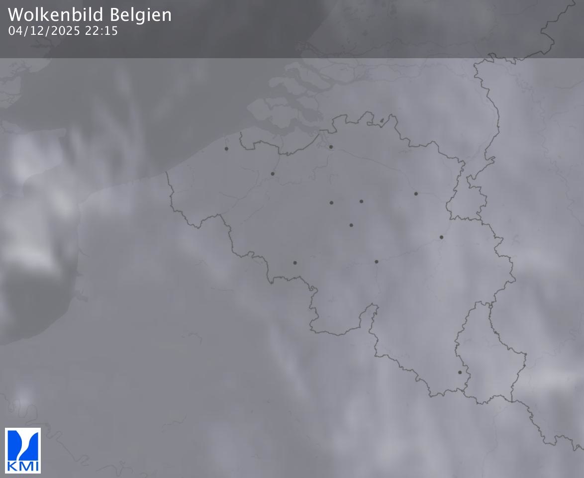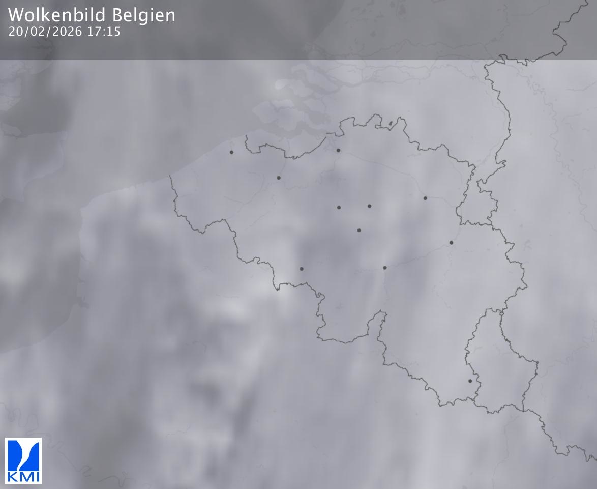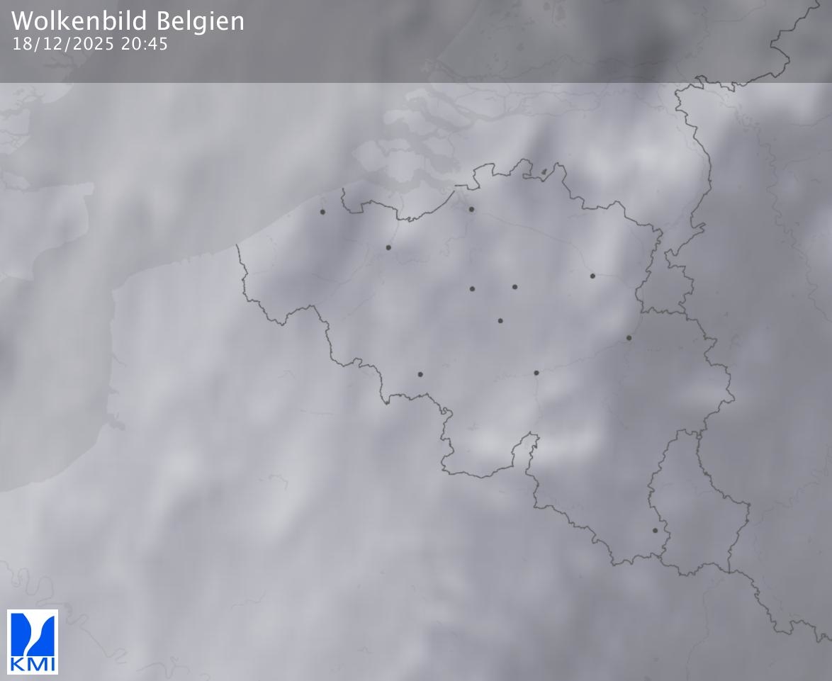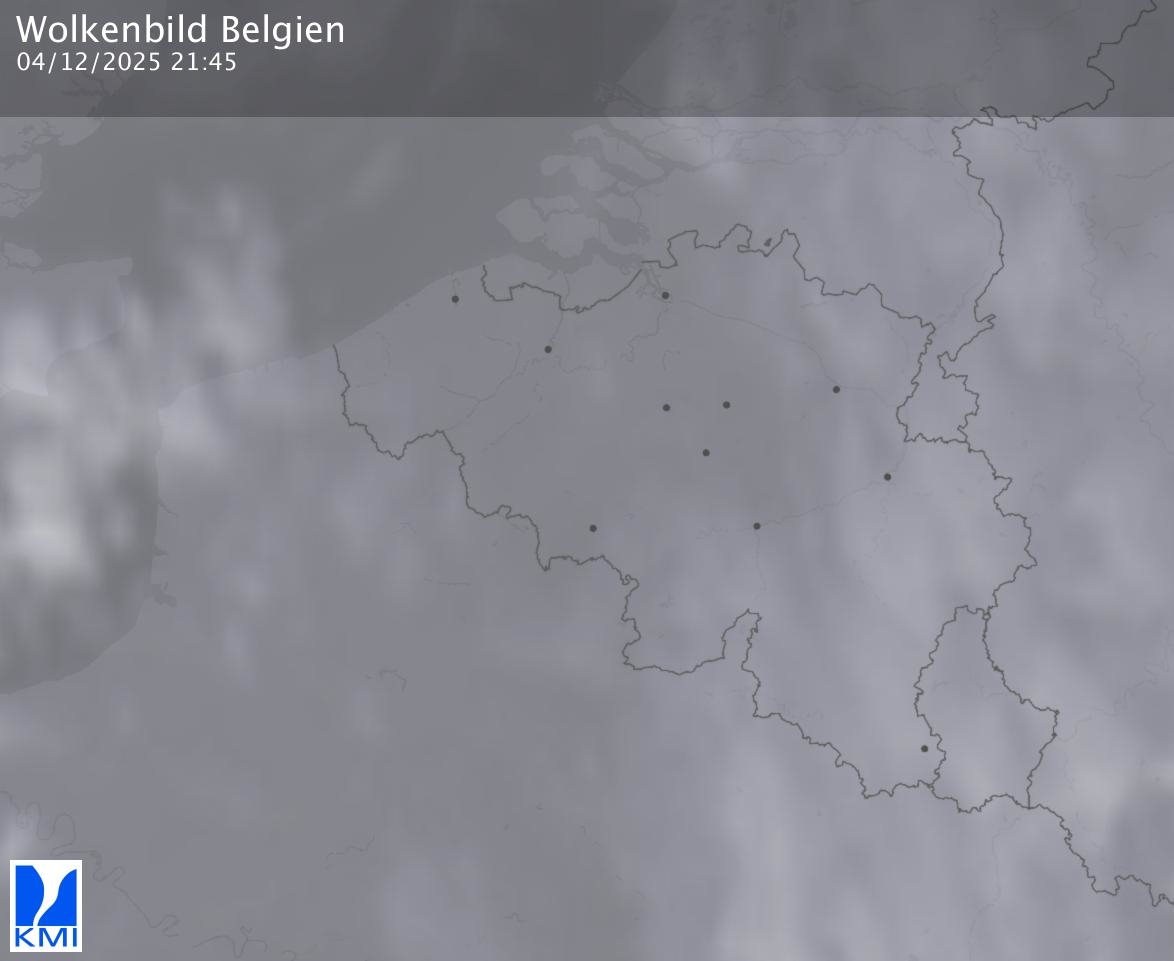 Das Wolkenbild Belgiens ist eine Kombination der sichtbaren und Infrarotkanäle des Satelliten.