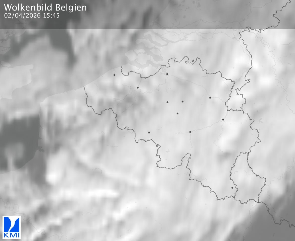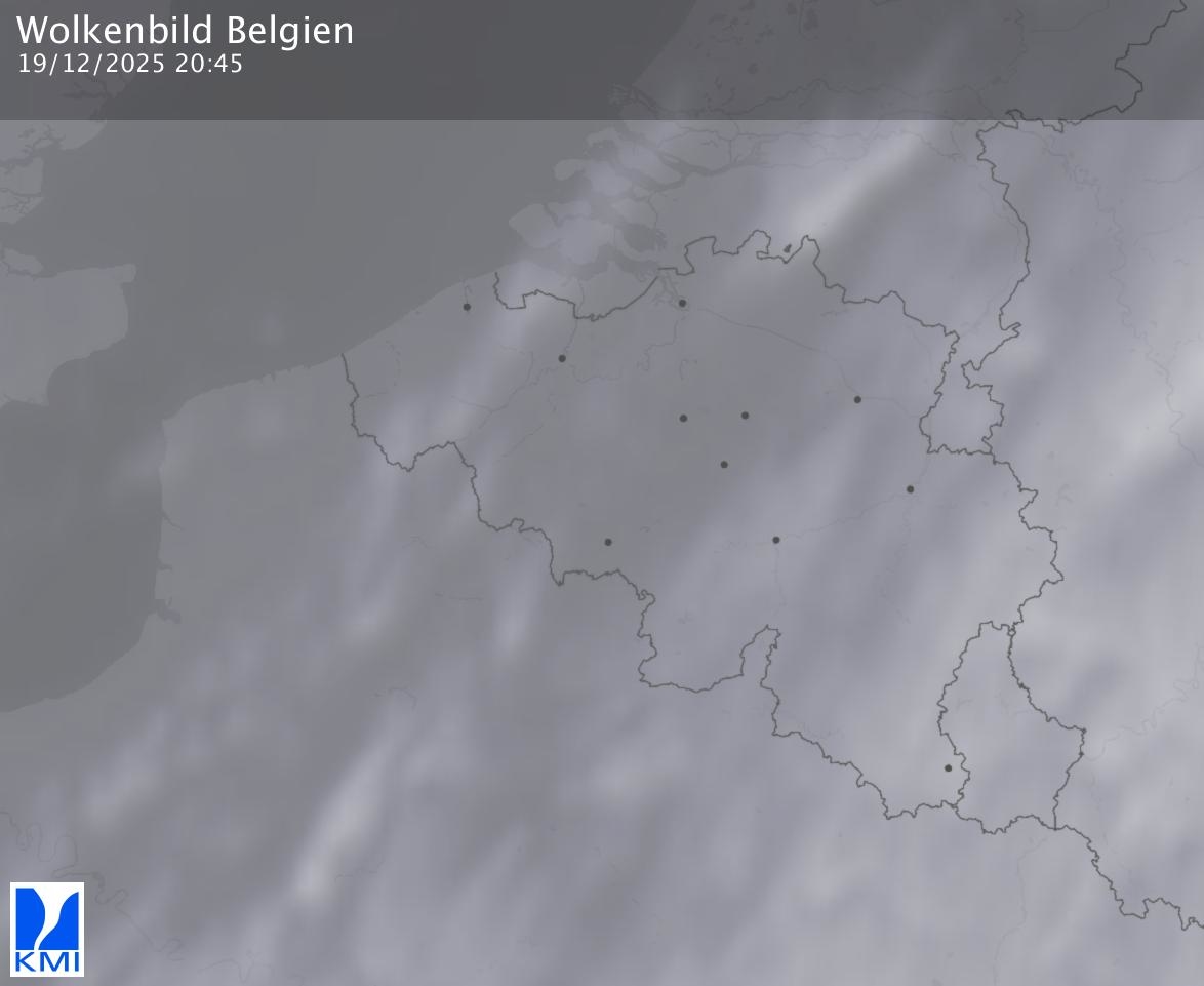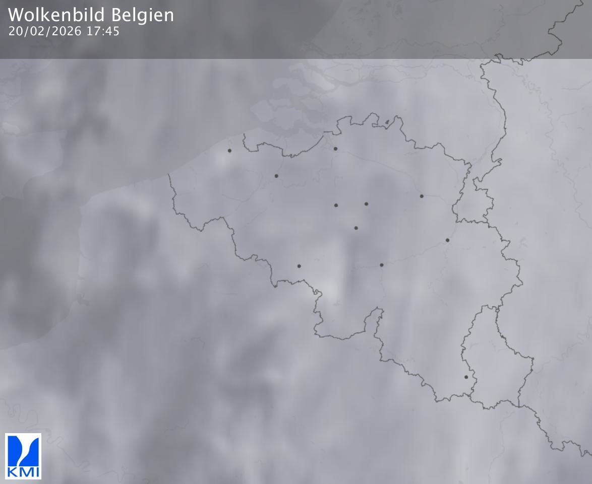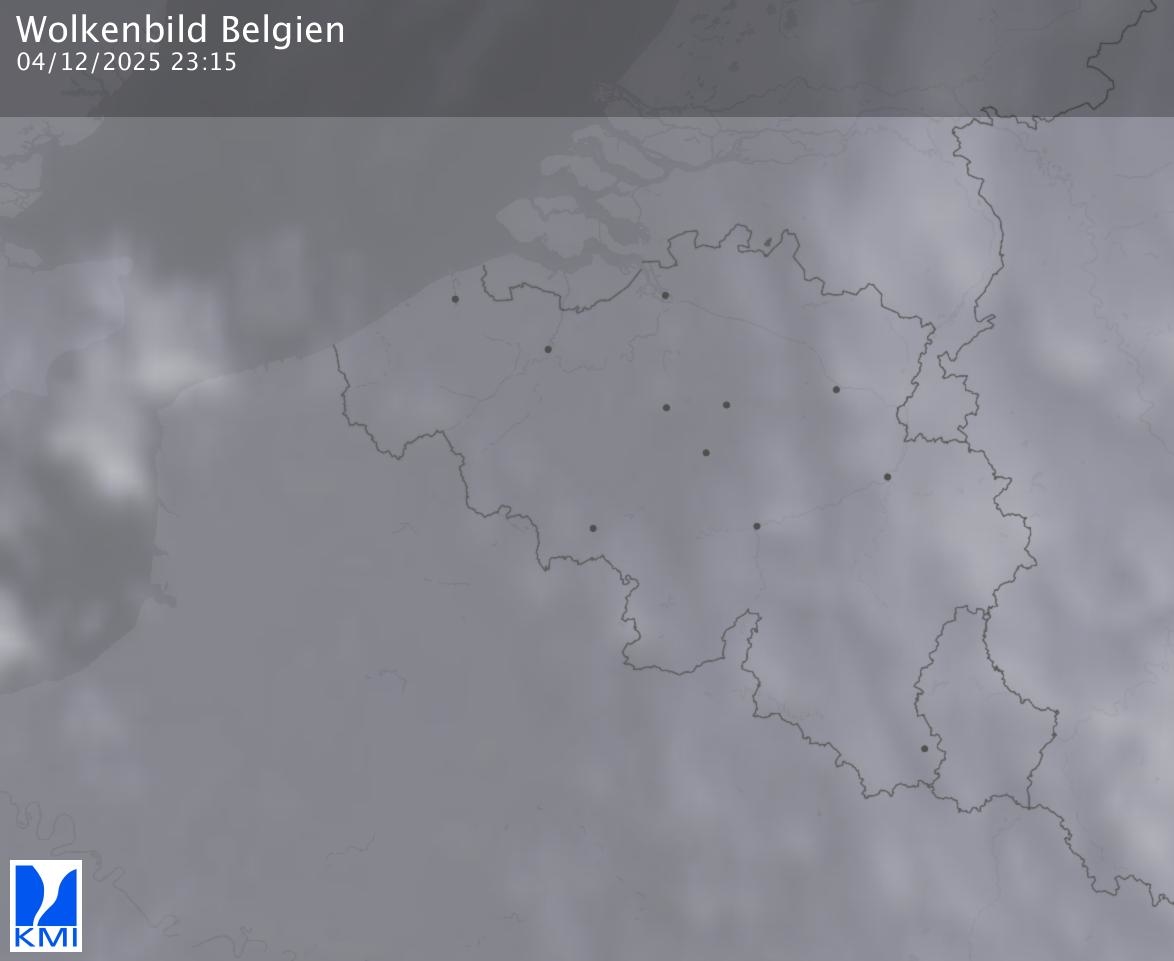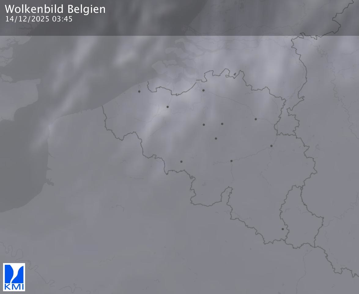 Das Wolkenbild Belgiens ist eine Kombination der sichtbaren und Infrarotkanäle des Satelliten.