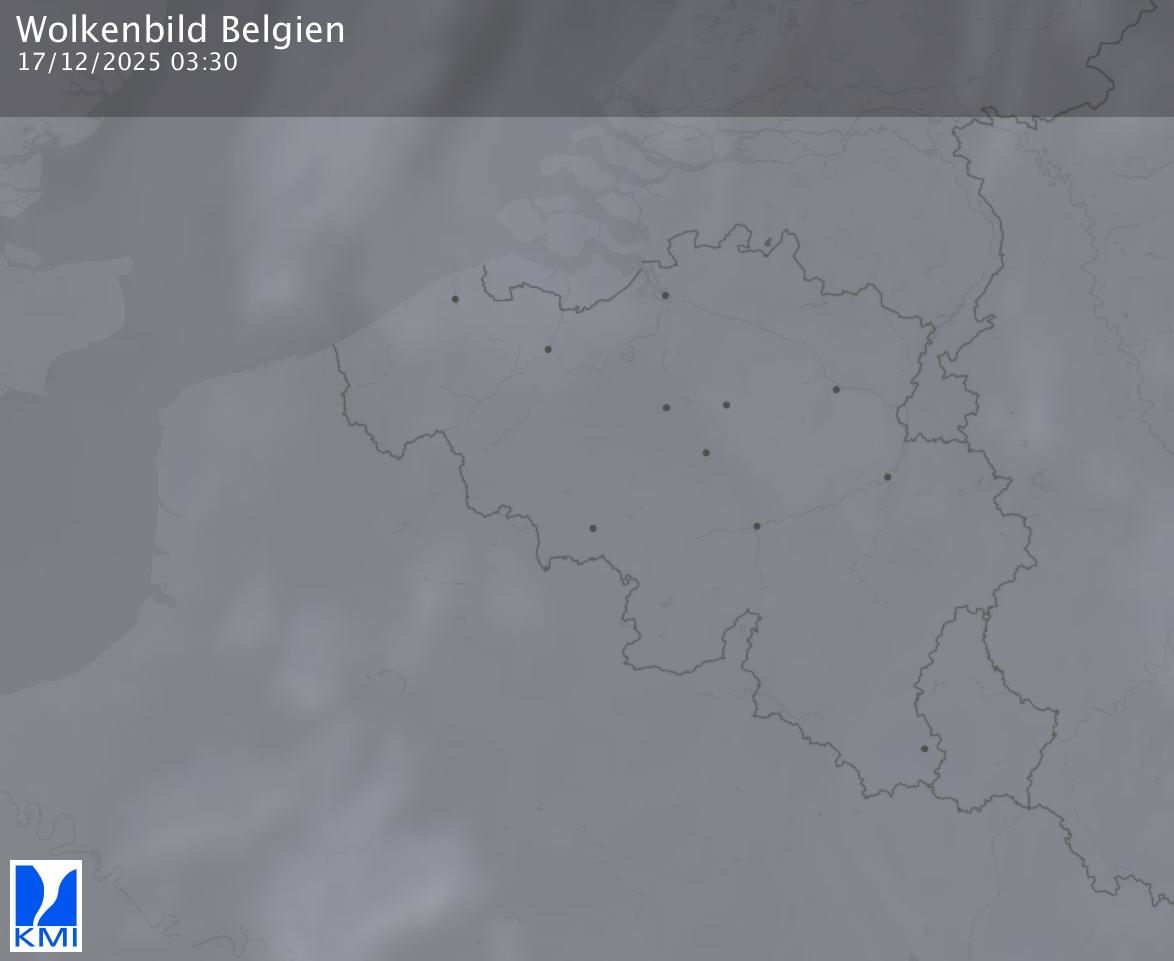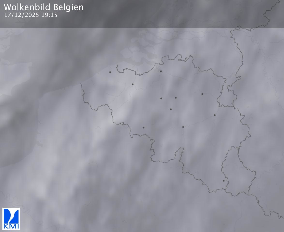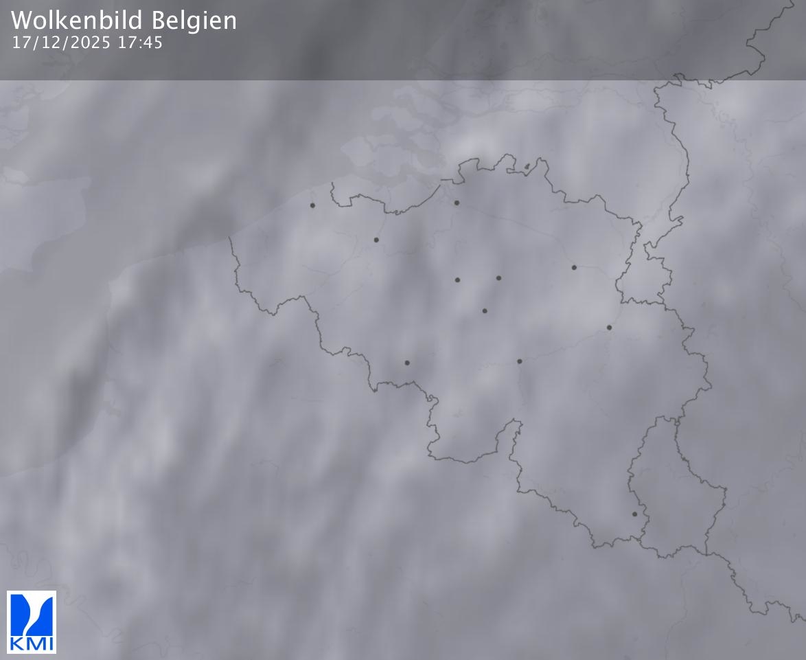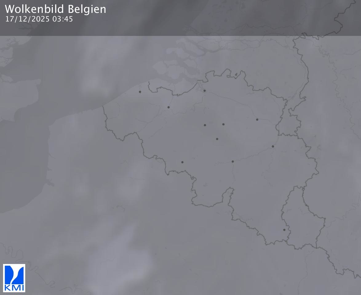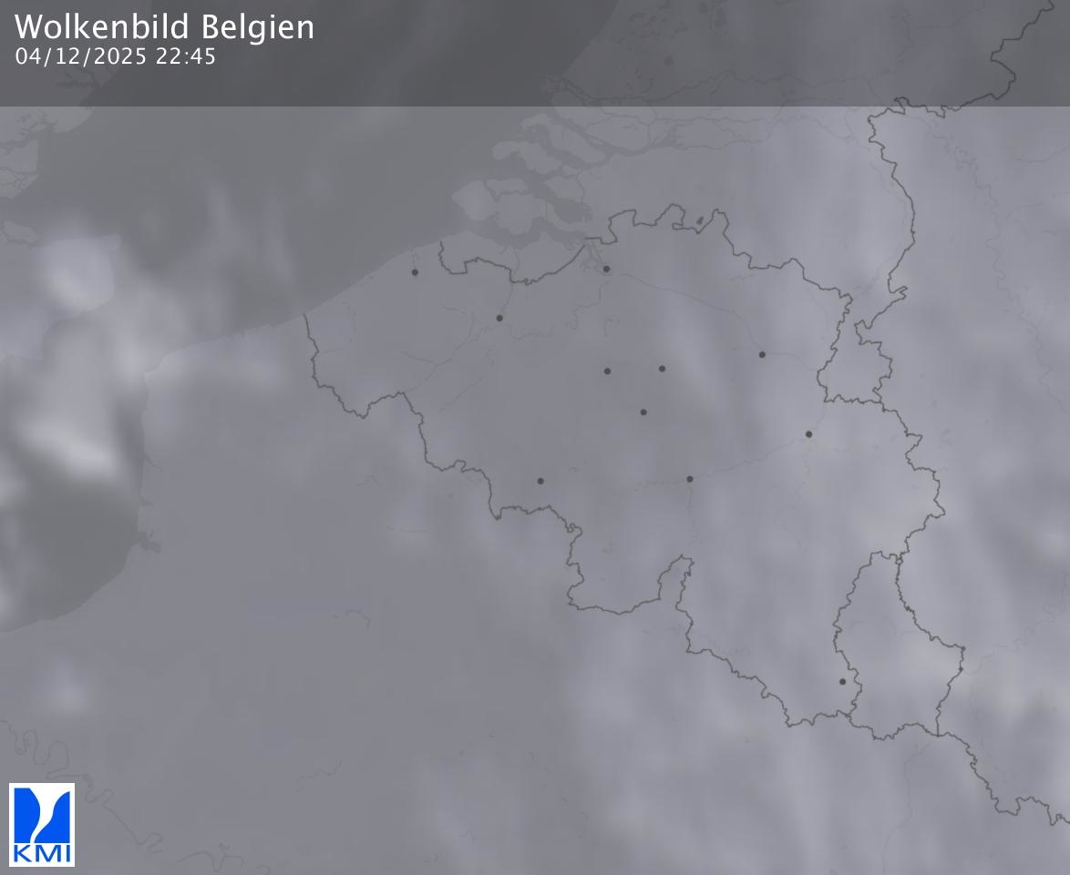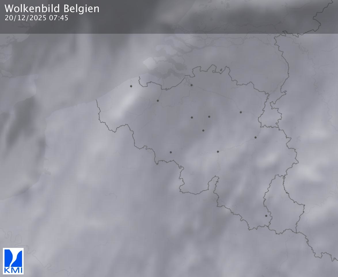 Das Wolkenbild Belgiens ist eine Kombination der sichtbaren und Infrarotkanäle des Satelliten.
