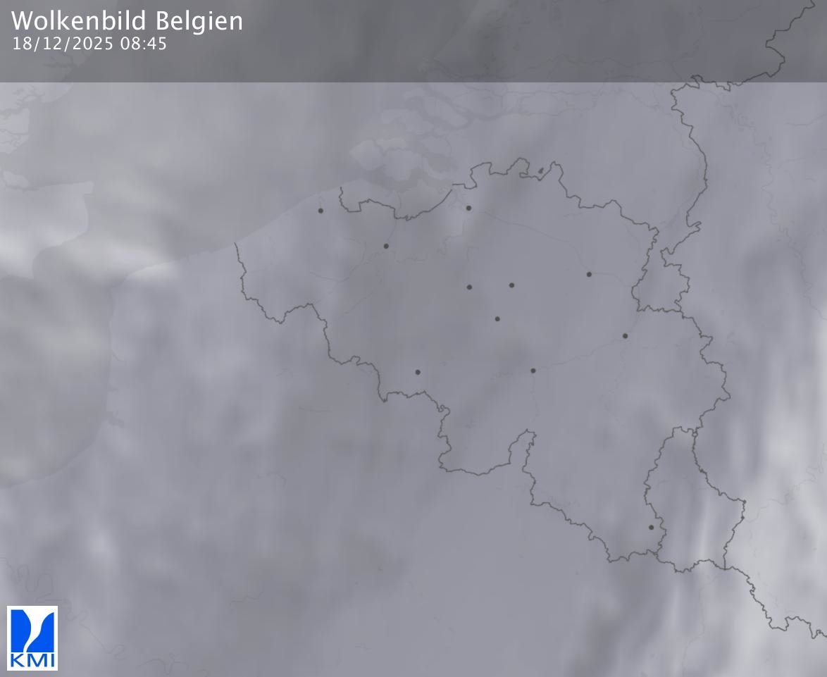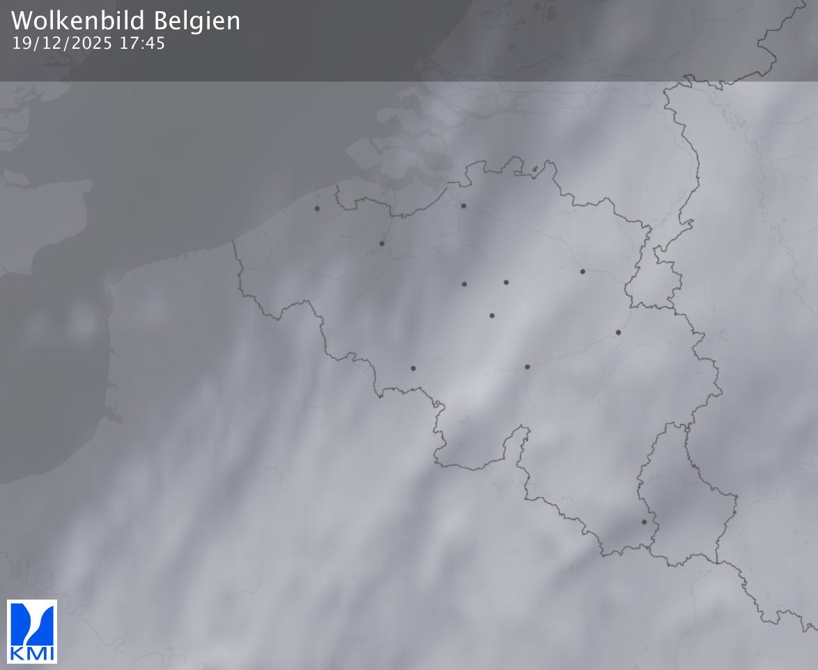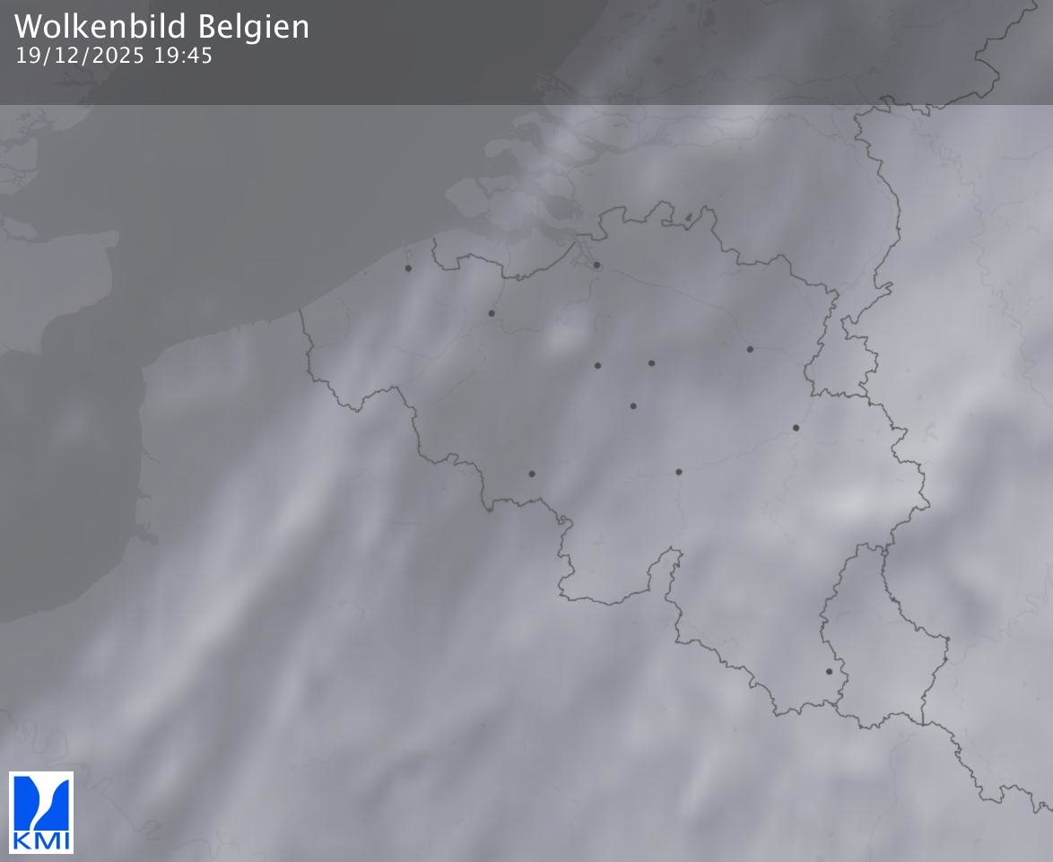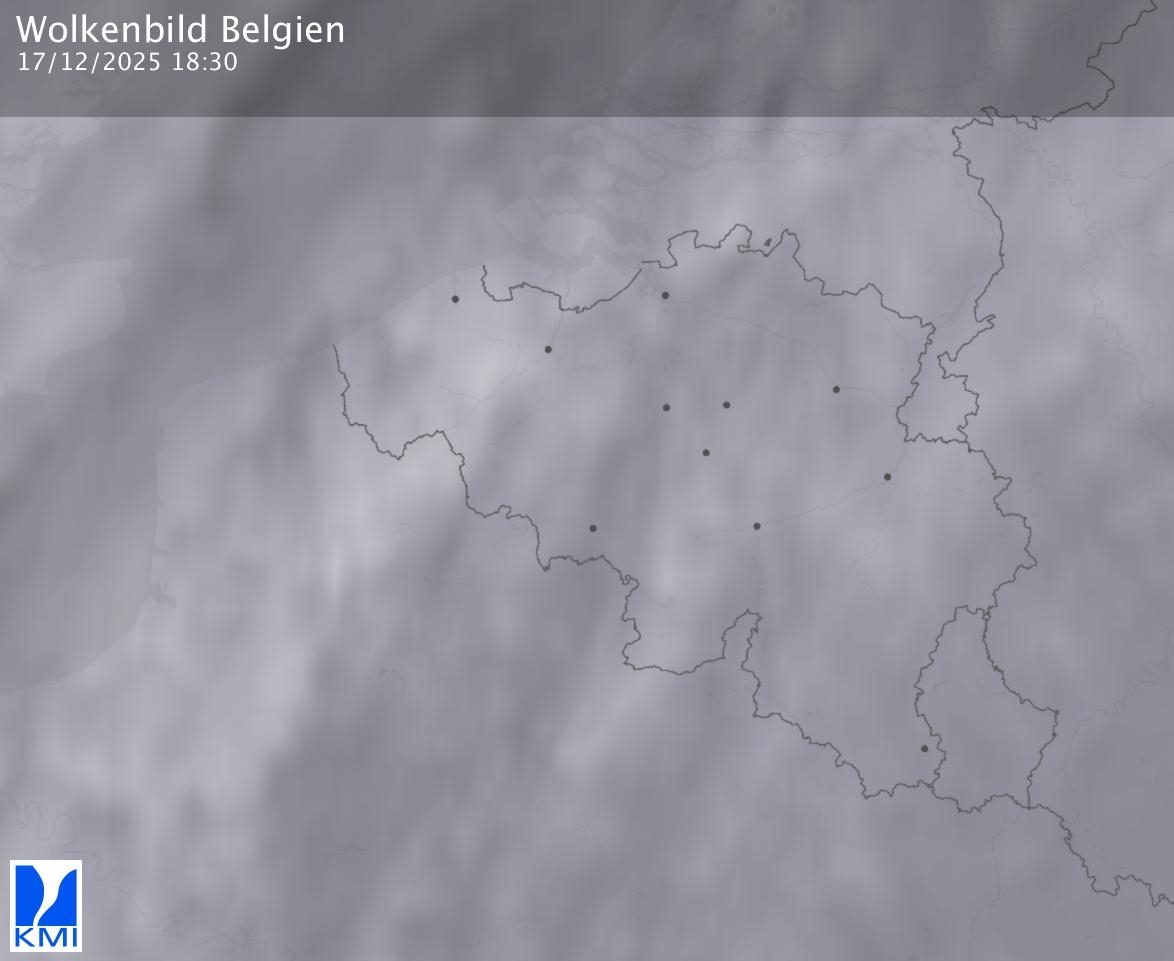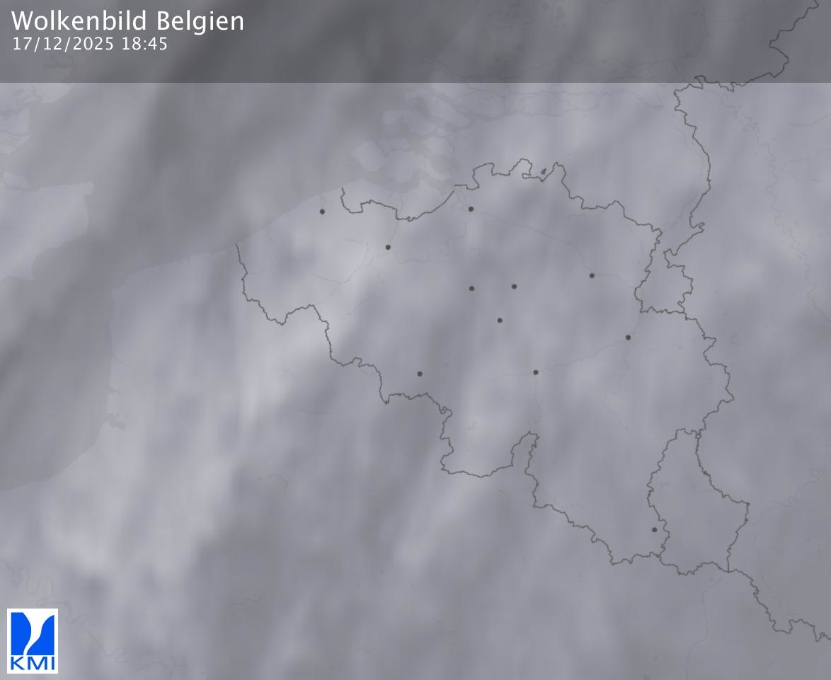Das Wolkenbild Belgiens ist eine Kombination der sichtbaren und Infrarotkanäle des Satelliten.