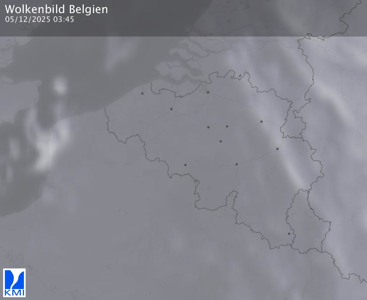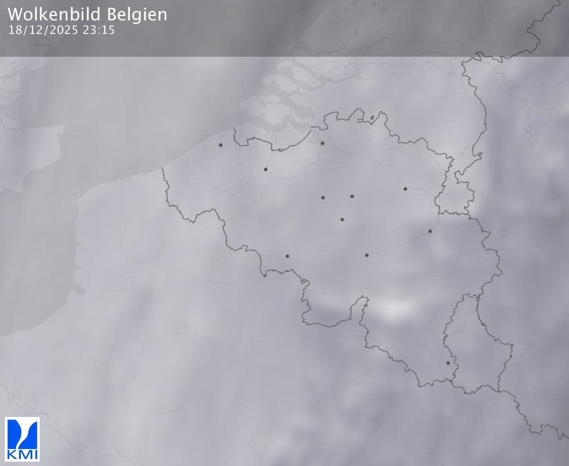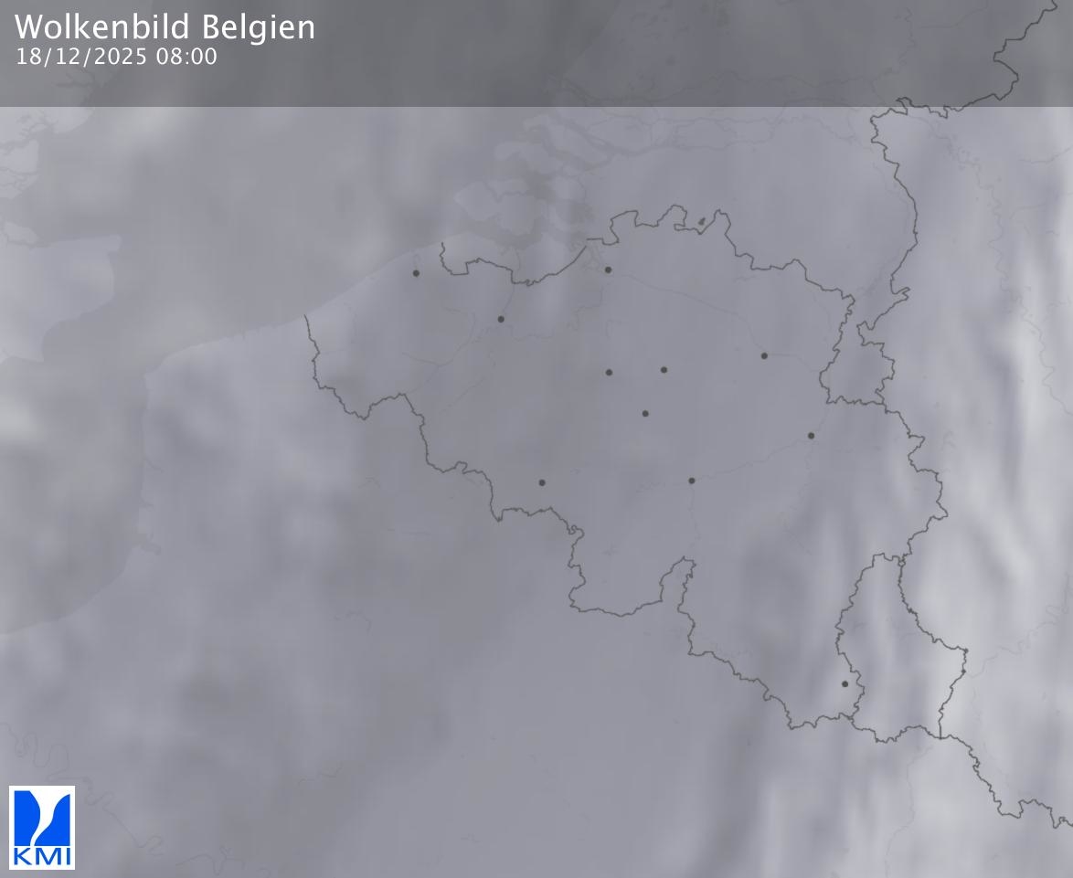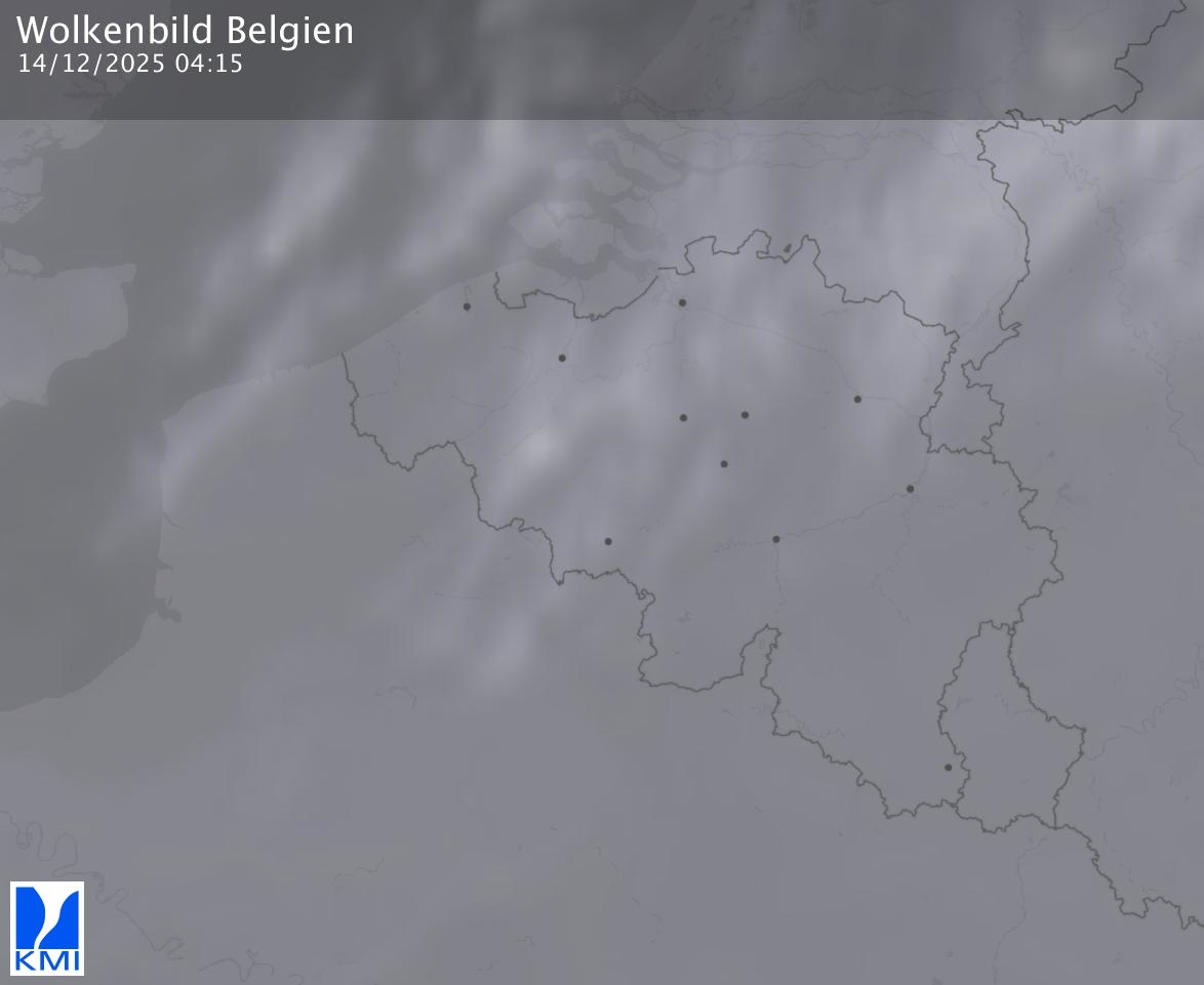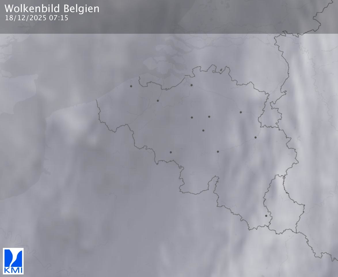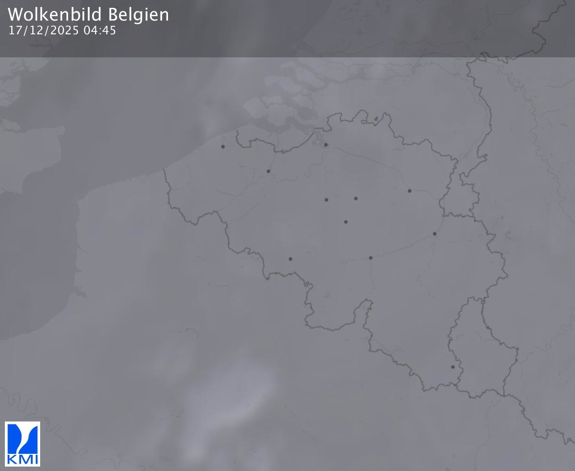 Das Wolkenbild Belgiens ist eine Kombination der sichtbaren und Infrarotkanäle des Satelliten.