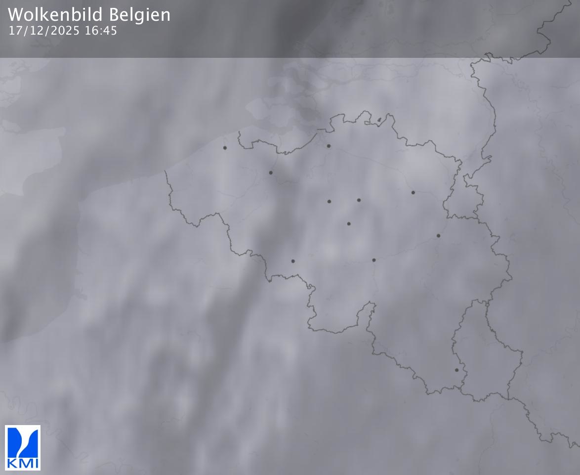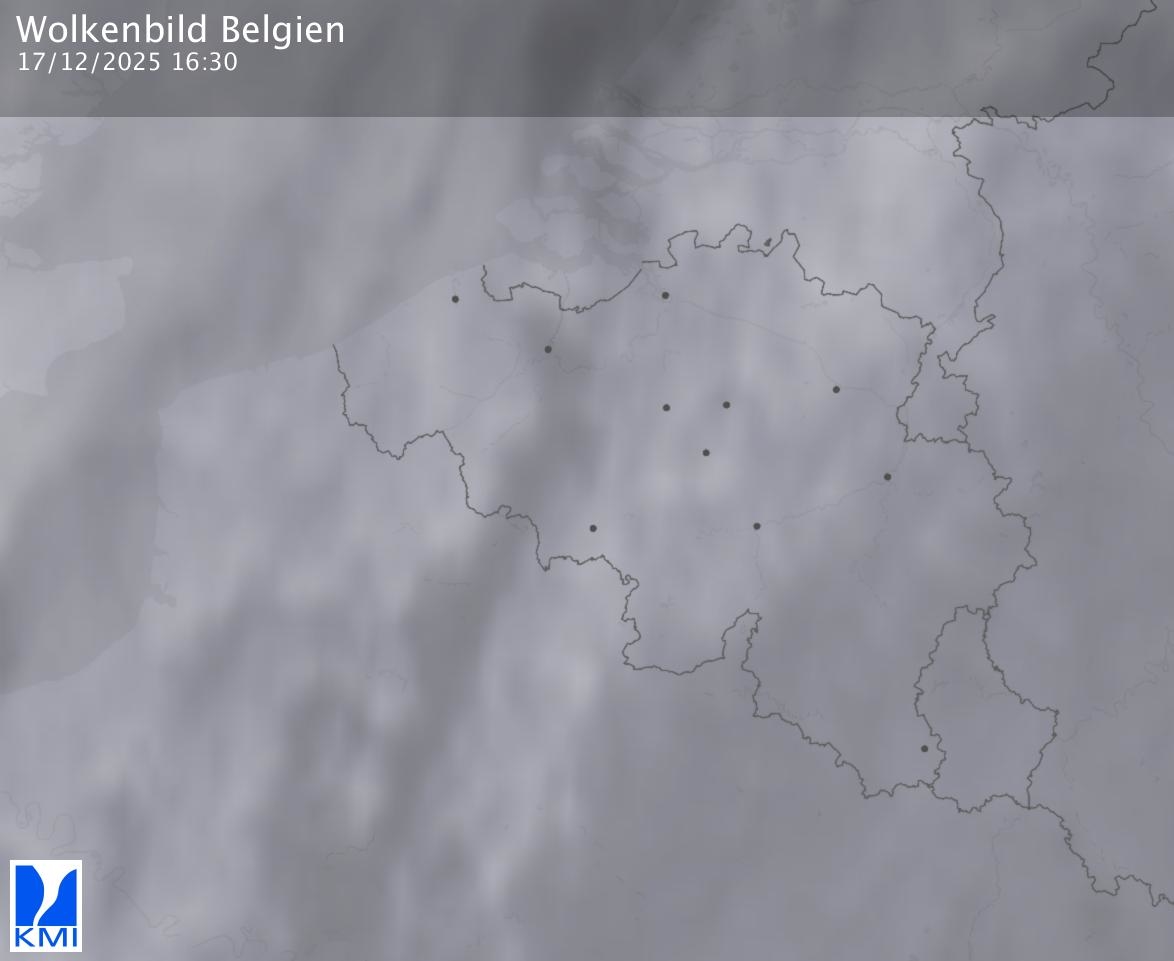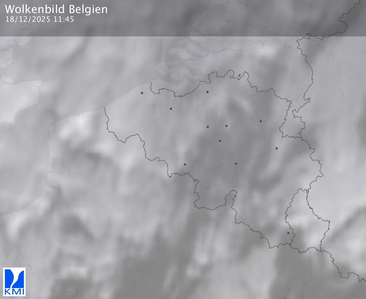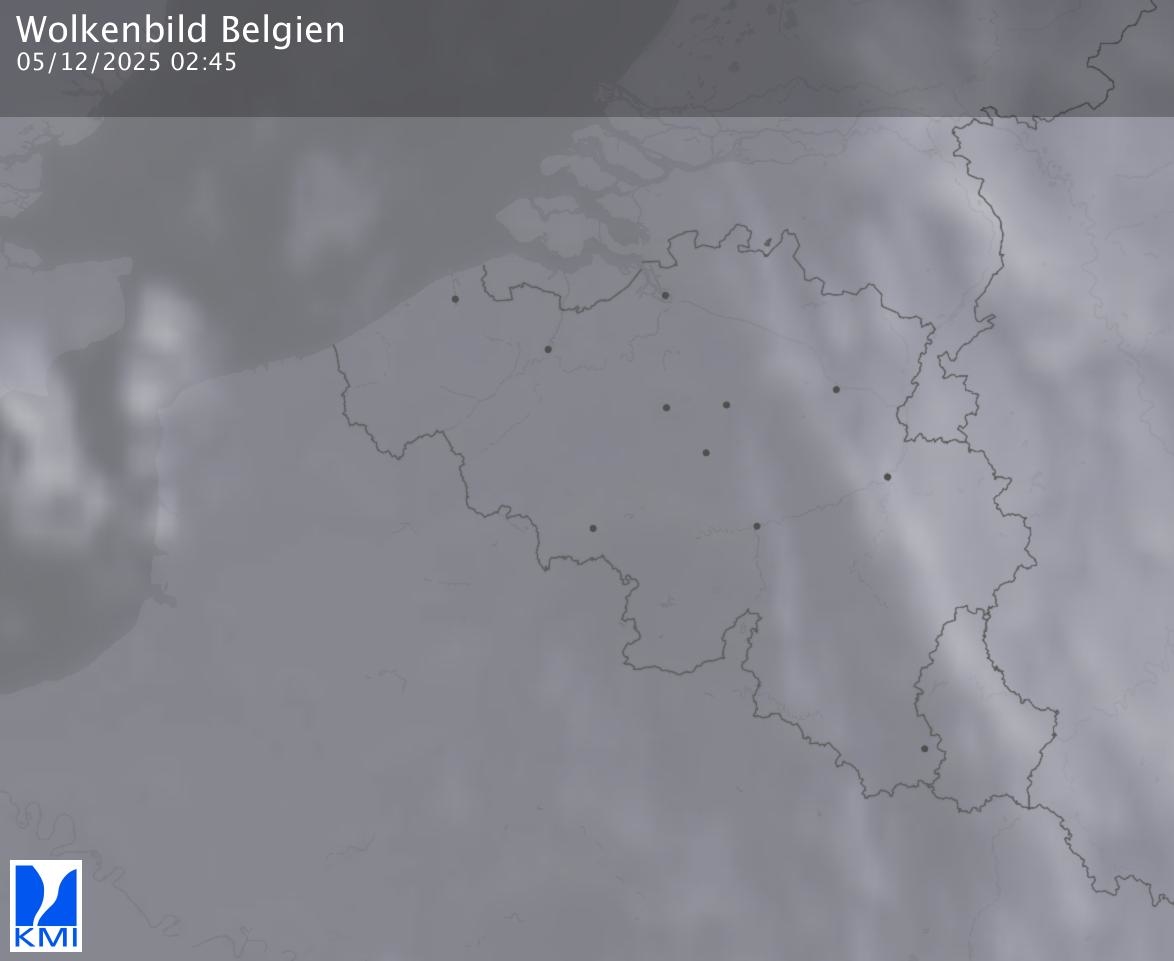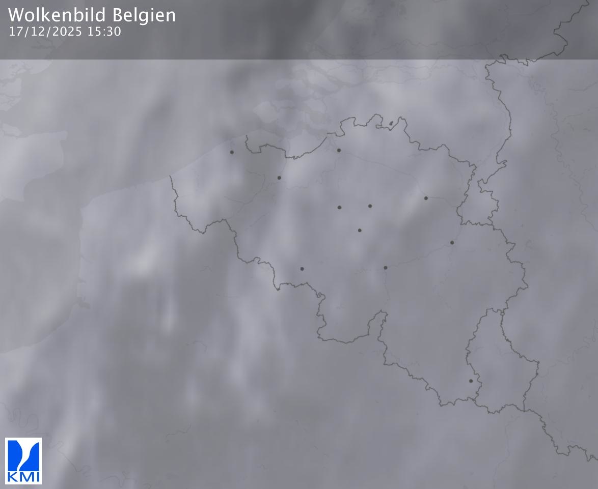 Das Wolkenbild Belgiens ist eine Kombination der sichtbaren und Infrarotkanäle des Satelliten.