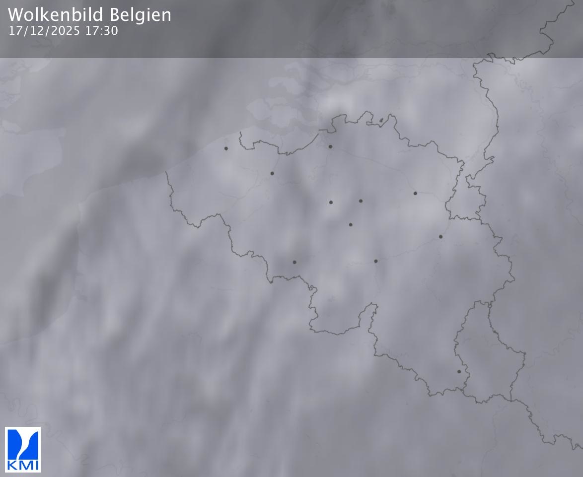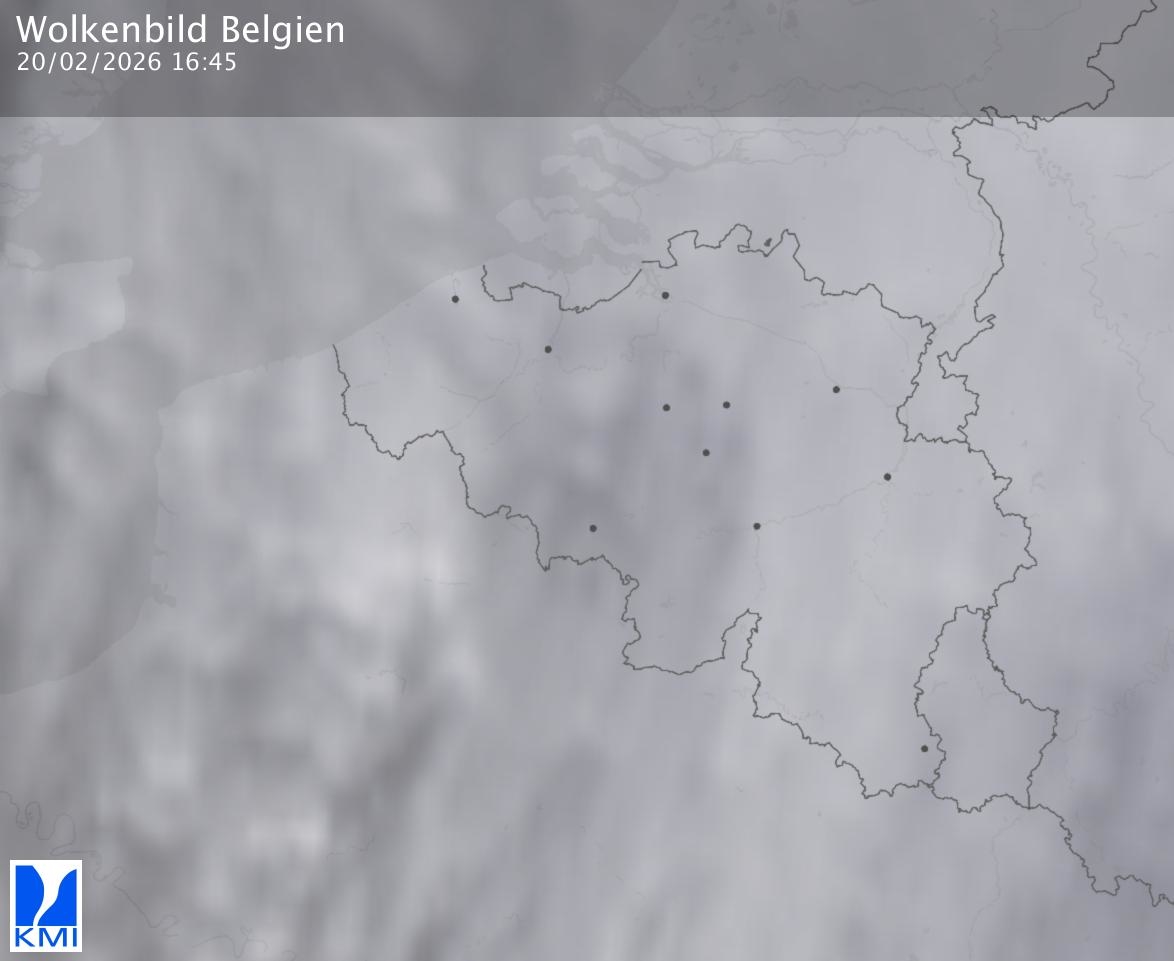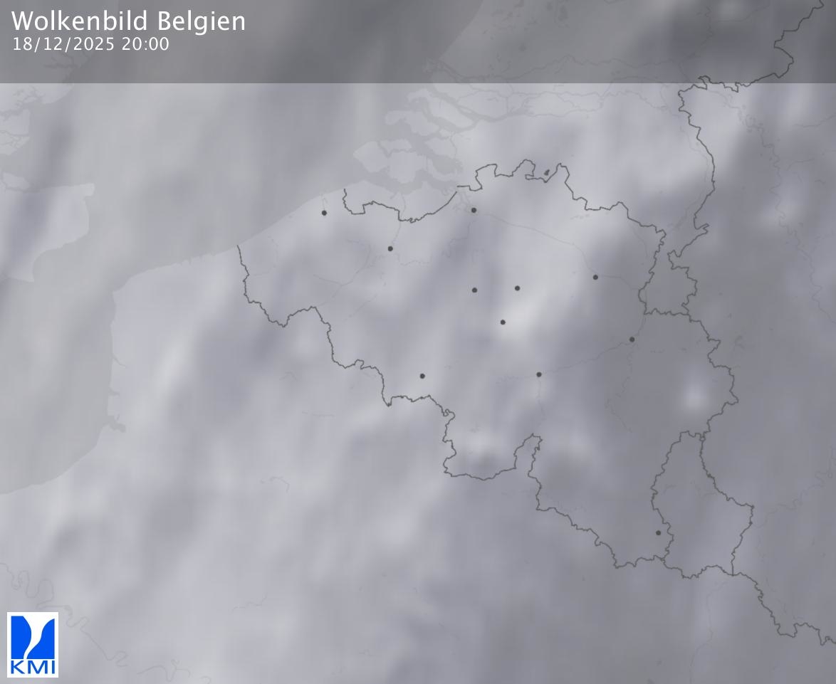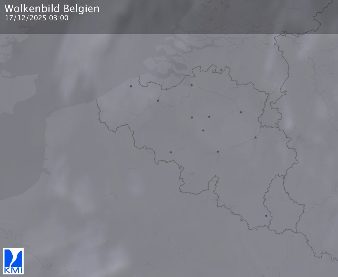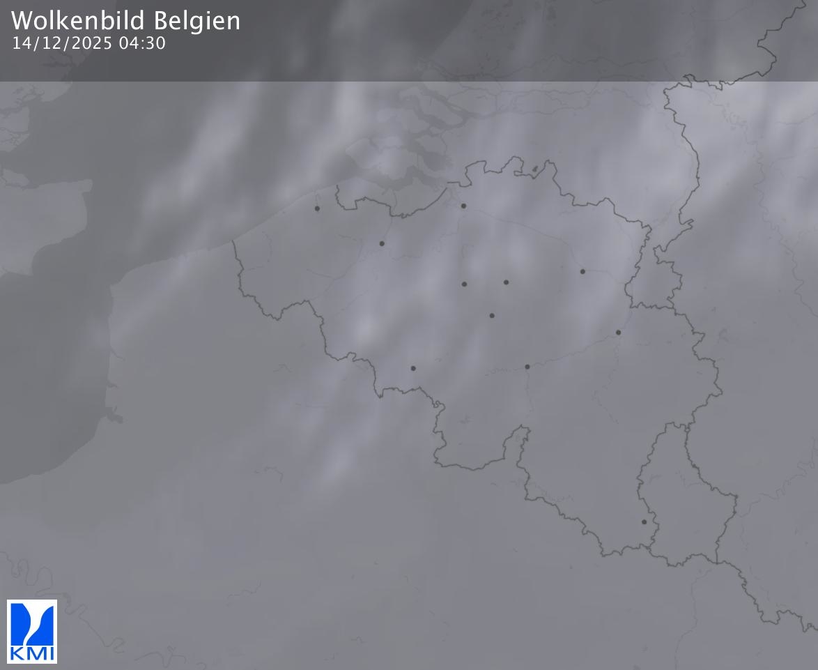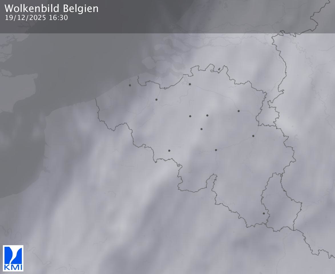 Das Wolkenbild Belgiens ist eine Kombination der sichtbaren und Infrarotkanäle des Satelliten.
