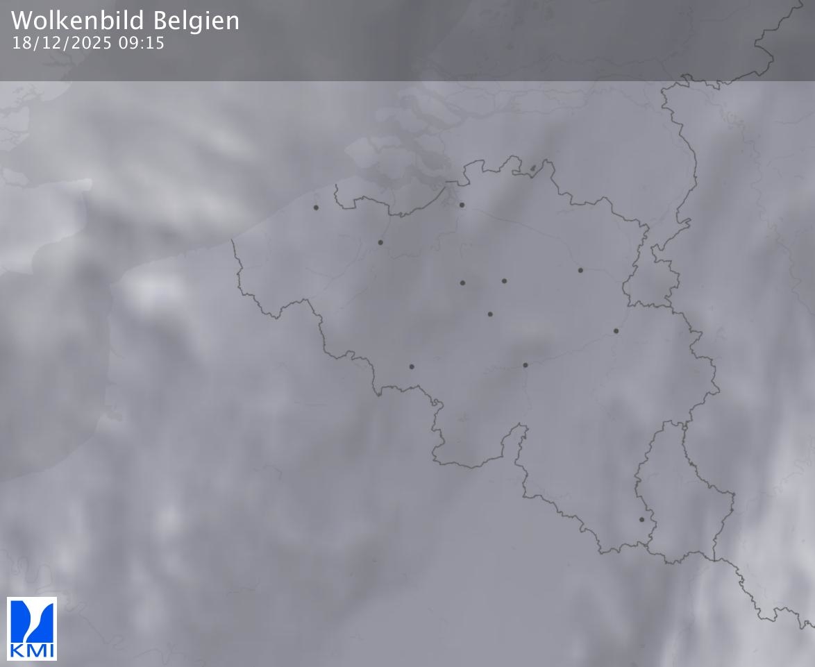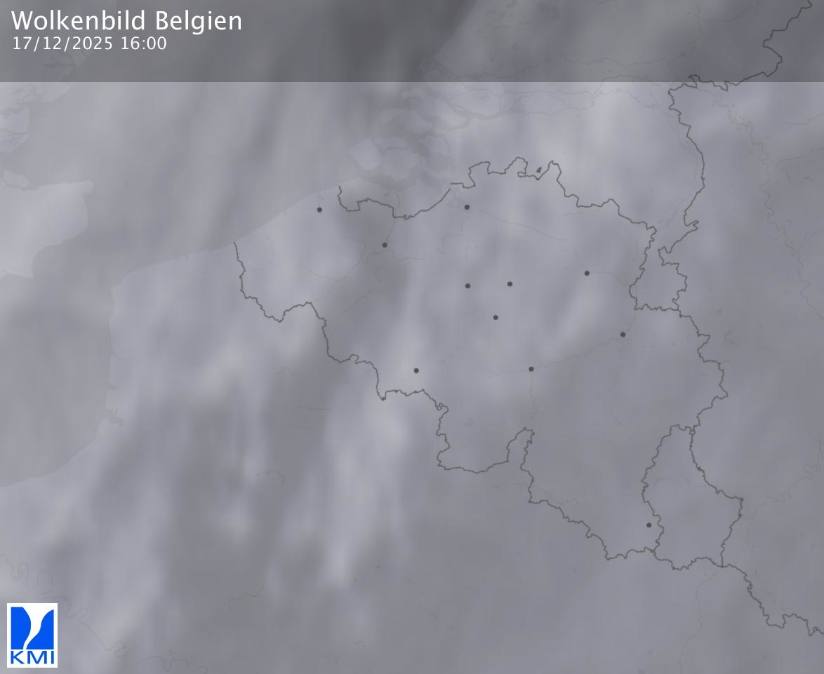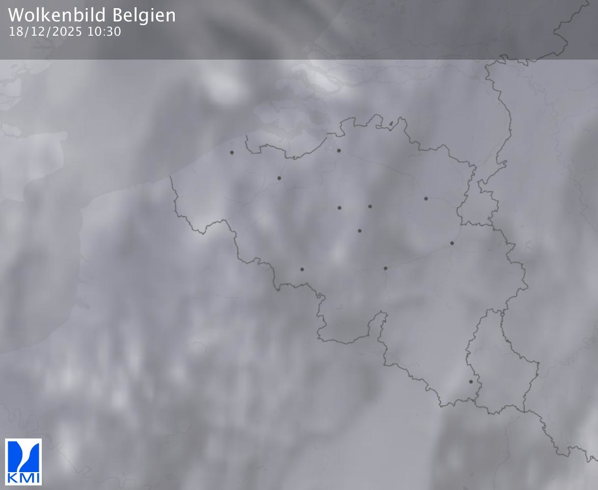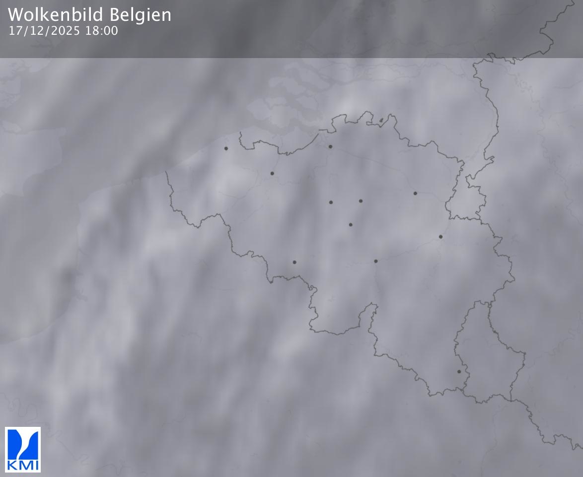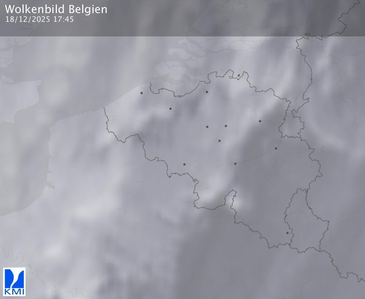Das Wolkenbild Belgiens ist eine Kombination der sichtbaren und Infrarotkanäle des Satelliten.