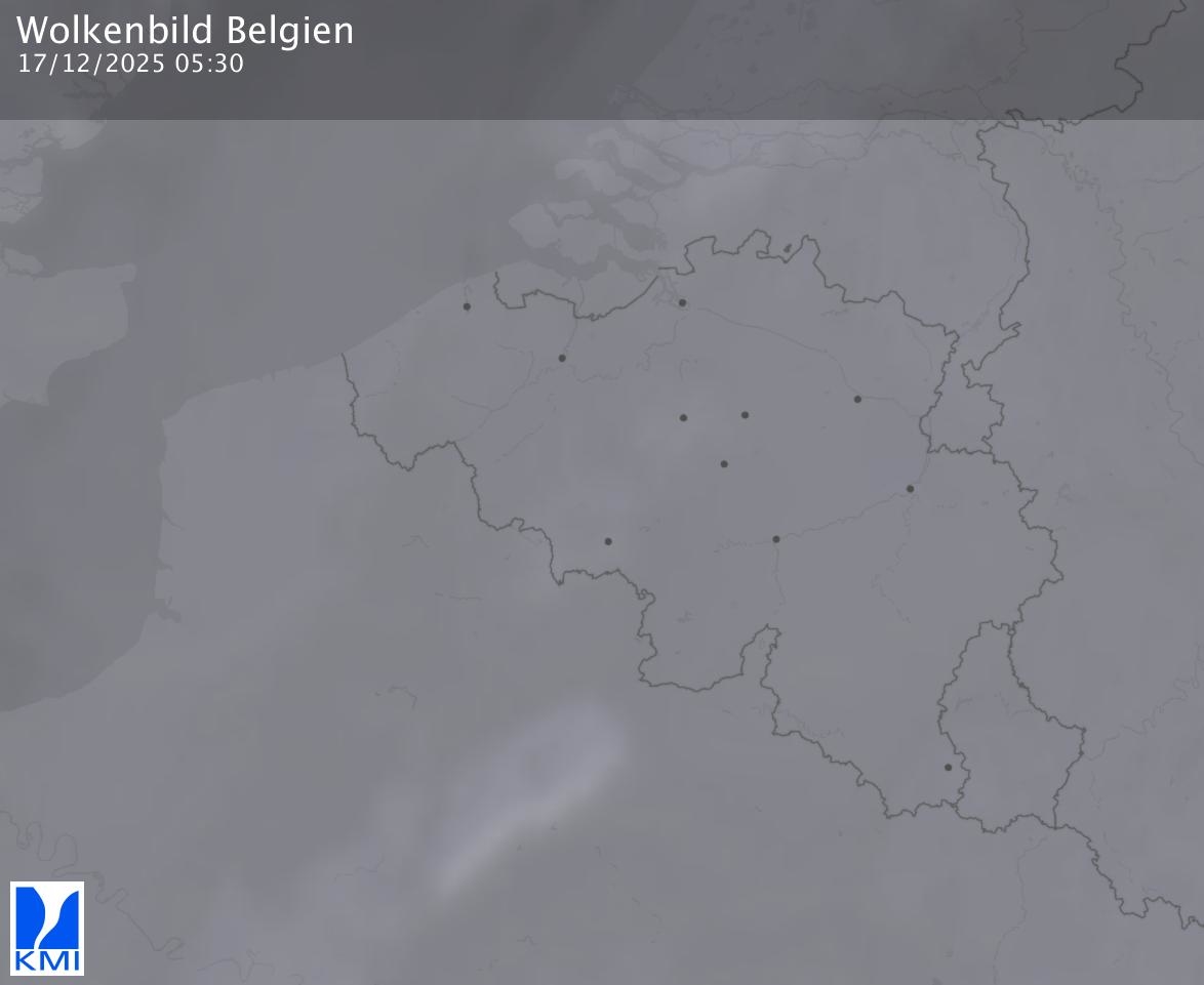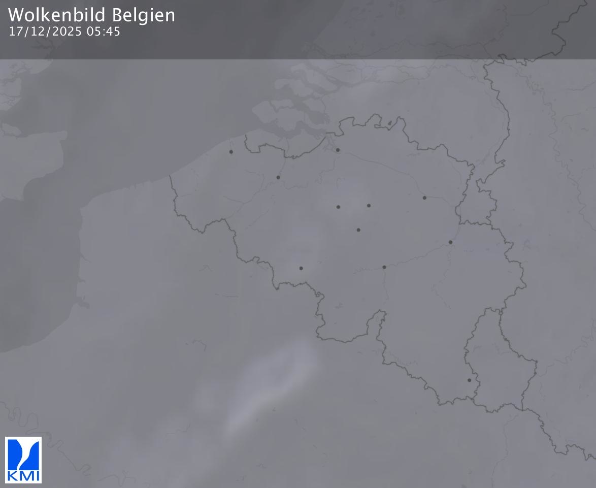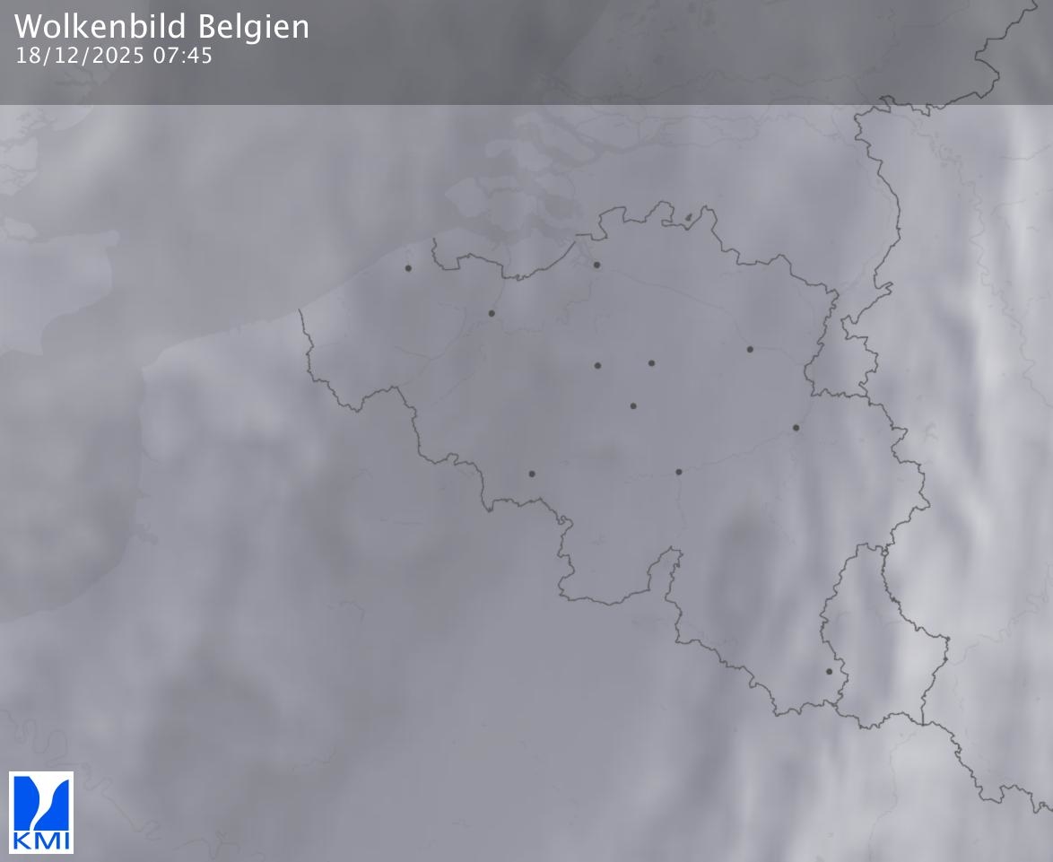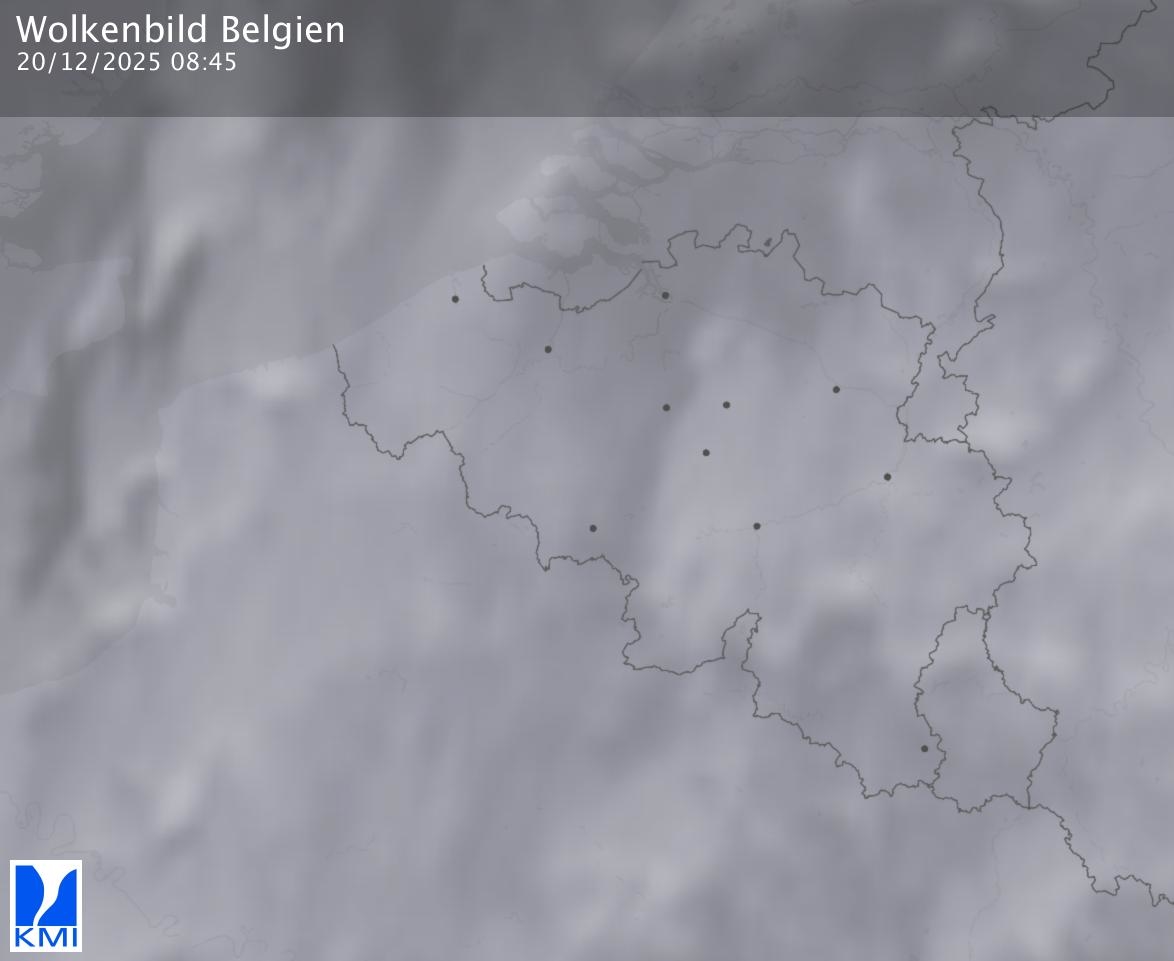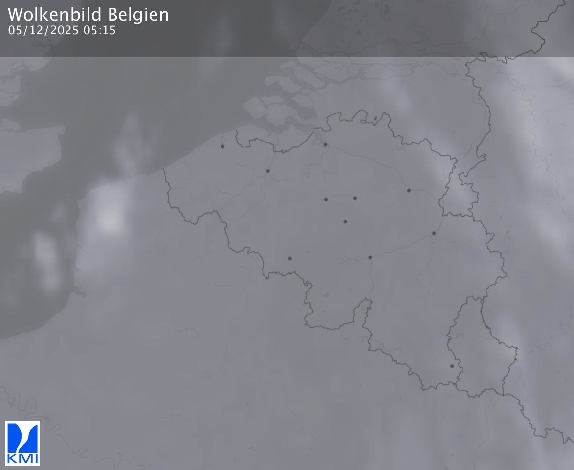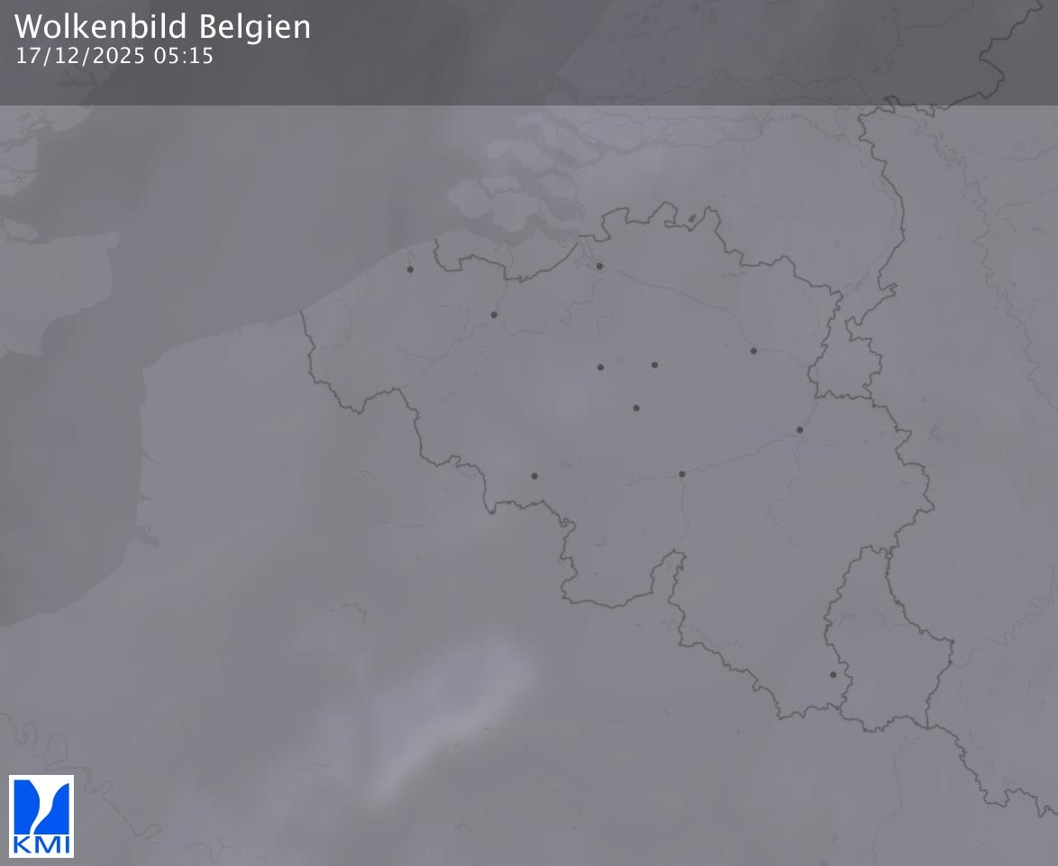 Das Wolkenbild Belgiens ist eine Kombination der sichtbaren und Infrarotkanäle des Satelliten.