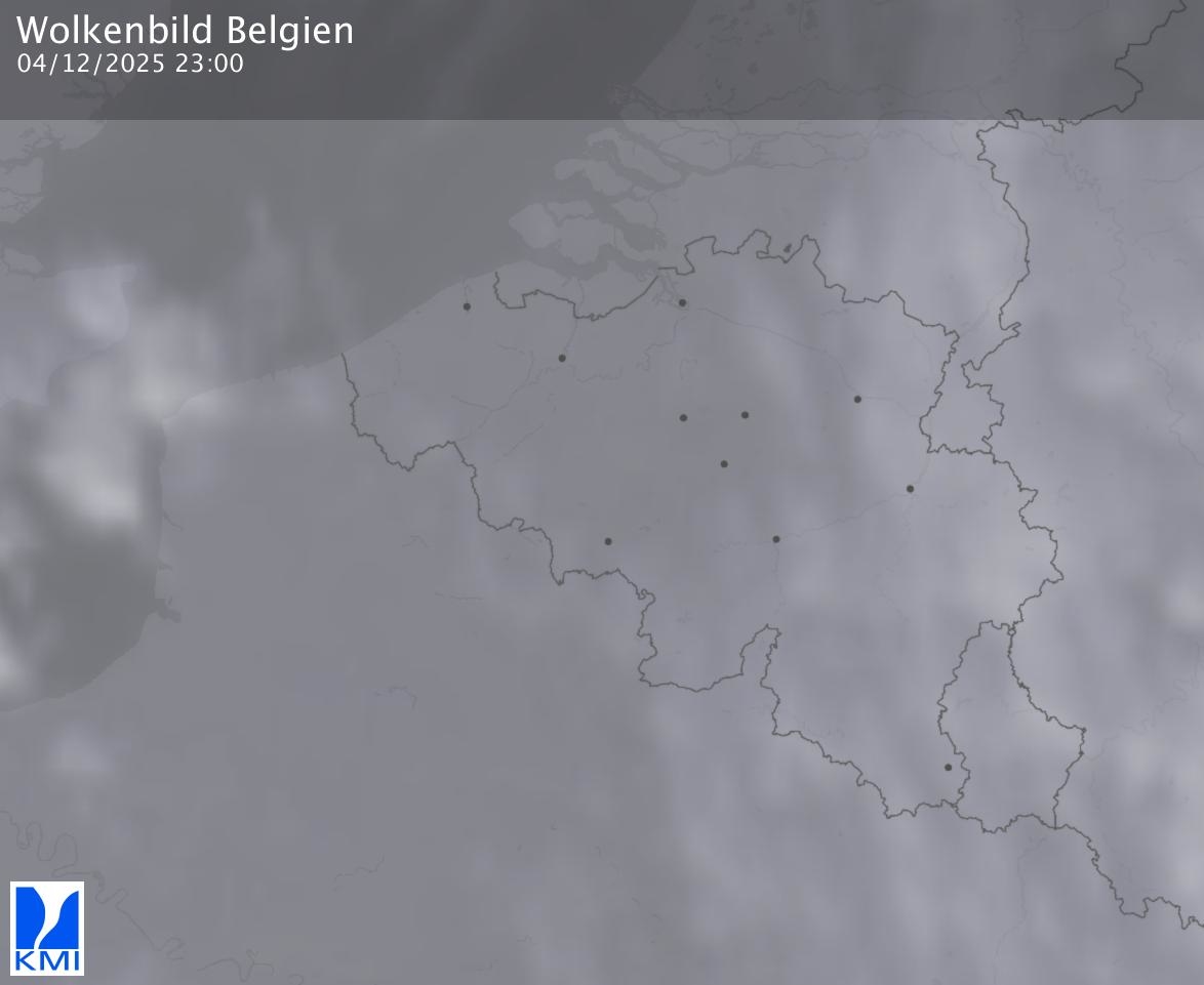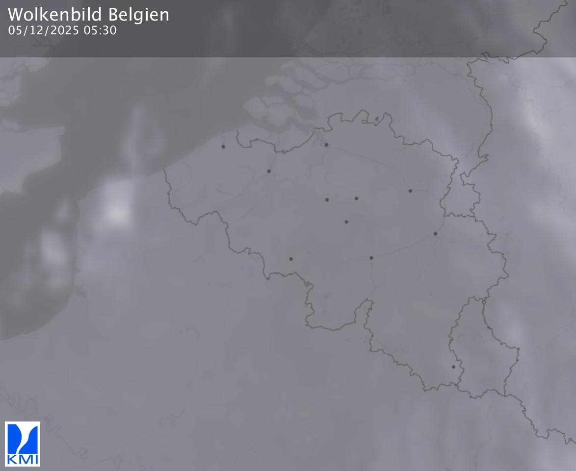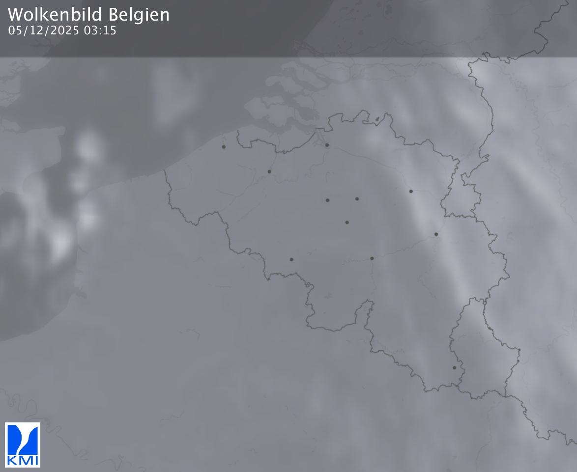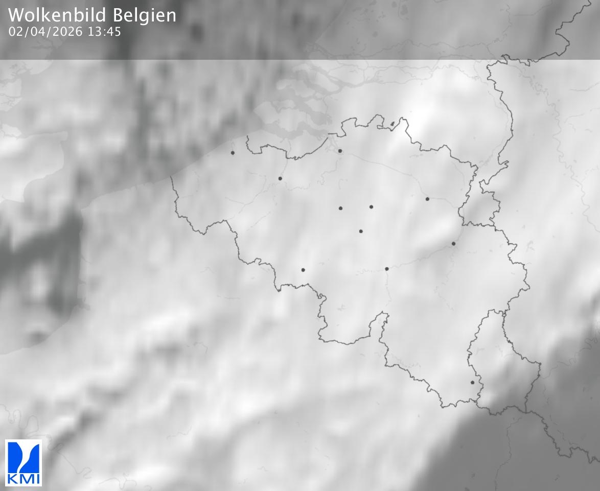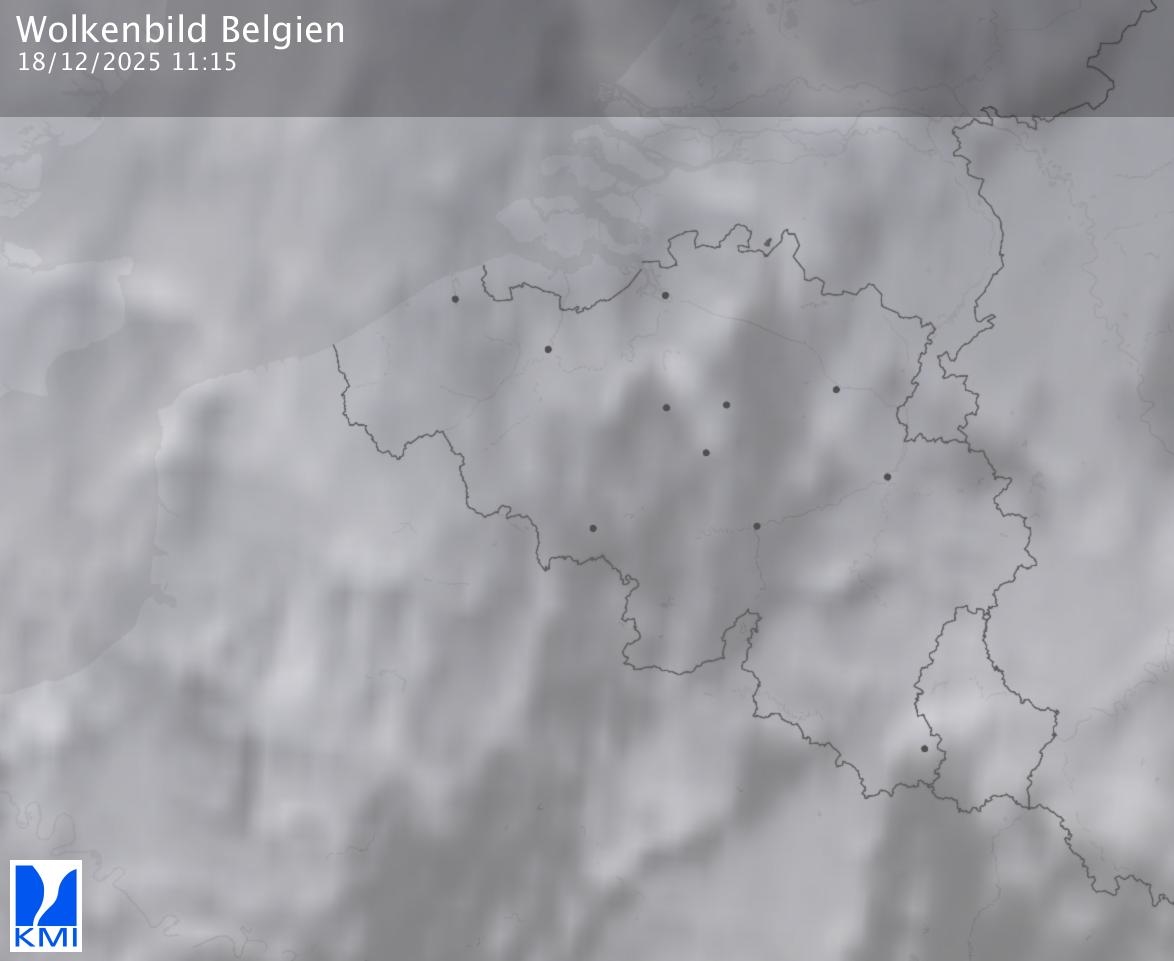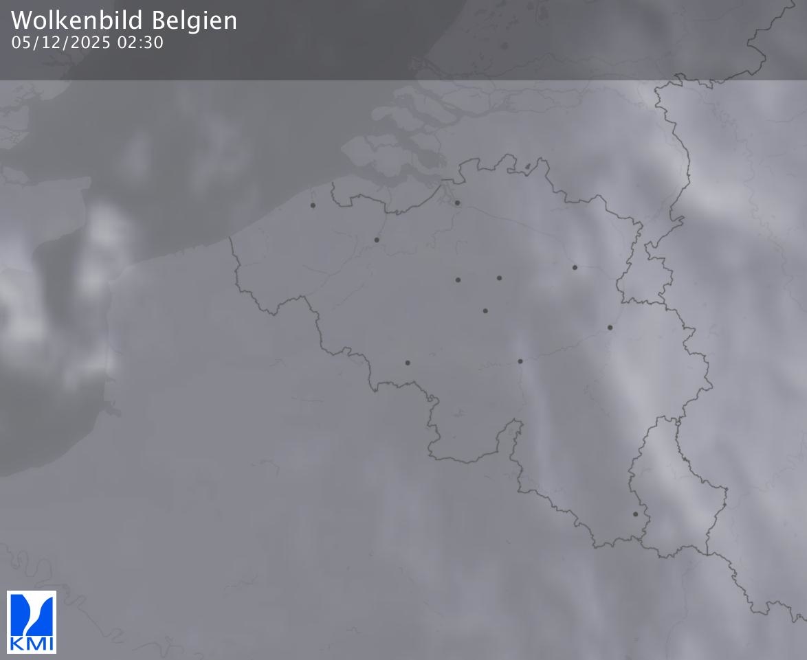 Das Wolkenbild Belgiens ist eine Kombination der sichtbaren und Infrarotkanäle des Satelliten.
