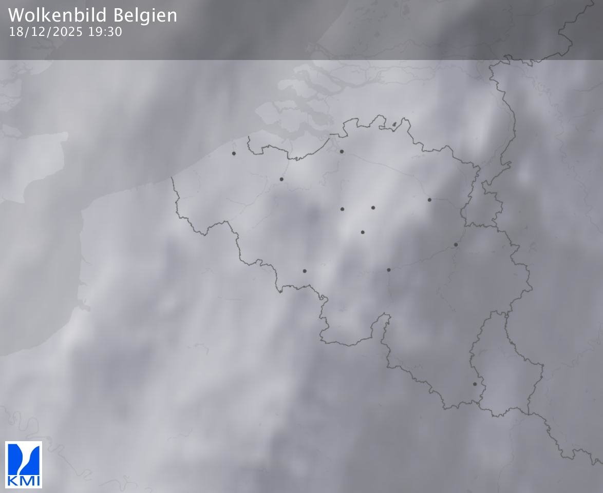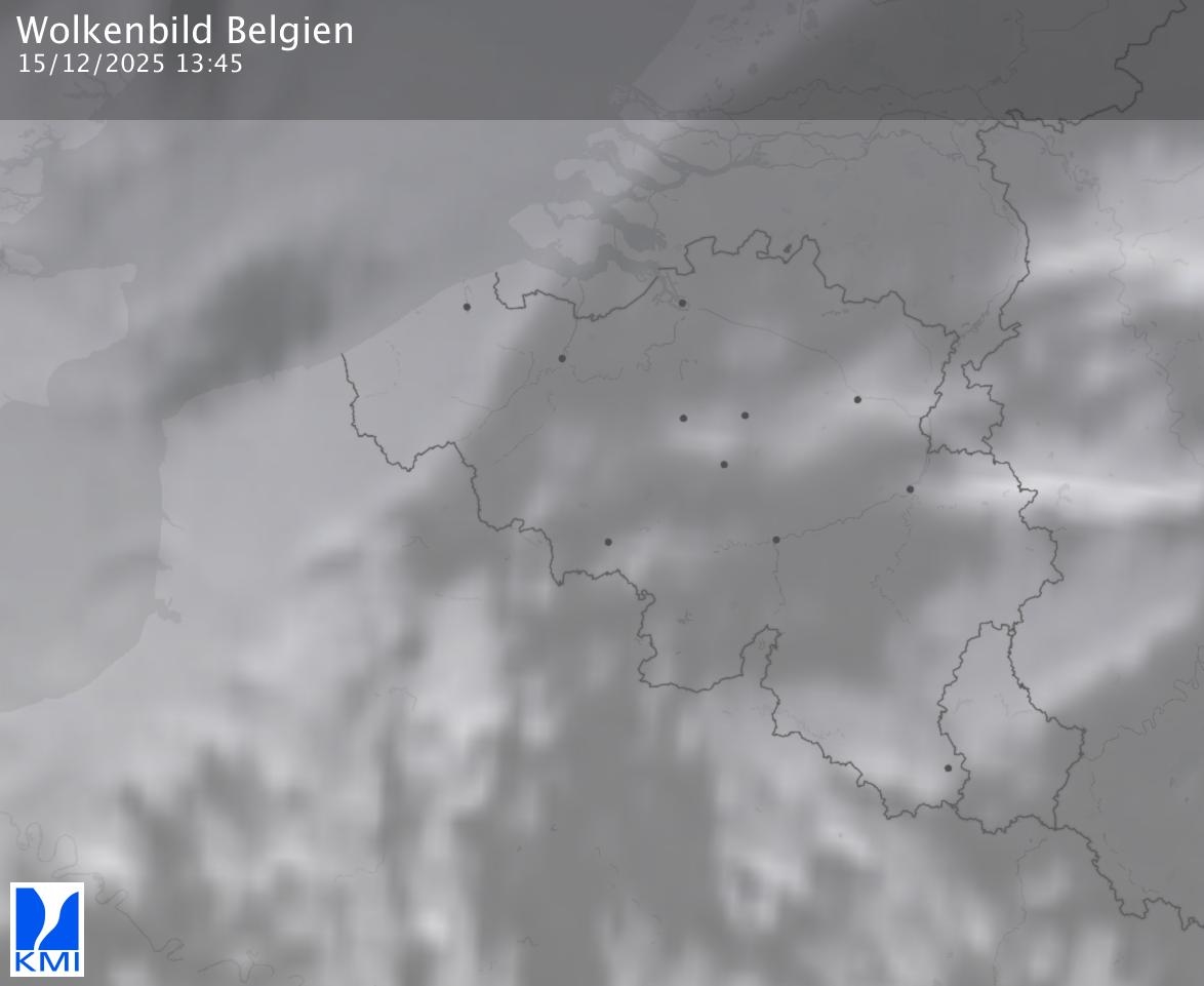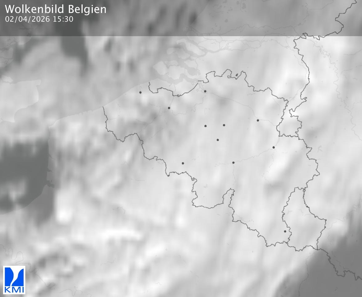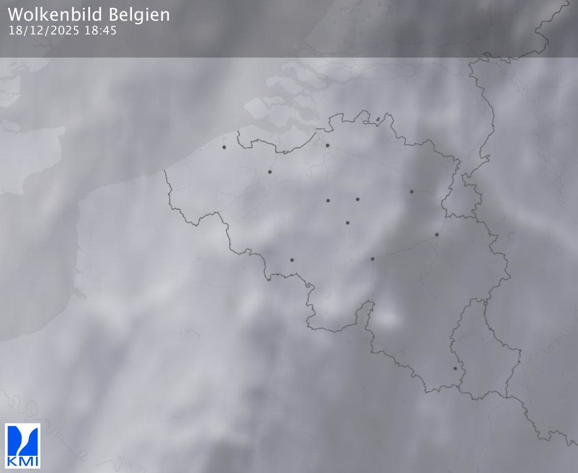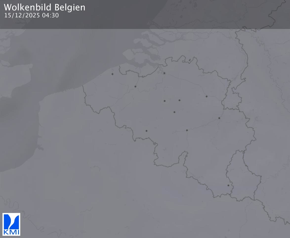Das Wolkenbild Belgiens ist eine Kombination der sichtbaren und Infrarotkanäle des Satelliten.