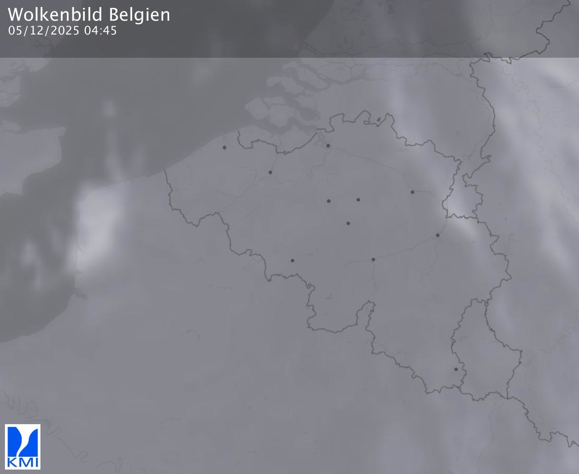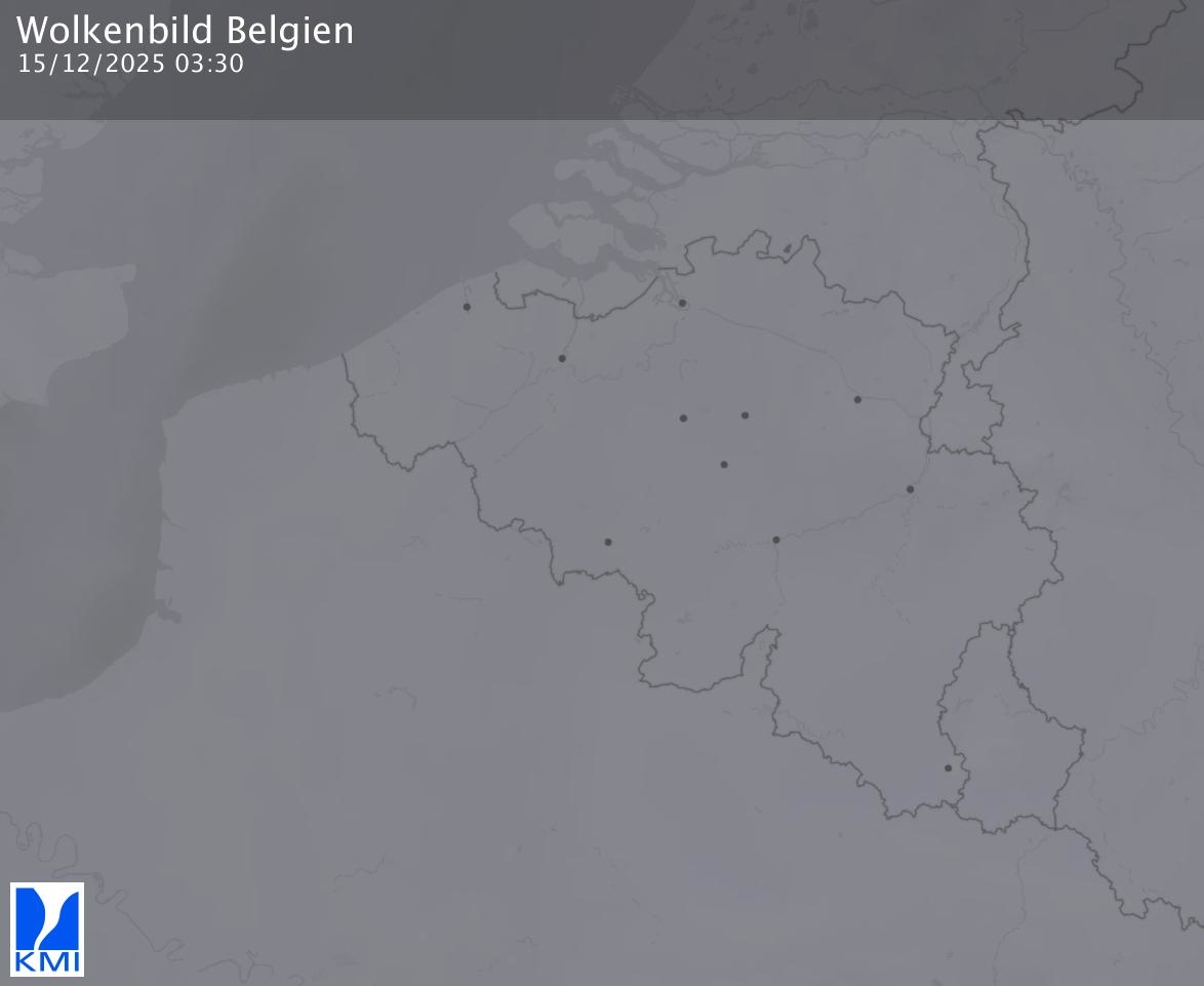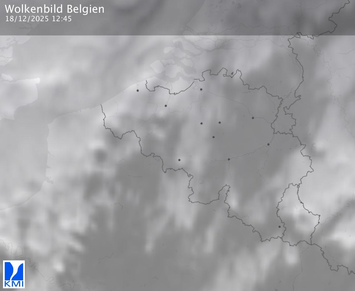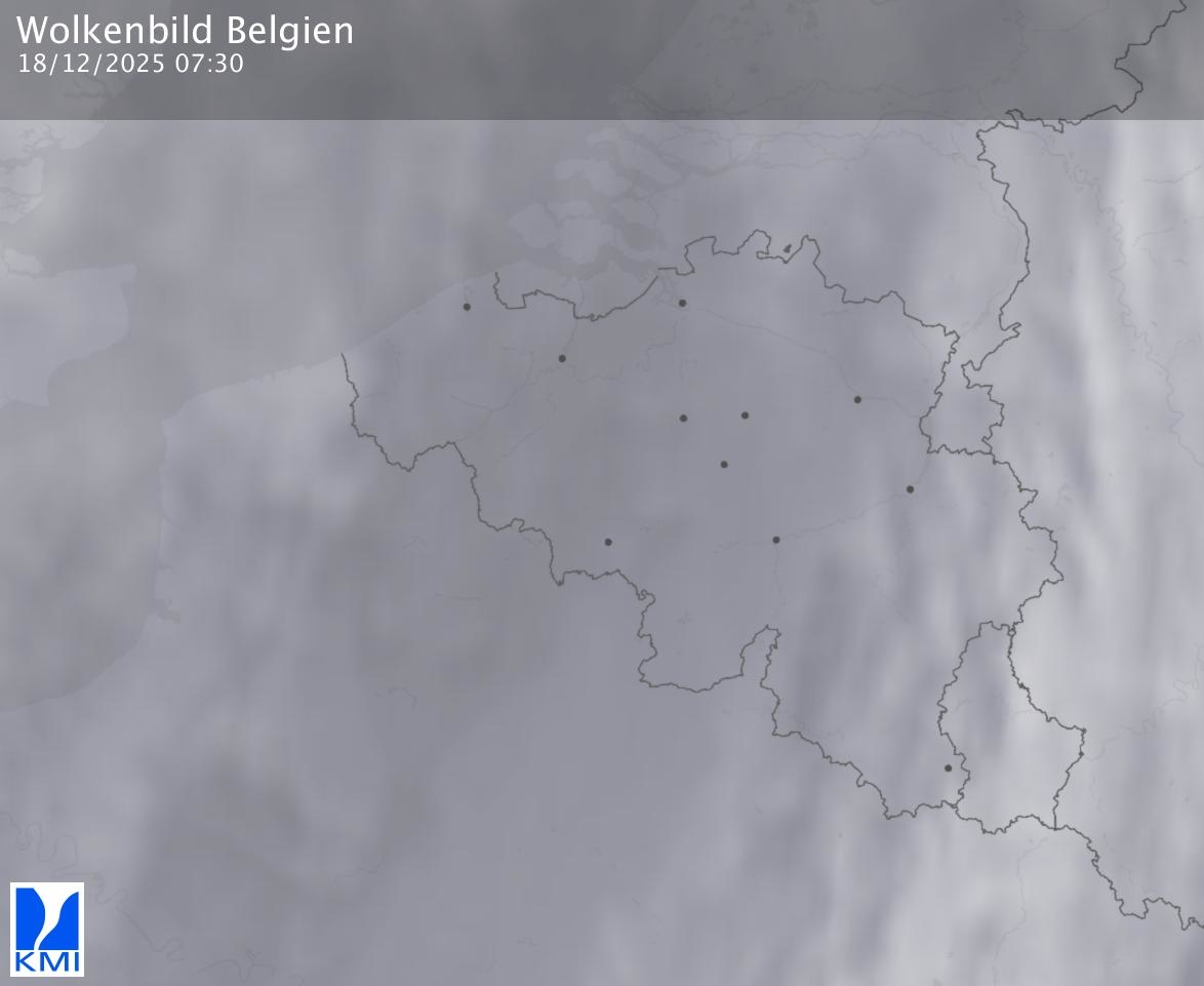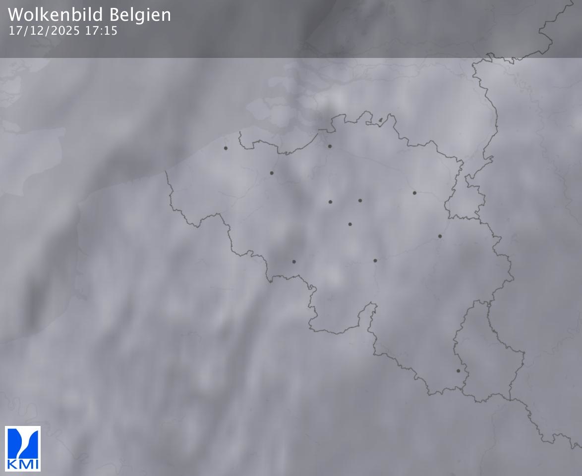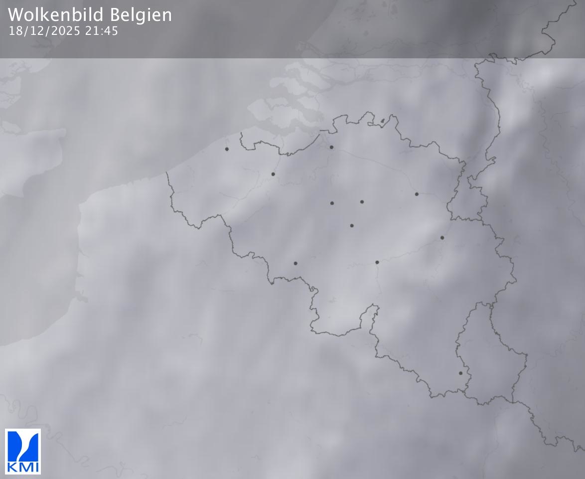 Das Wolkenbild Belgiens ist eine Kombination der sichtbaren und Infrarotkanäle des Satelliten.