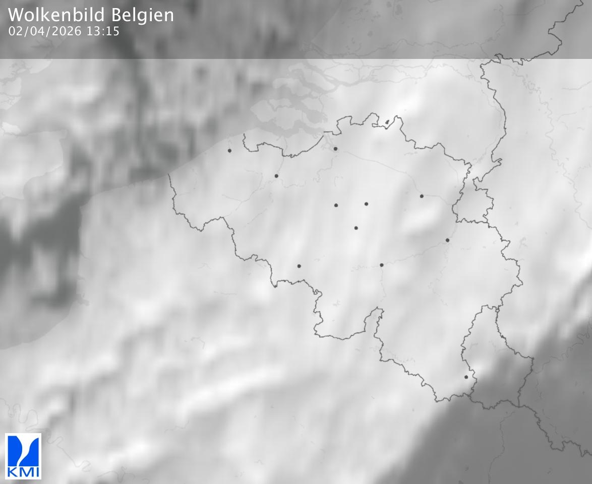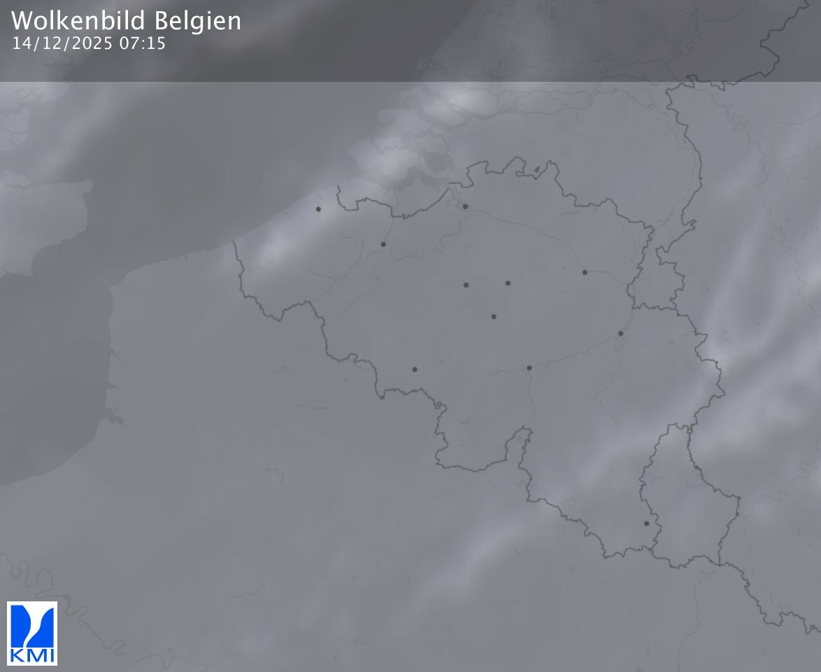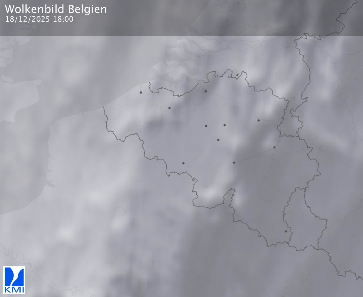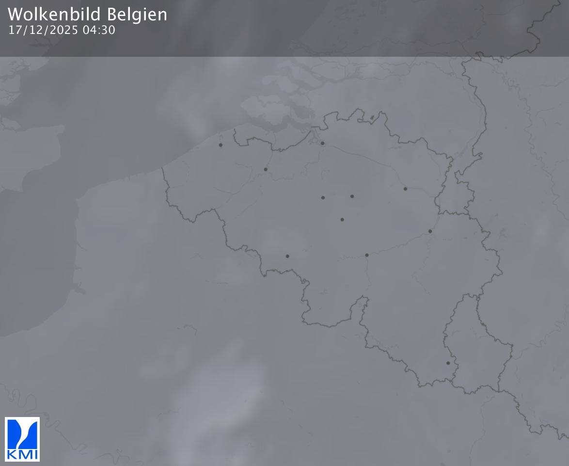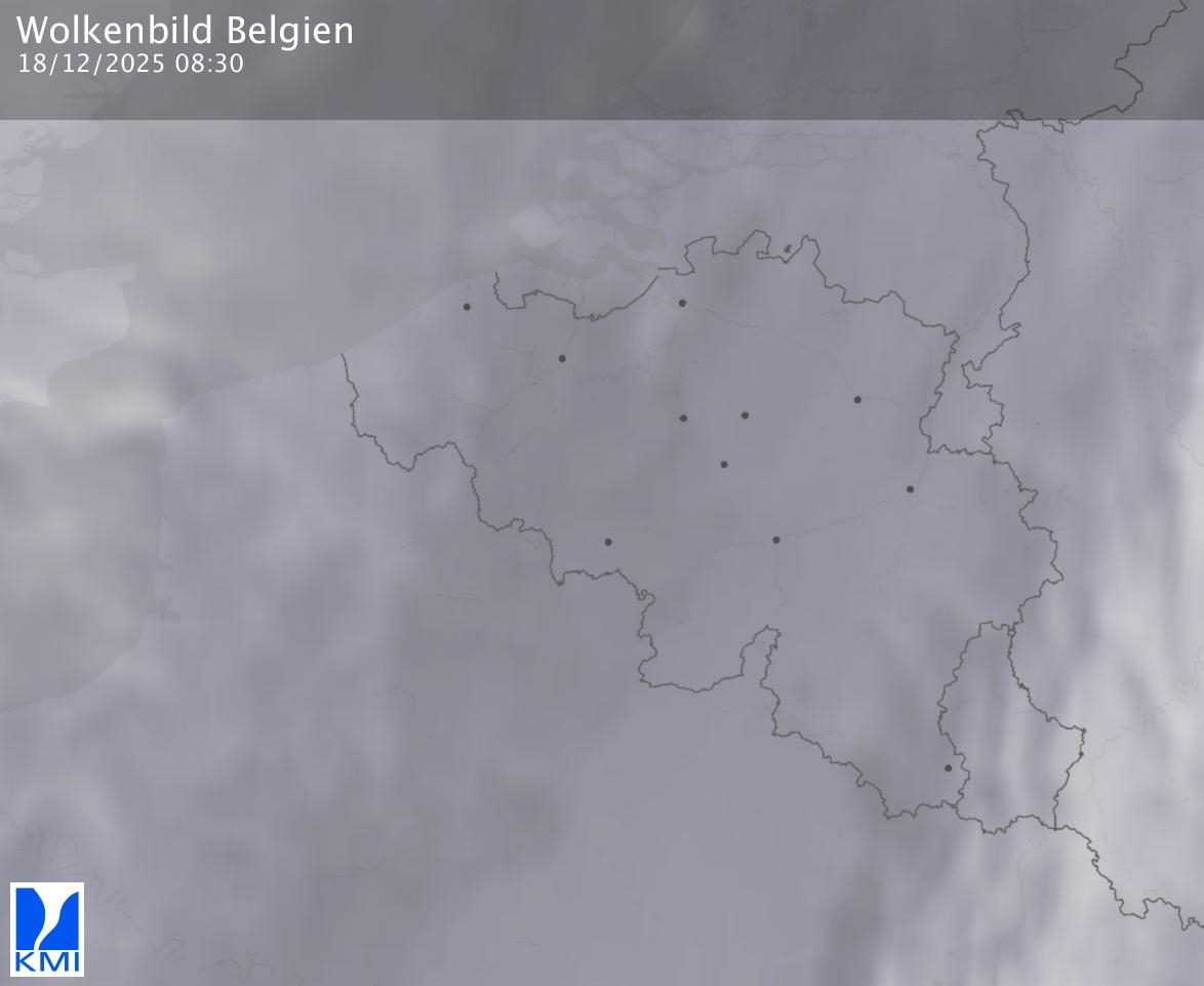 Das Wolkenbild Belgiens ist eine Kombination der sichtbaren und Infrarotkanäle des Satelliten.