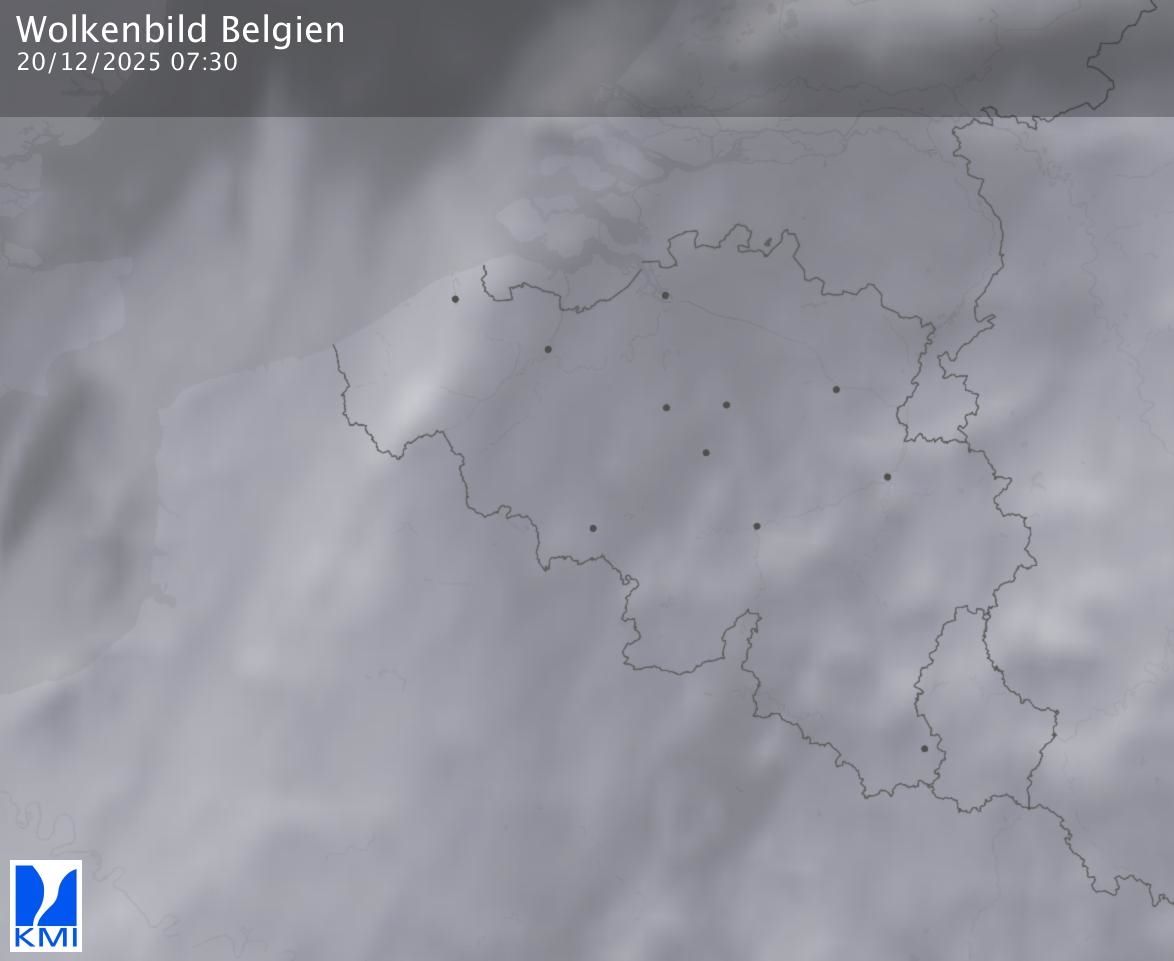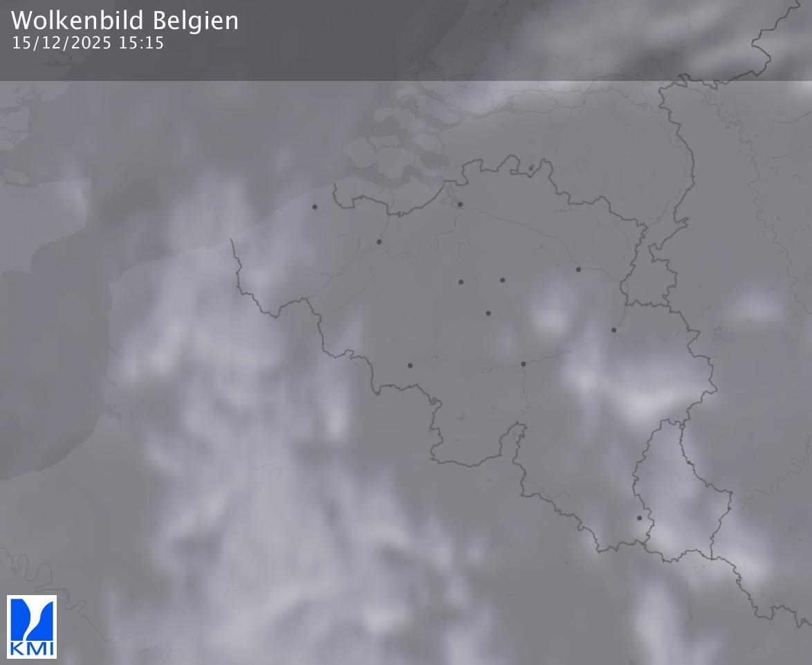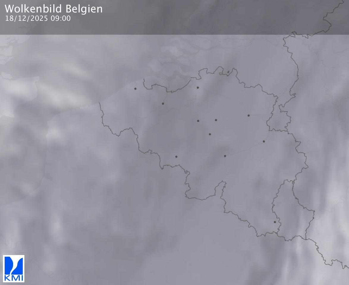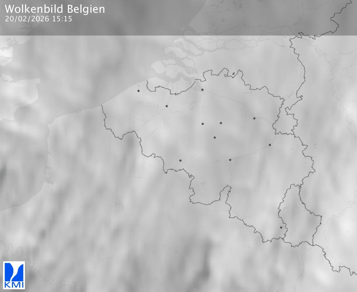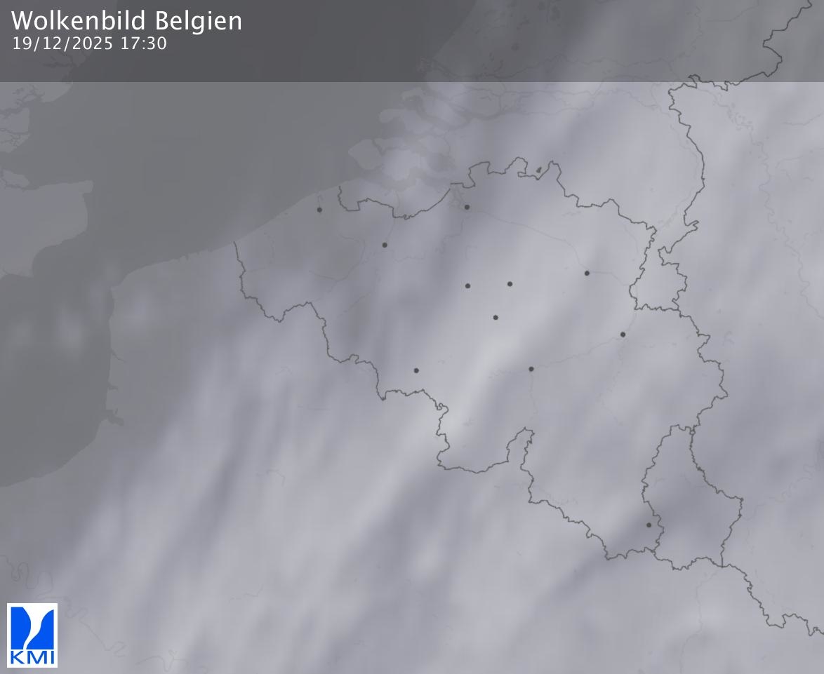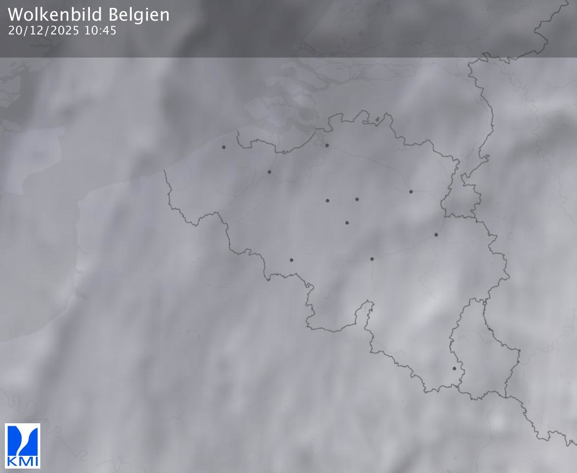 Das Wolkenbild Belgiens ist eine Kombination der sichtbaren und Infrarotkanäle des Satelliten.