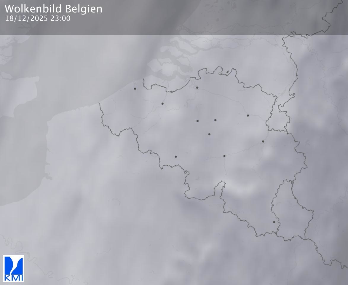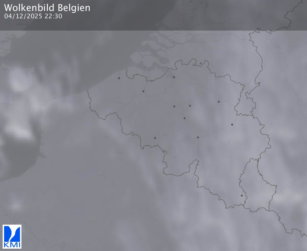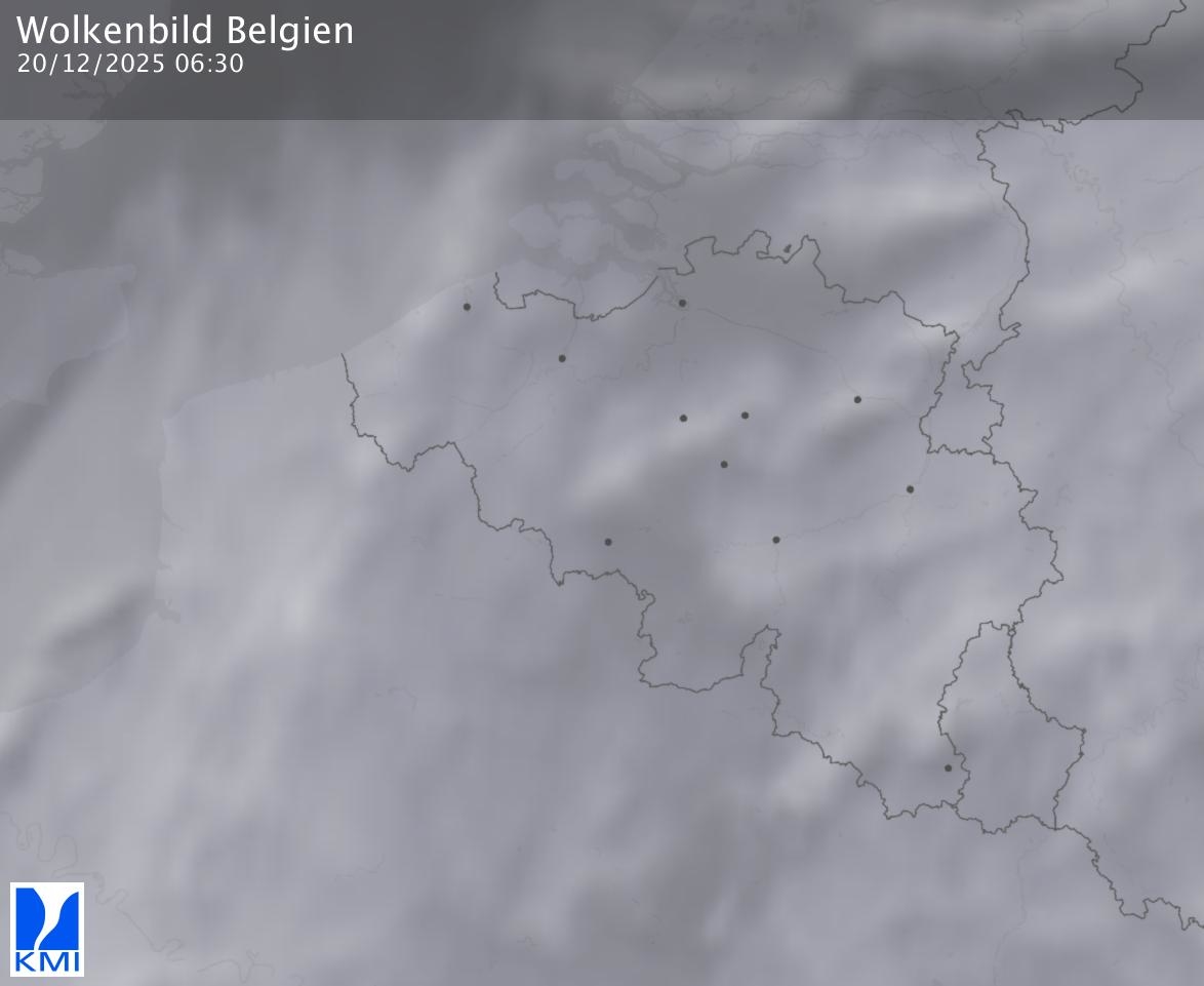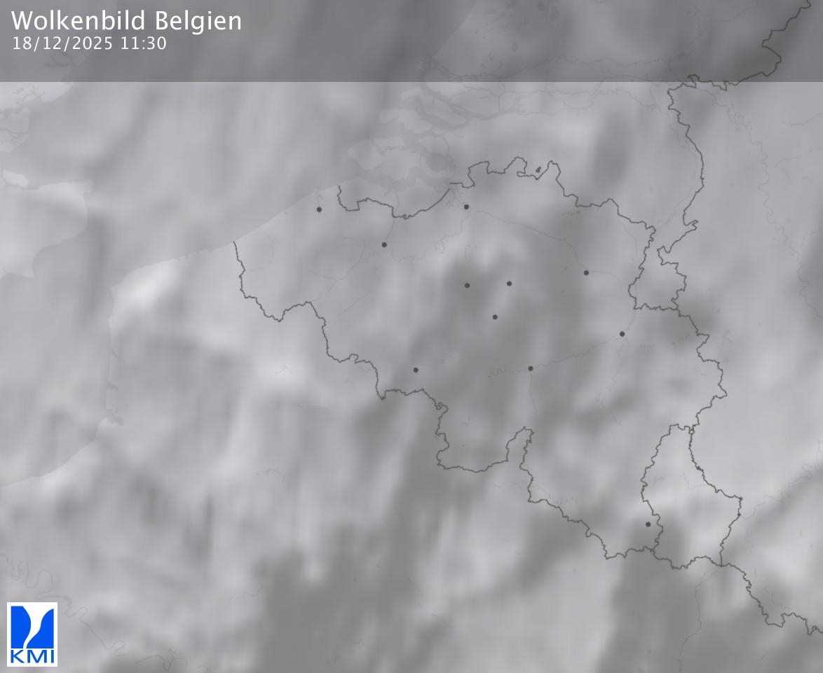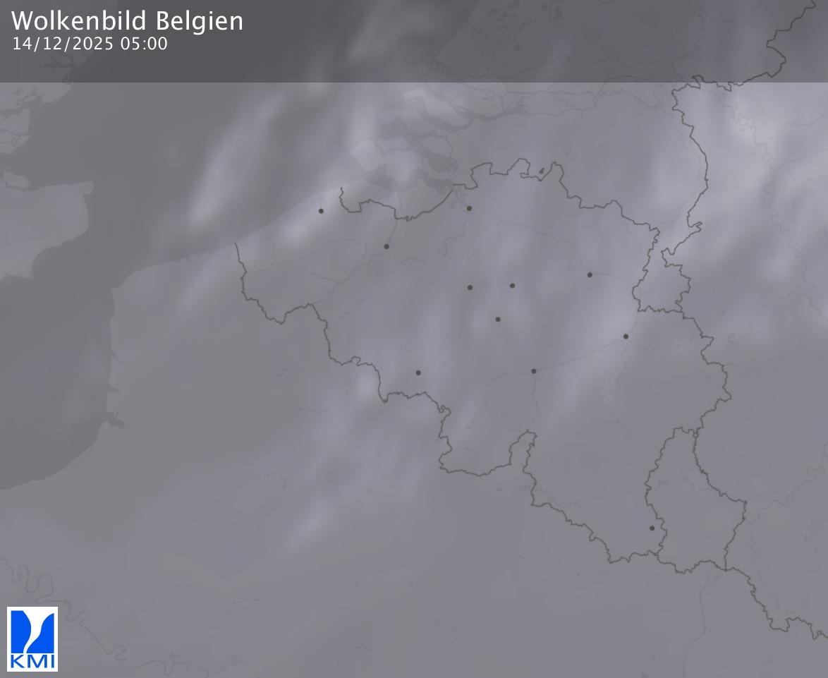 Das Wolkenbild Belgiens ist eine Kombination der sichtbaren und Infrarotkanäle des Satelliten.