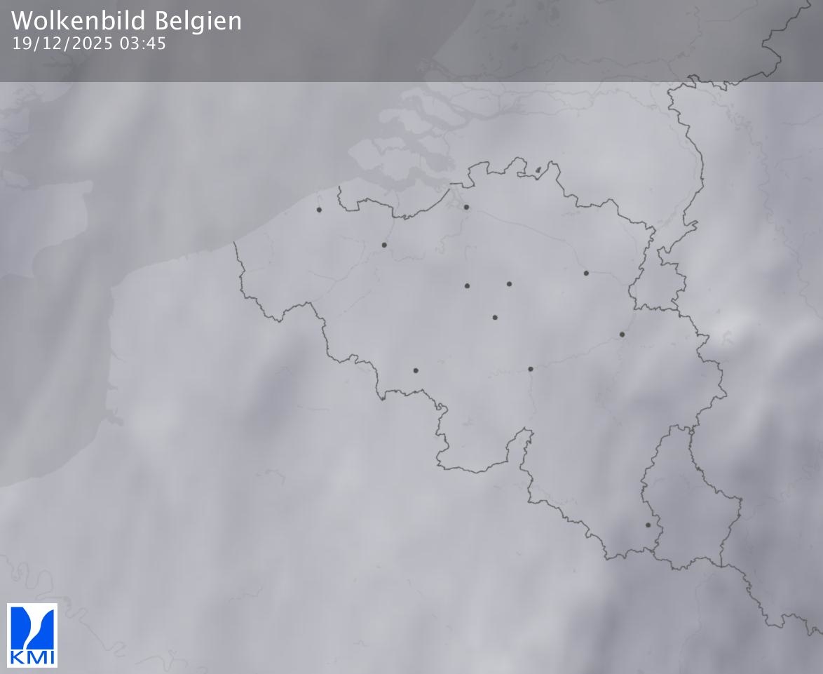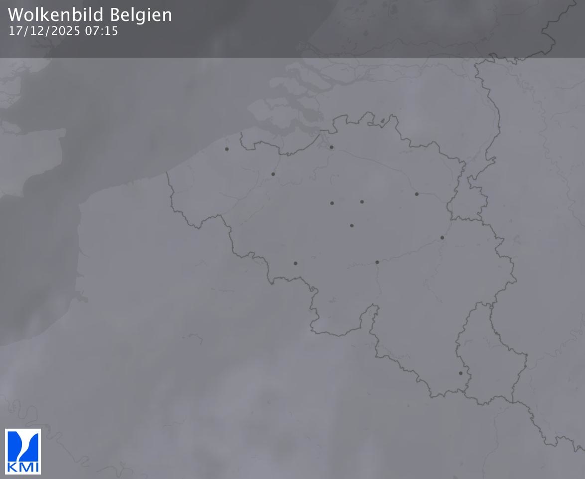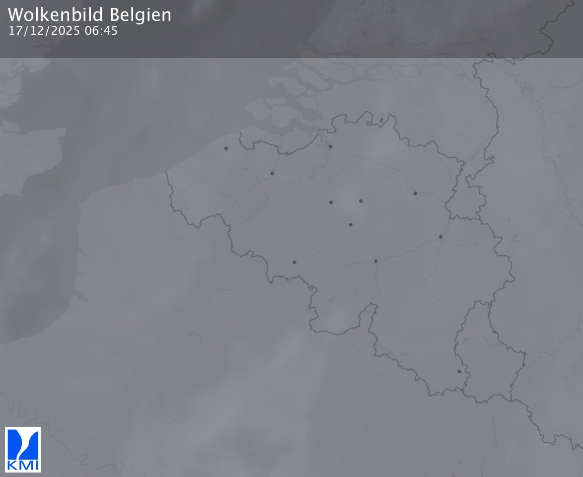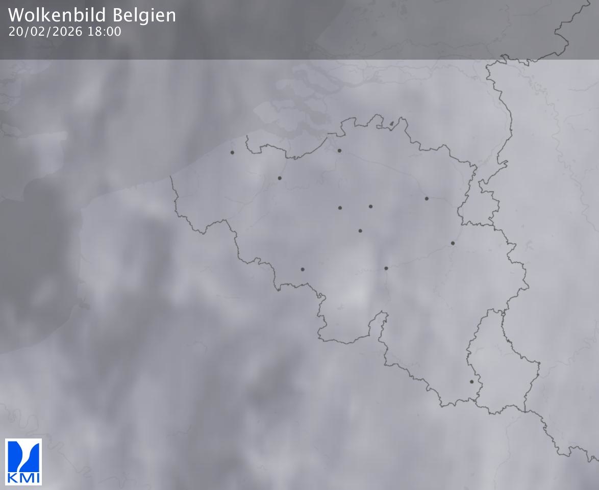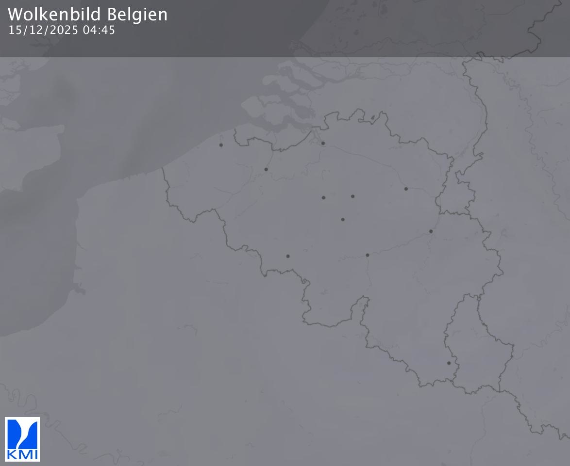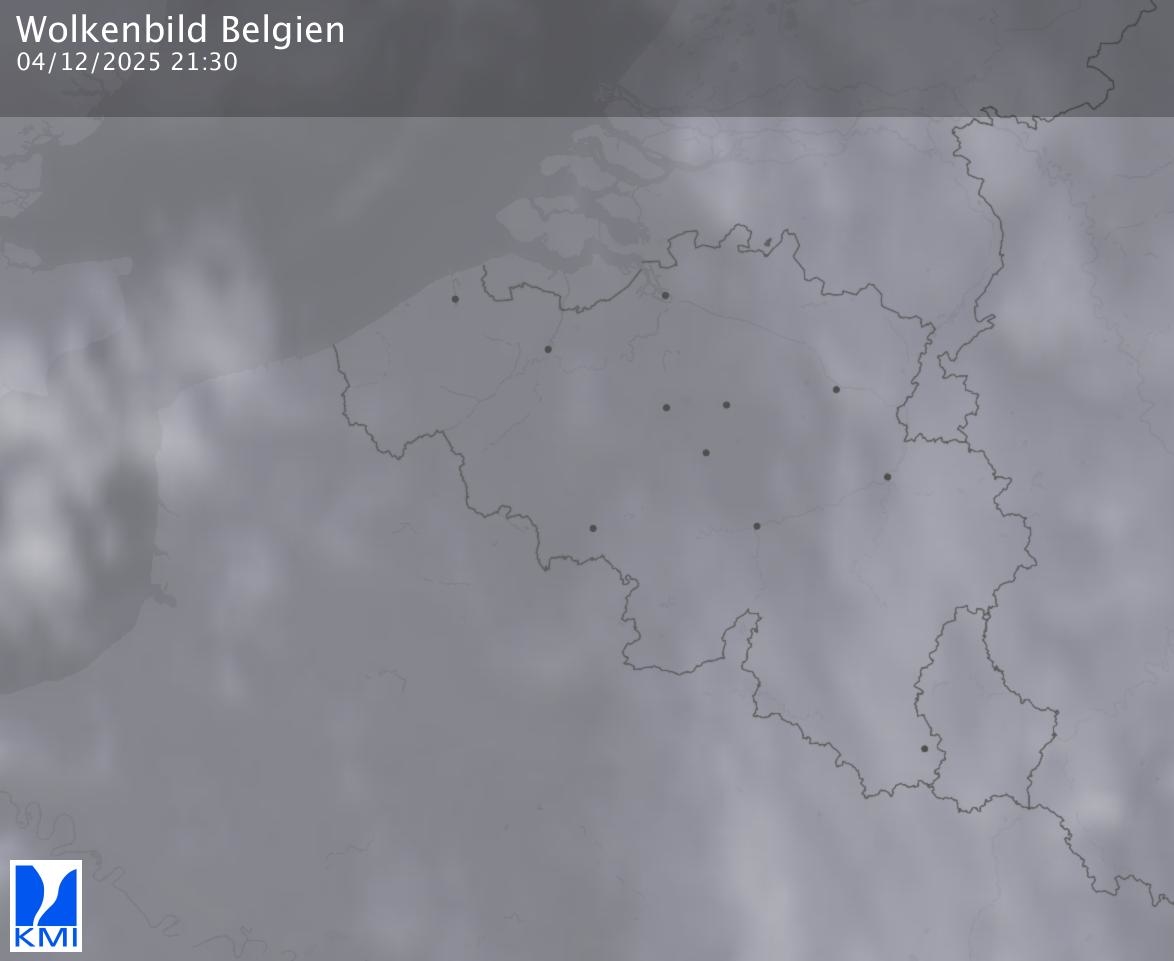 Das Wolkenbild Belgiens ist eine Kombination der sichtbaren und Infrarotkanäle des Satelliten.