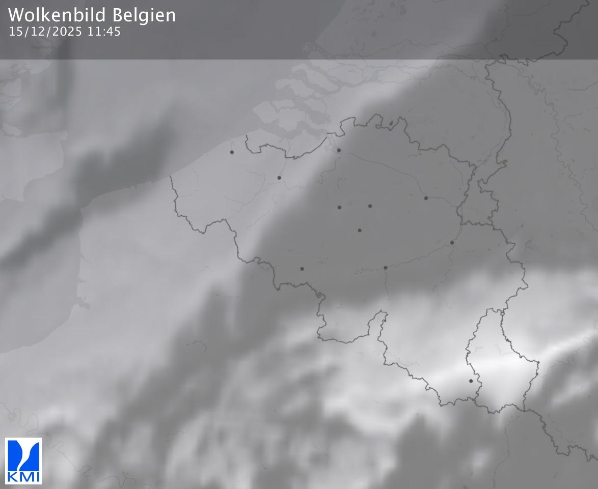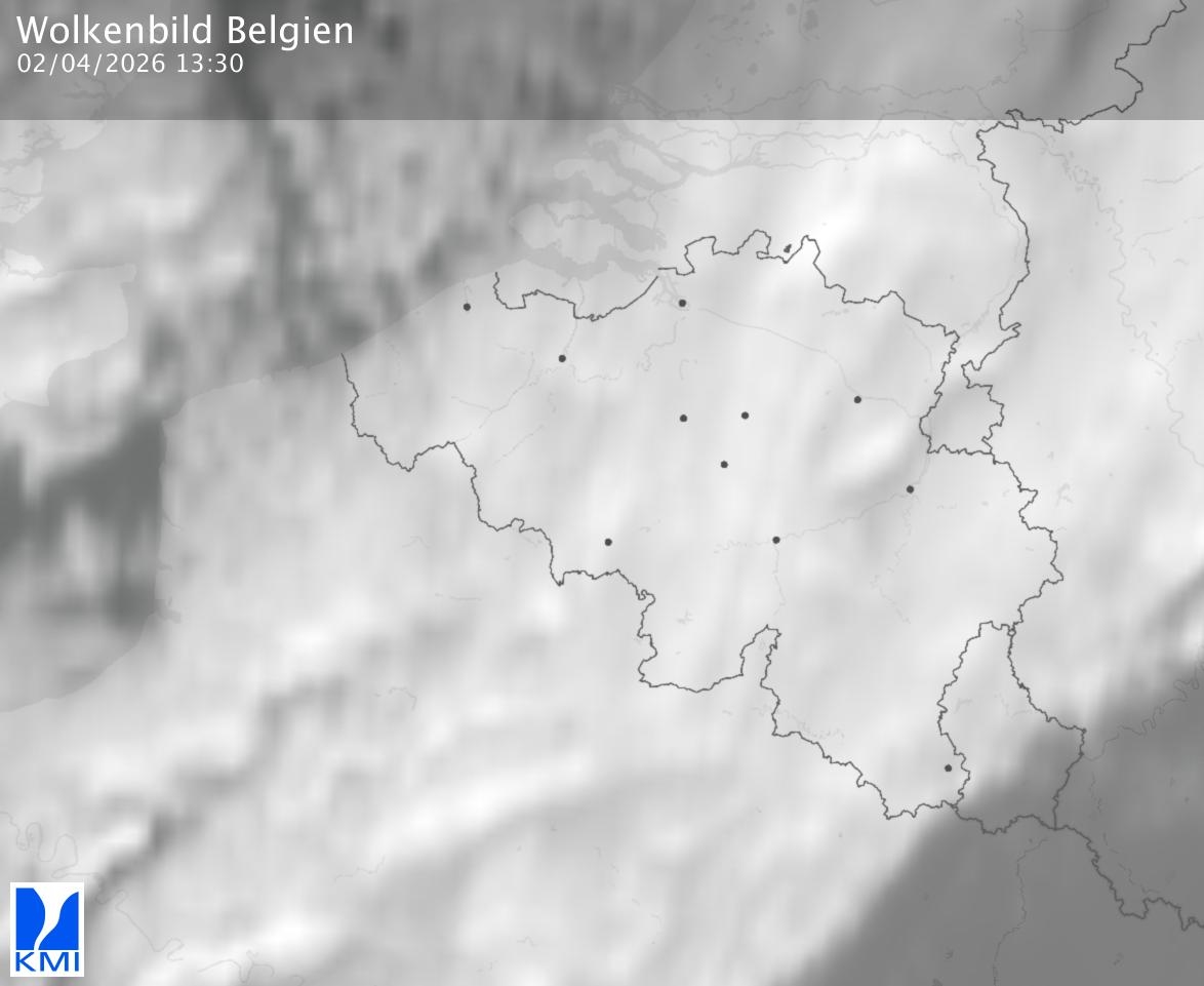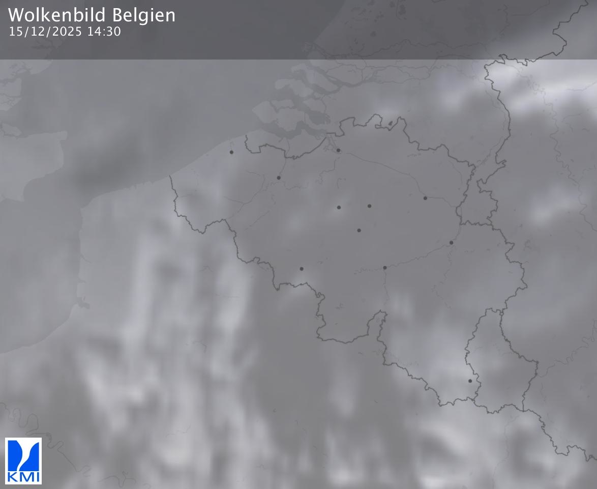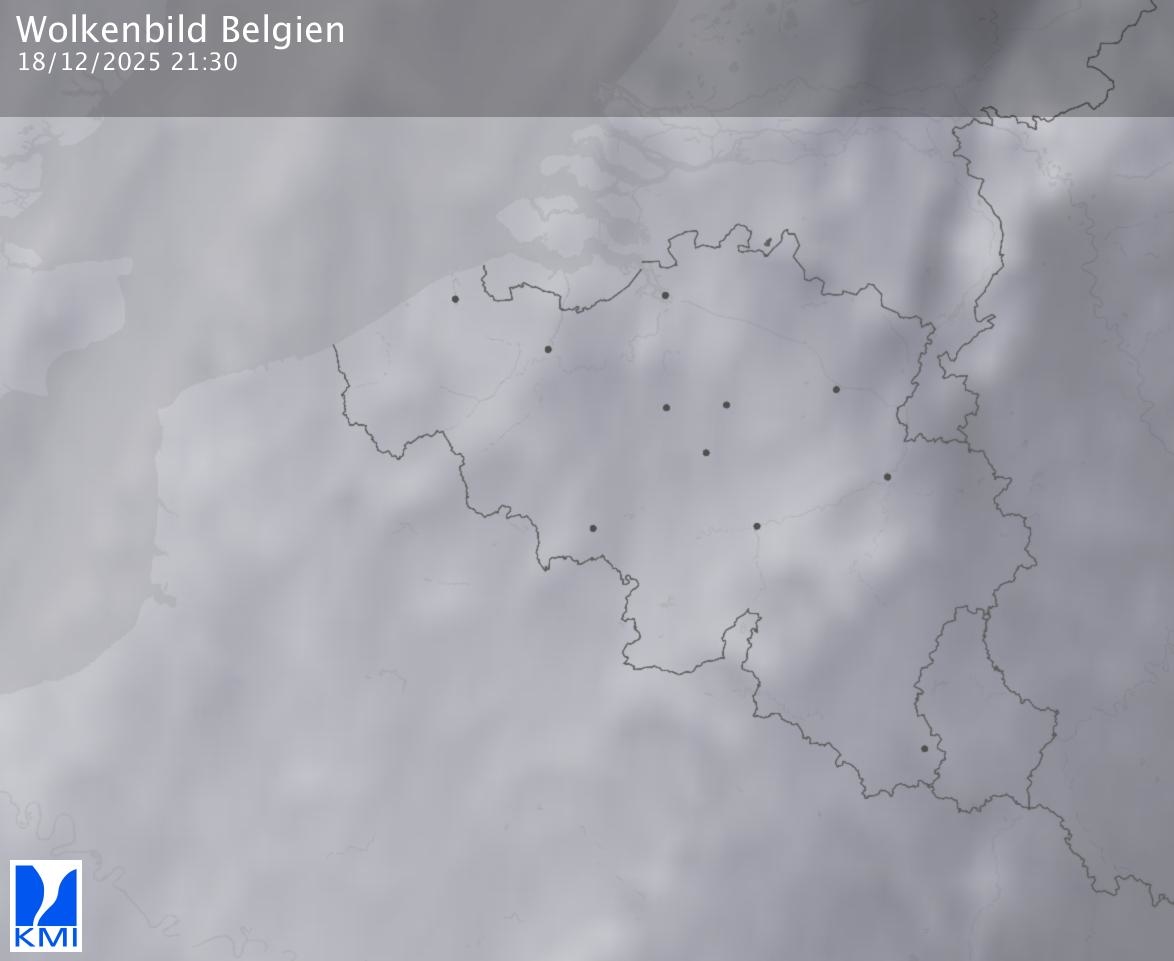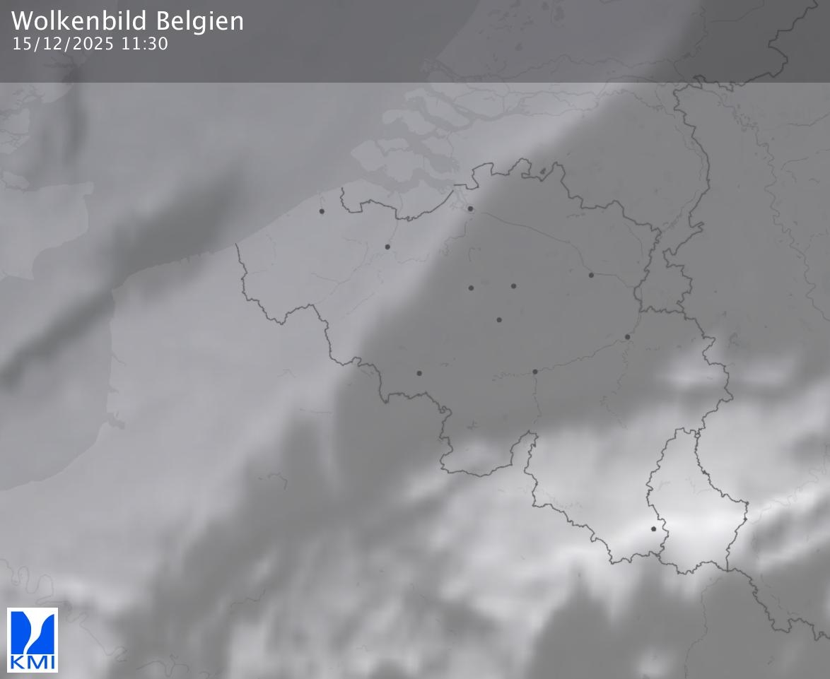 Das Wolkenbild Belgiens ist eine Kombination der sichtbaren und Infrarotkanäle des Satelliten.