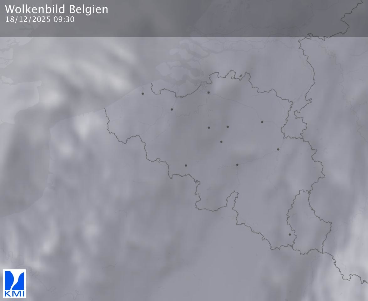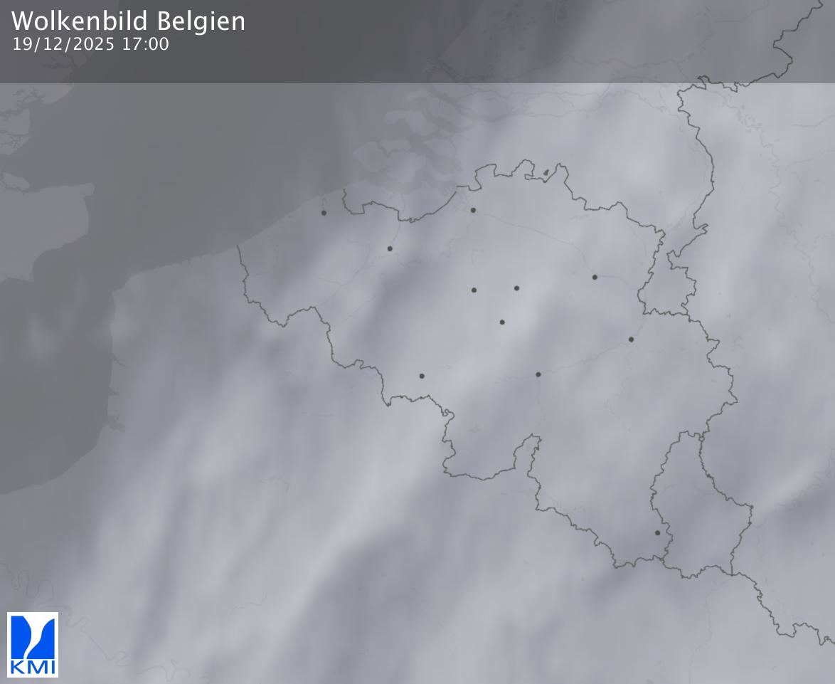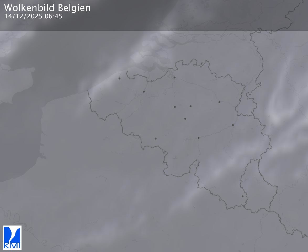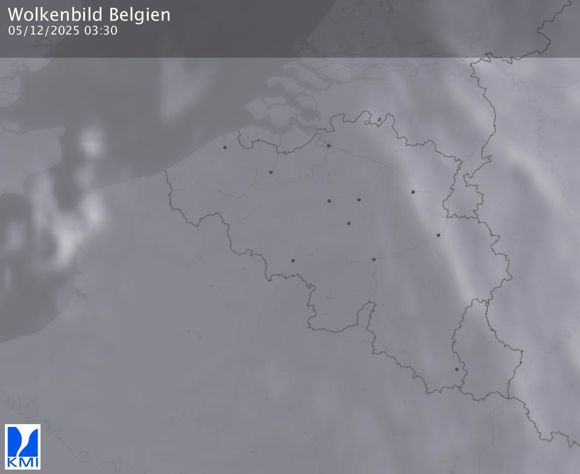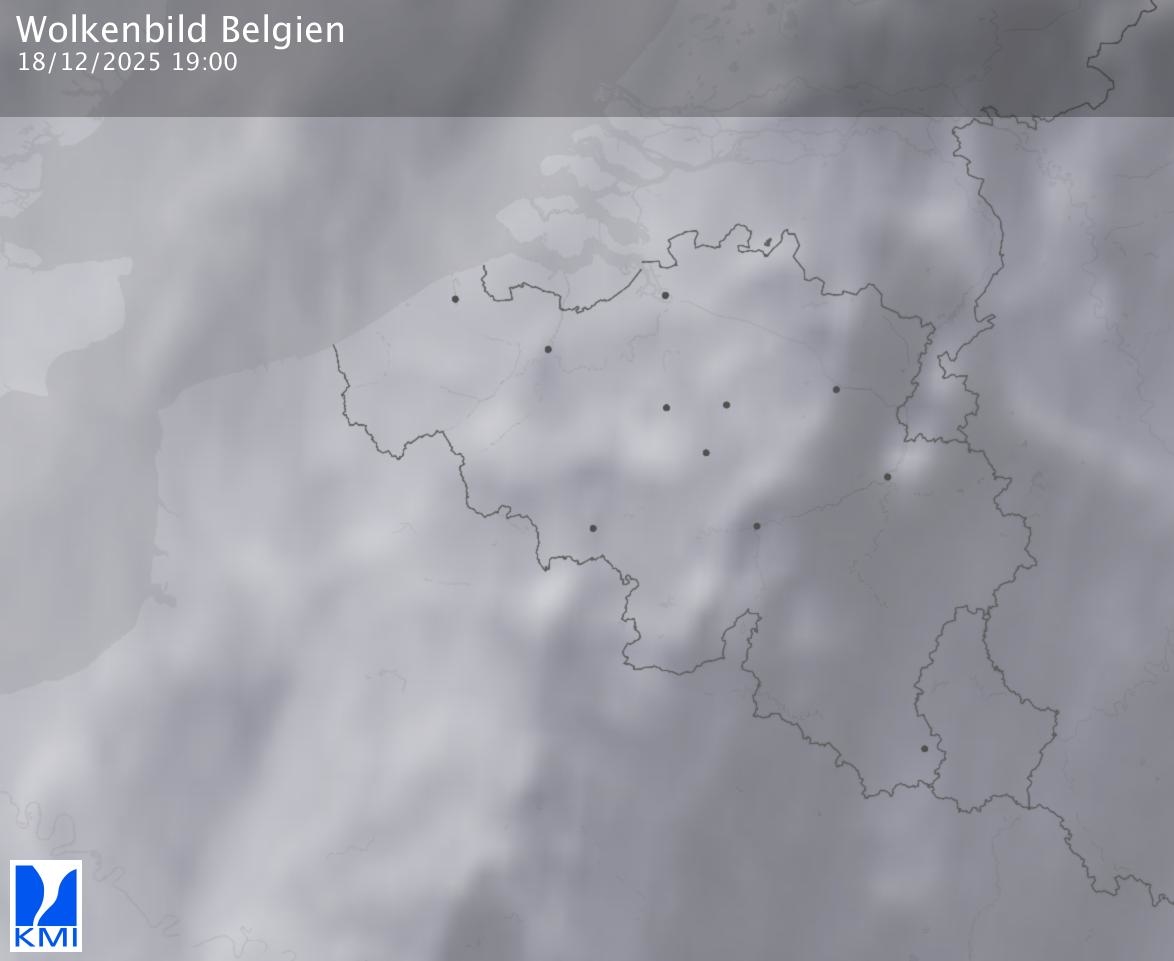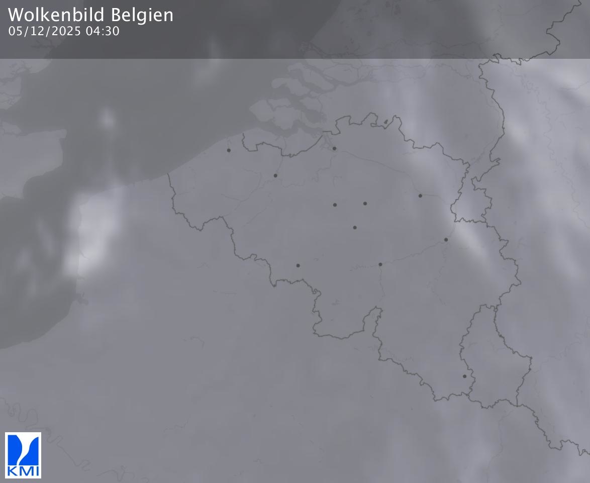 Das Wolkenbild Belgiens ist eine Kombination der sichtbaren und Infrarotkanäle des Satelliten.