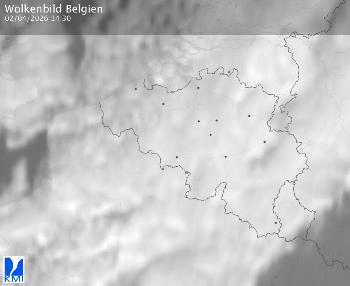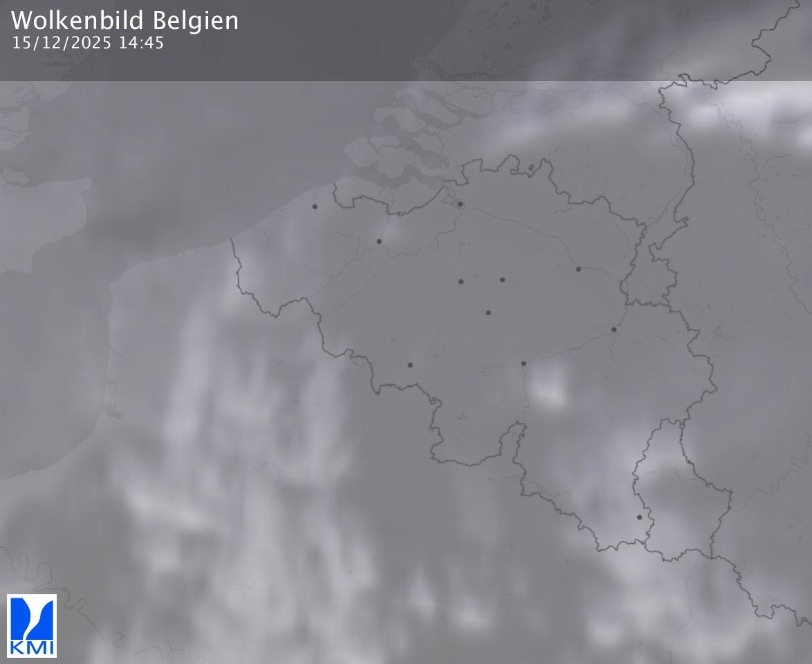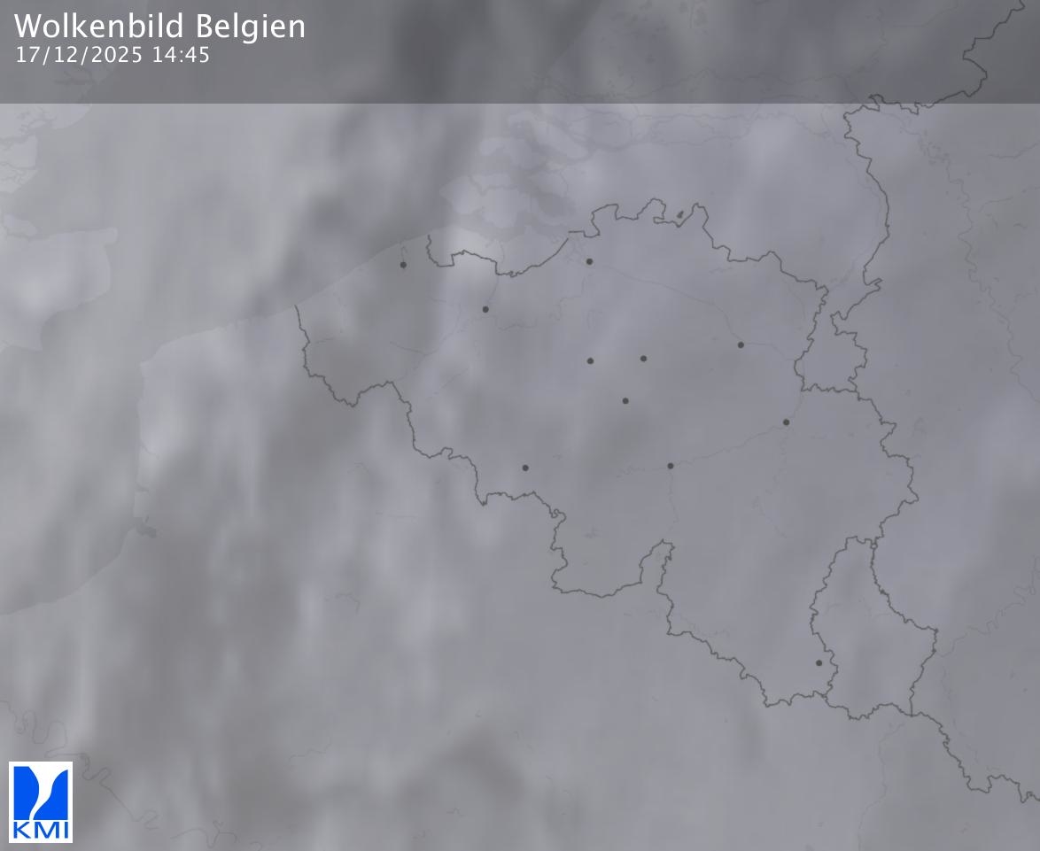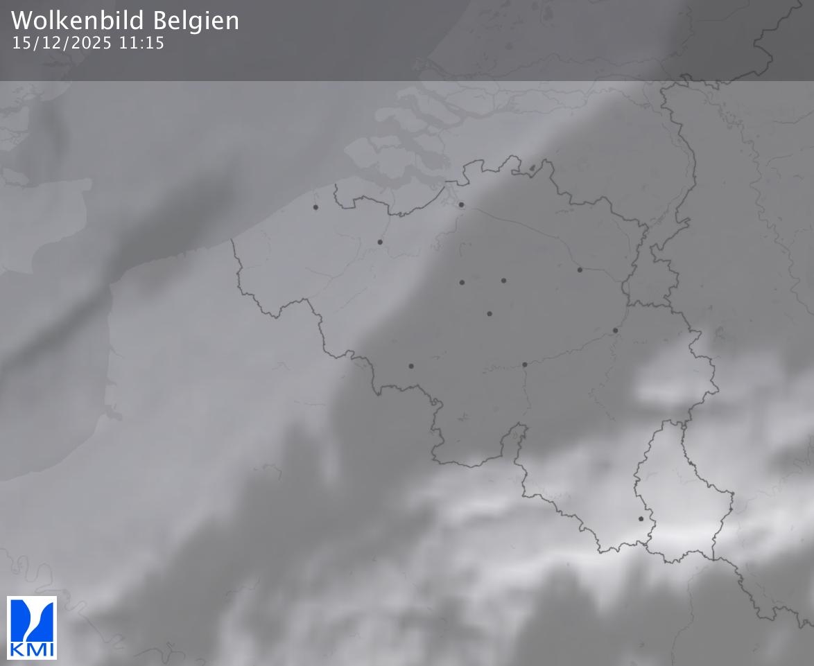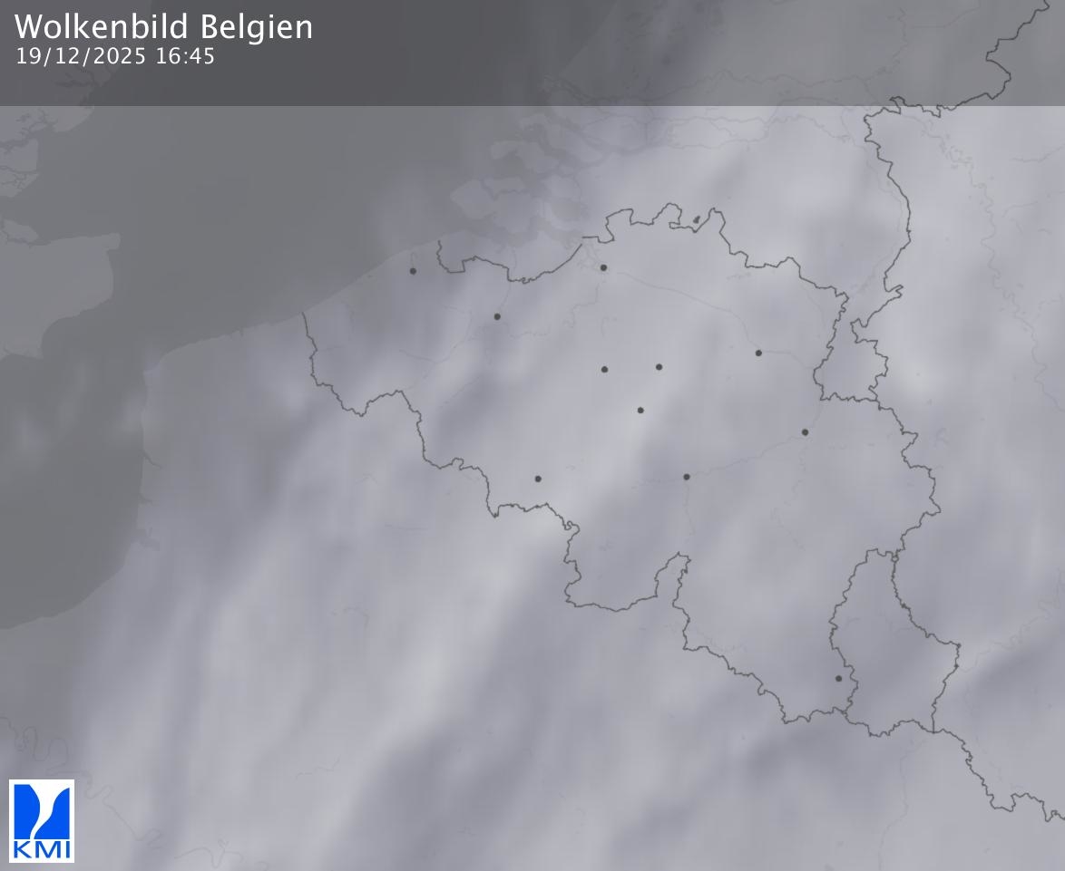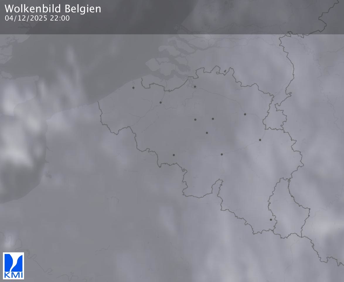 Das Wolkenbild Belgiens ist eine Kombination der sichtbaren und Infrarotkanäle des Satelliten.