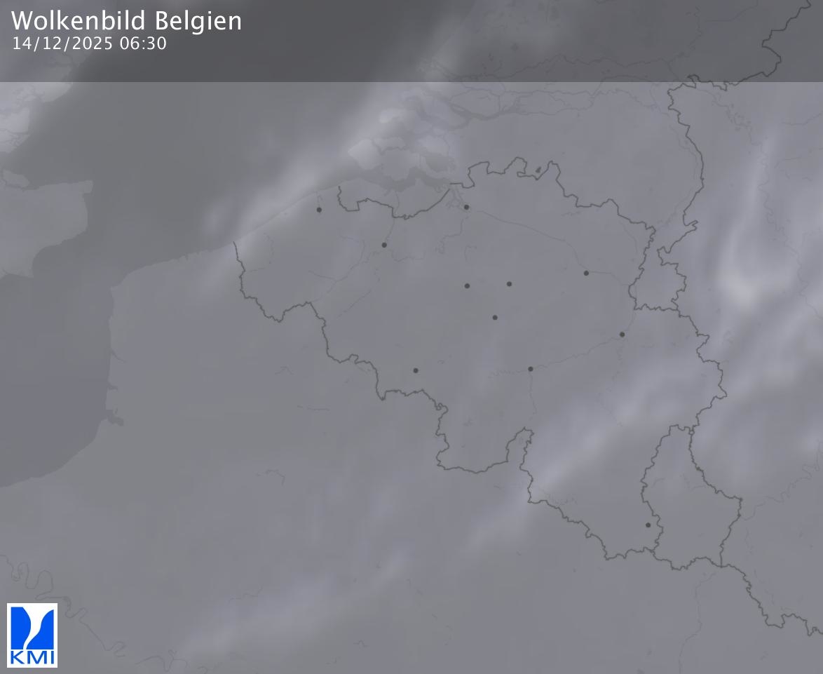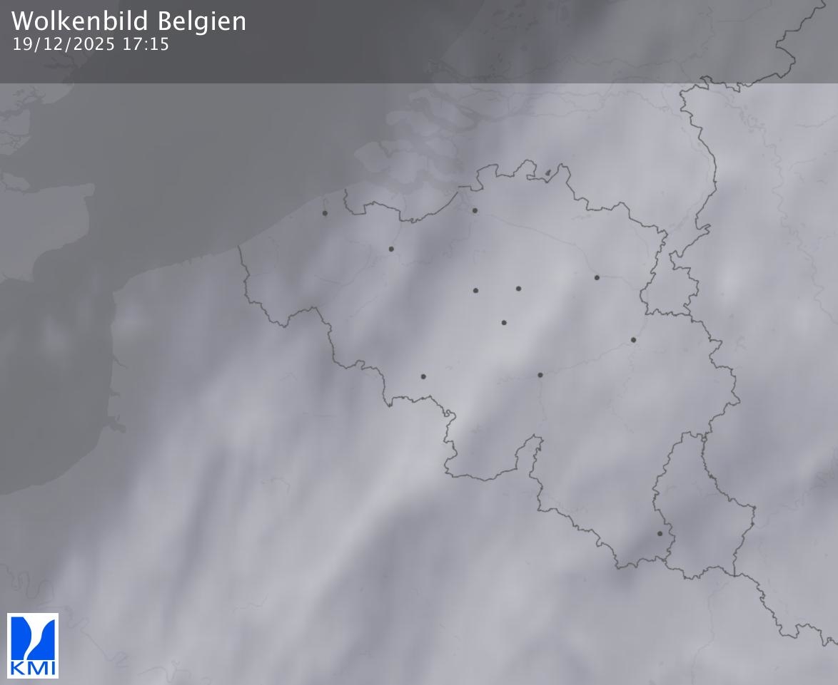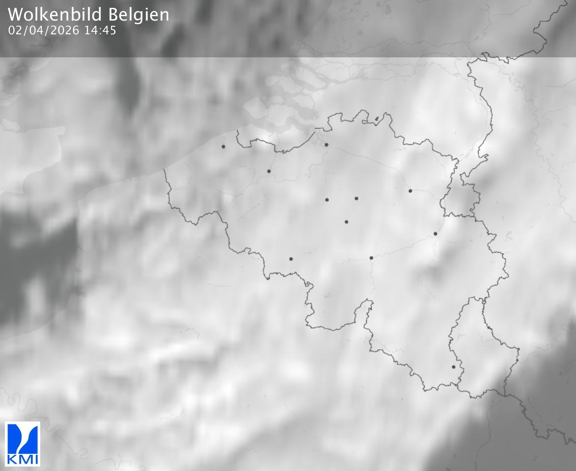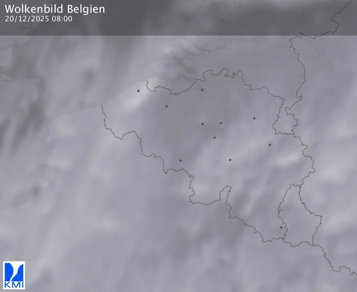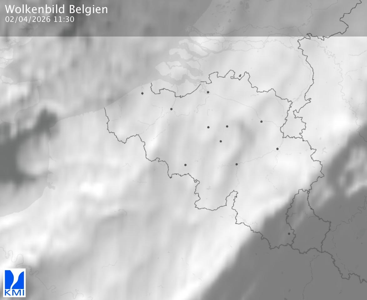 Das Wolkenbild Belgiens ist eine Kombination der sichtbaren und Infrarotkanäle des Satelliten.
