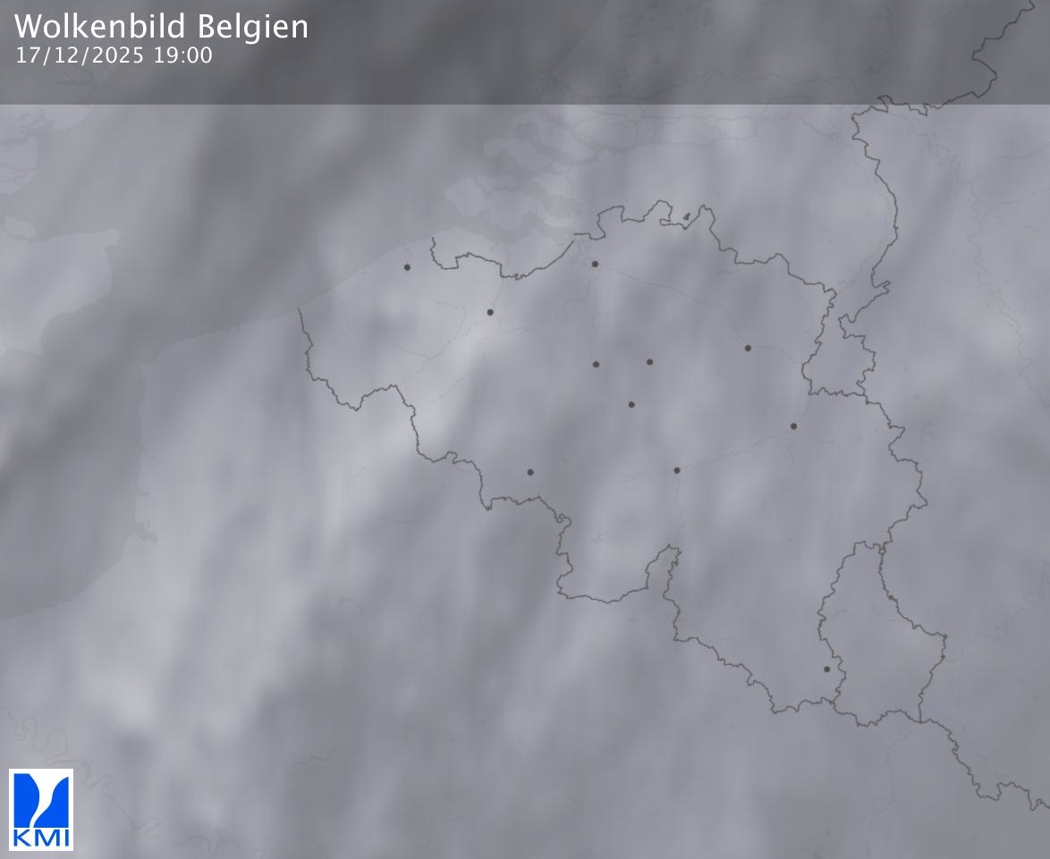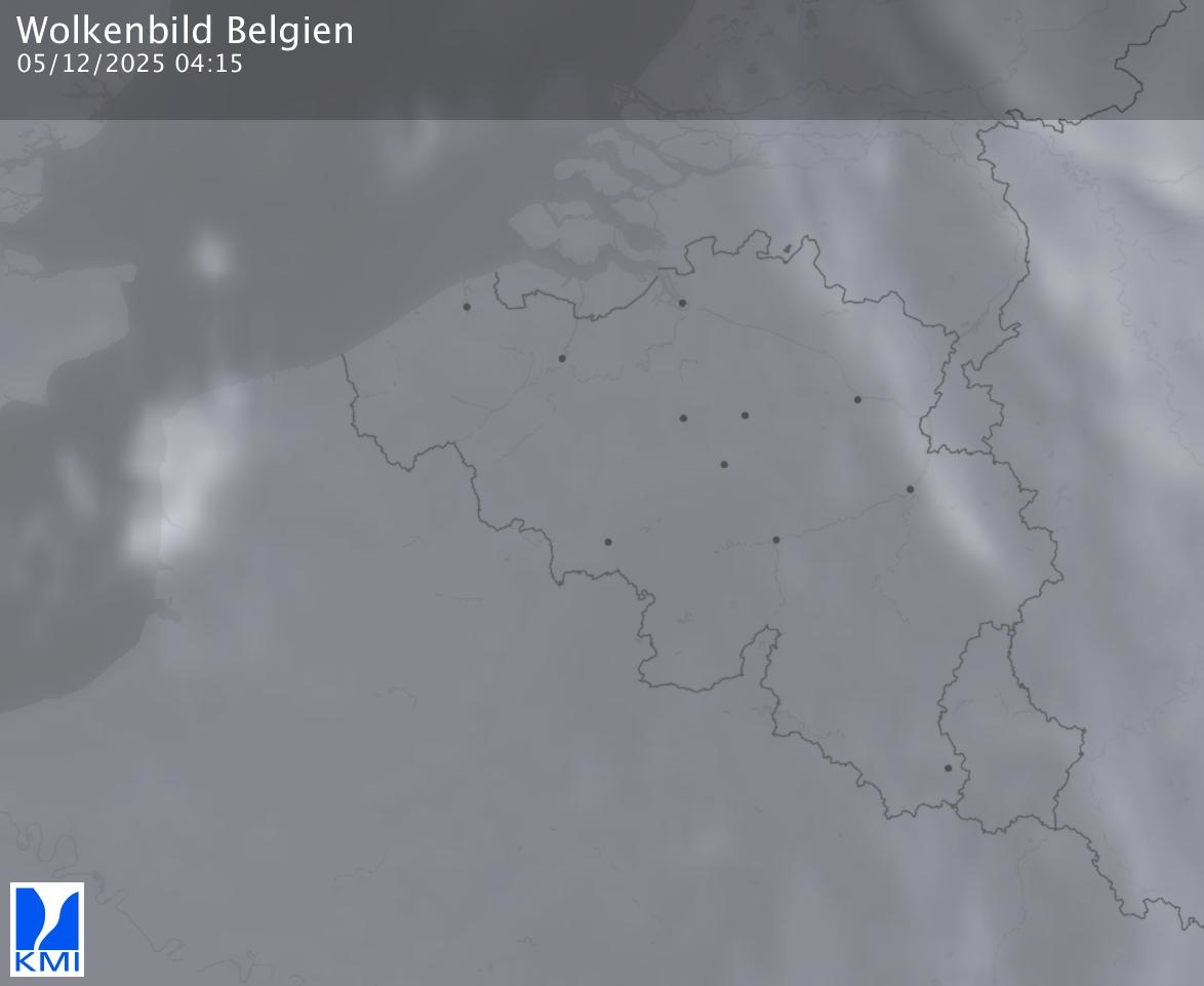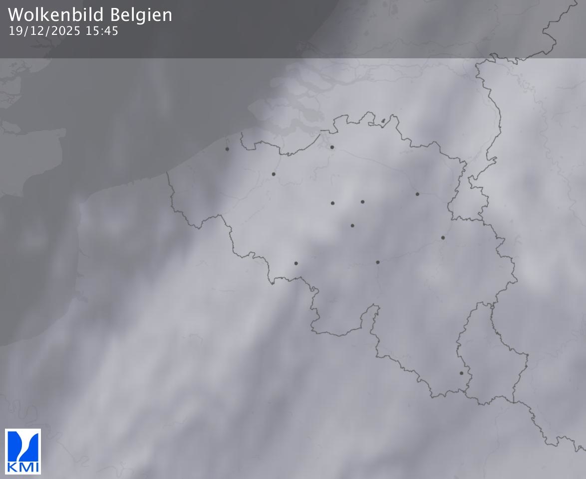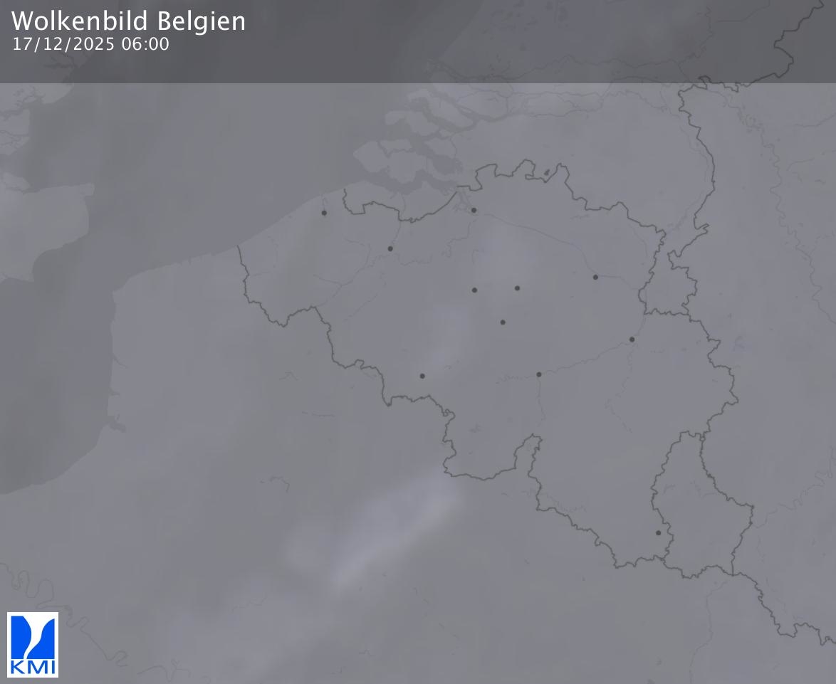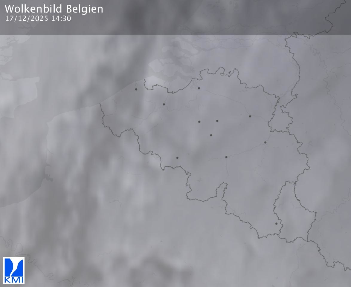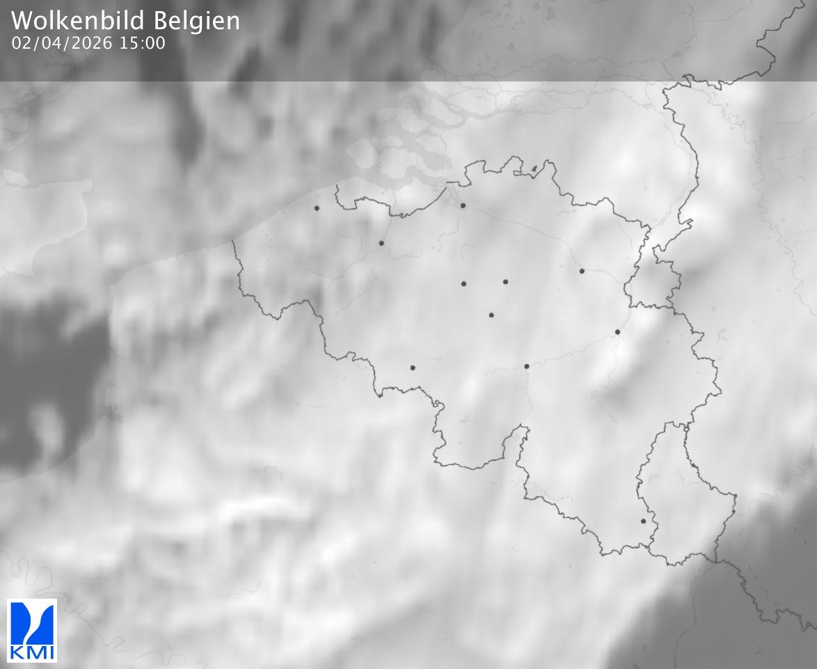 Das Wolkenbild Belgiens ist eine Kombination der sichtbaren und Infrarotkanäle des Satelliten.
