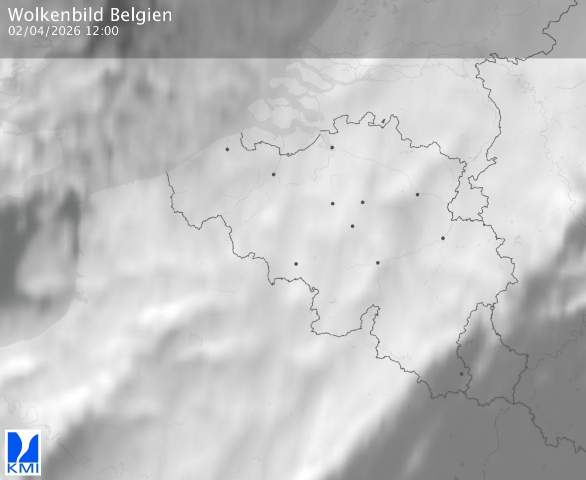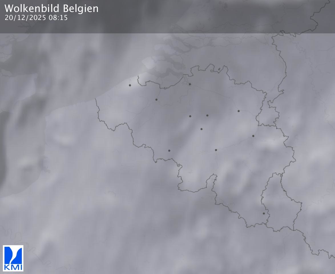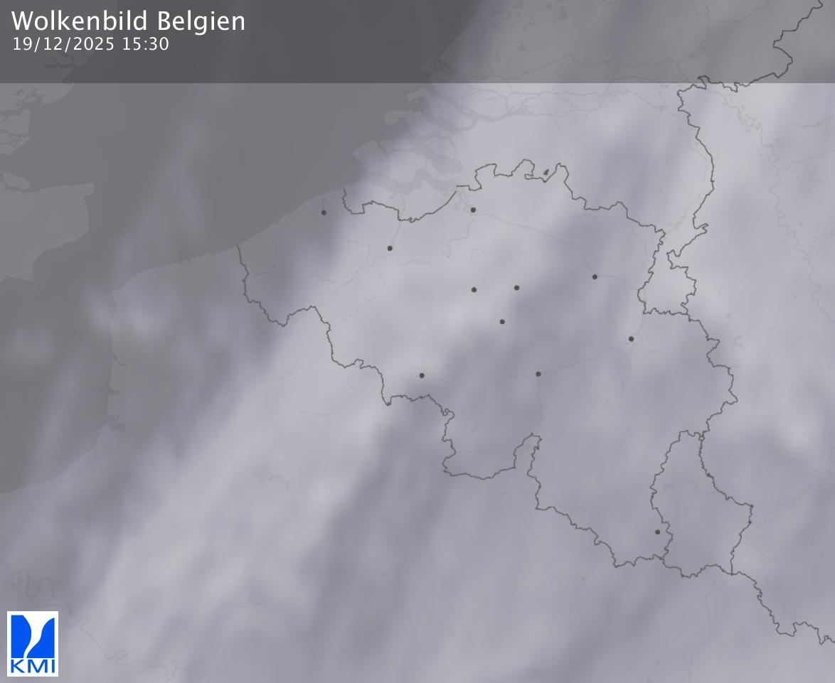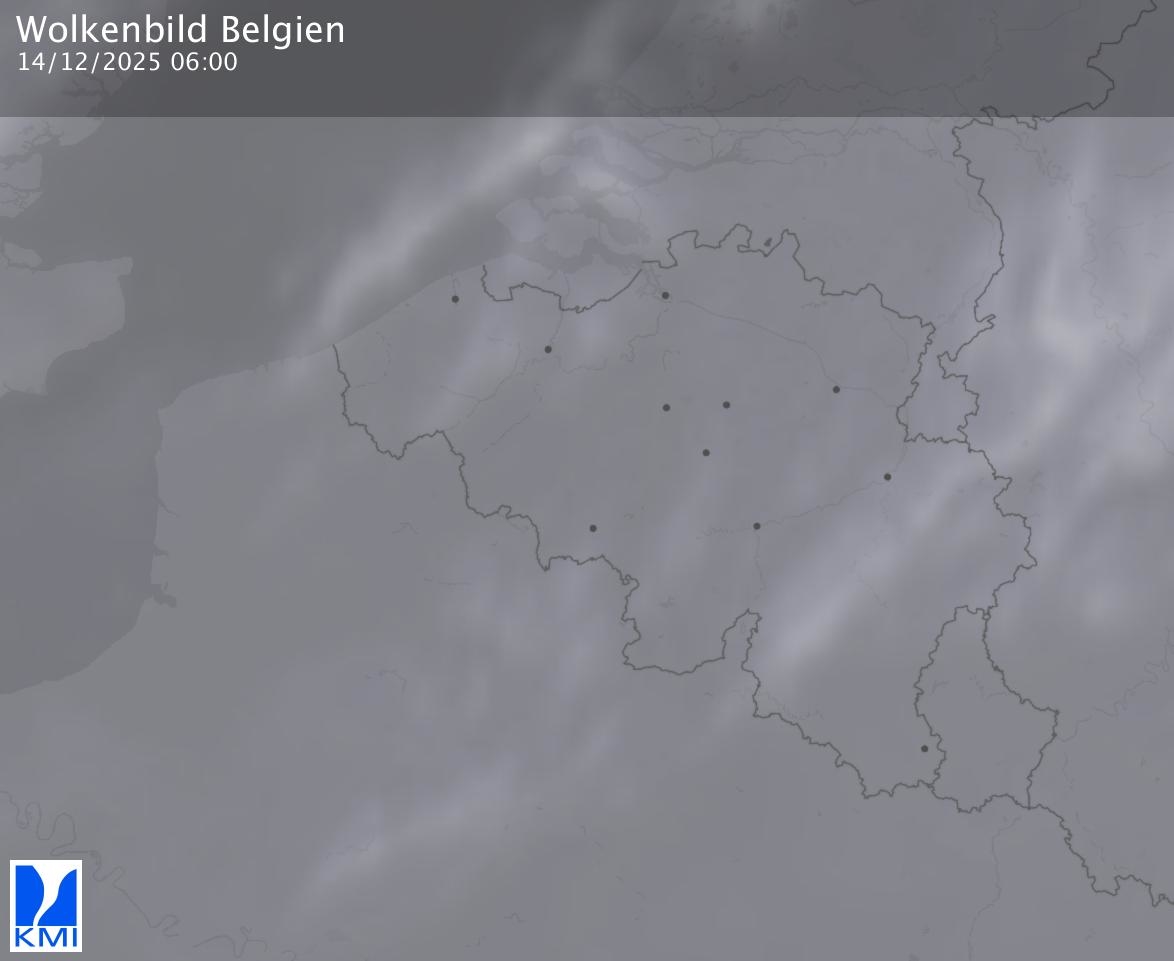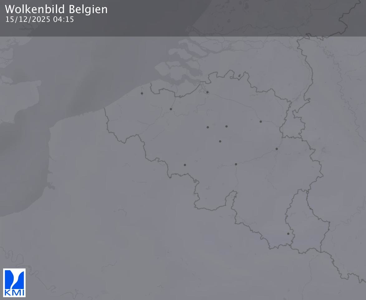 Das Wolkenbild Belgiens ist eine Kombination der sichtbaren und Infrarotkanäle des Satelliten.