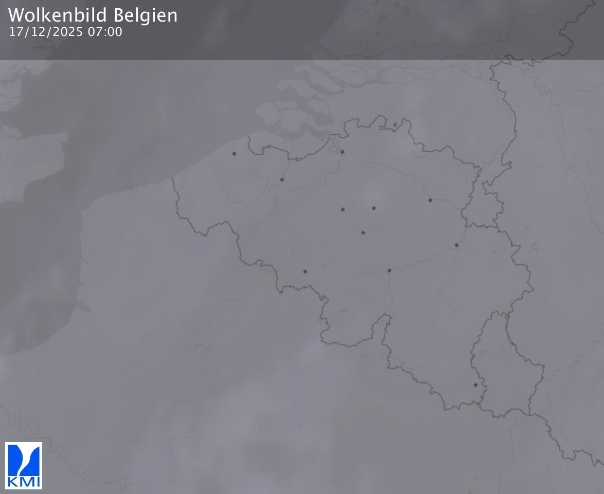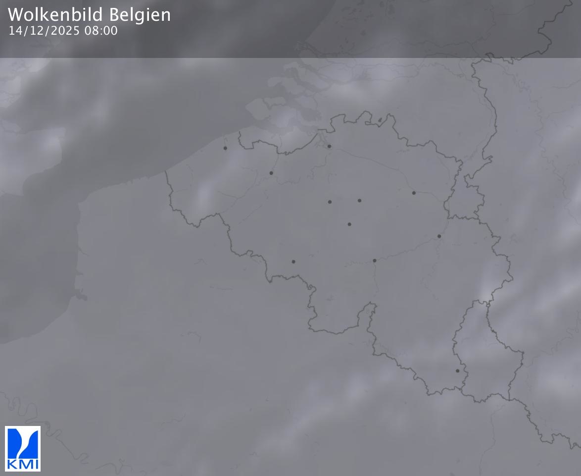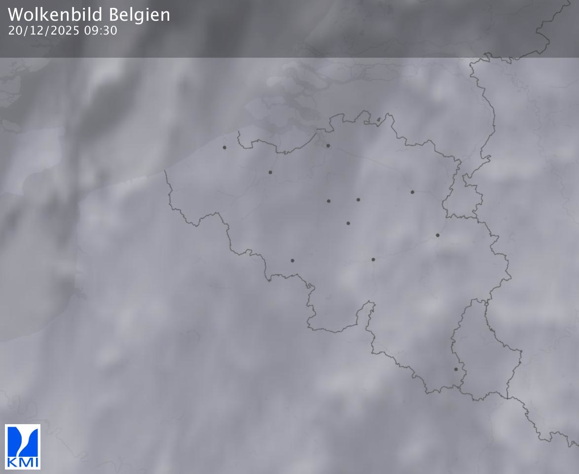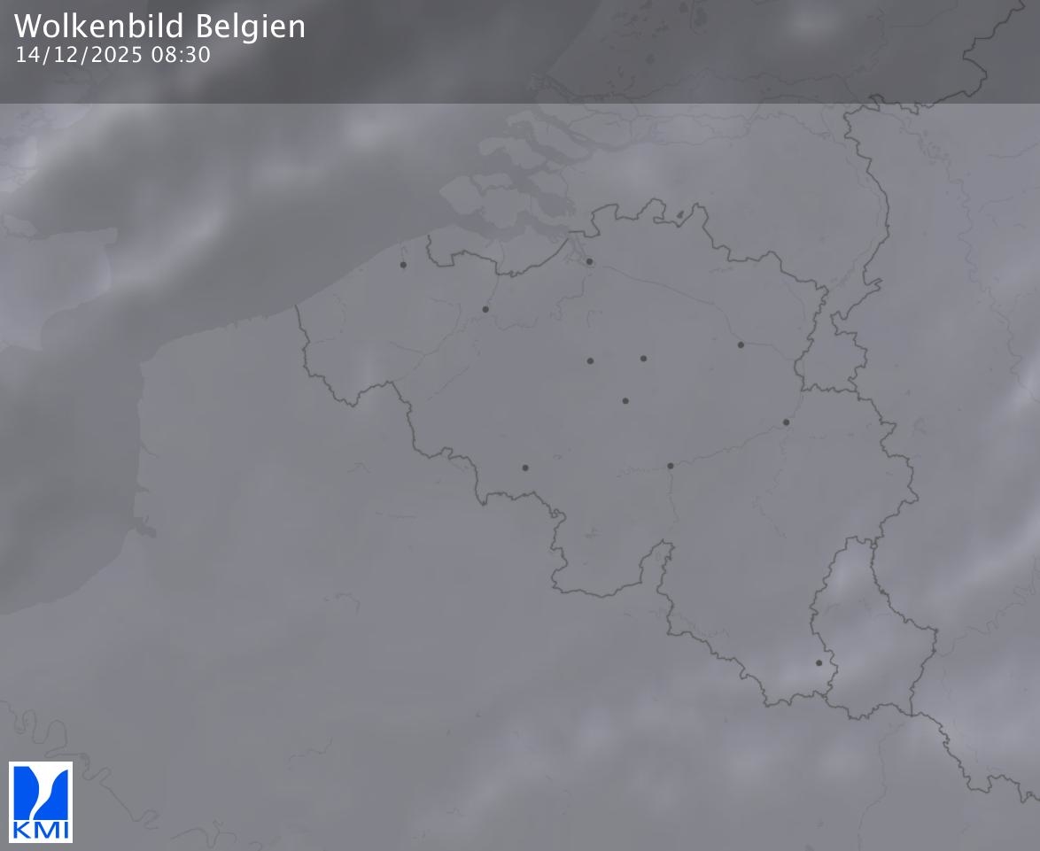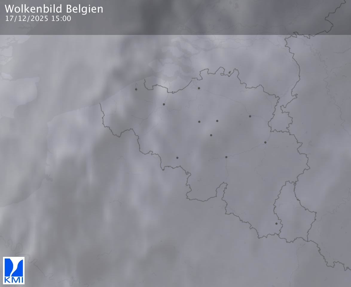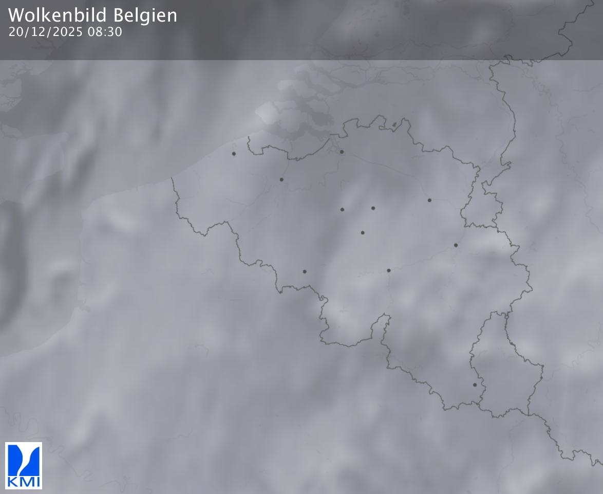 Das Wolkenbild Belgiens ist eine Kombination der sichtbaren und Infrarotkanäle des Satelliten.