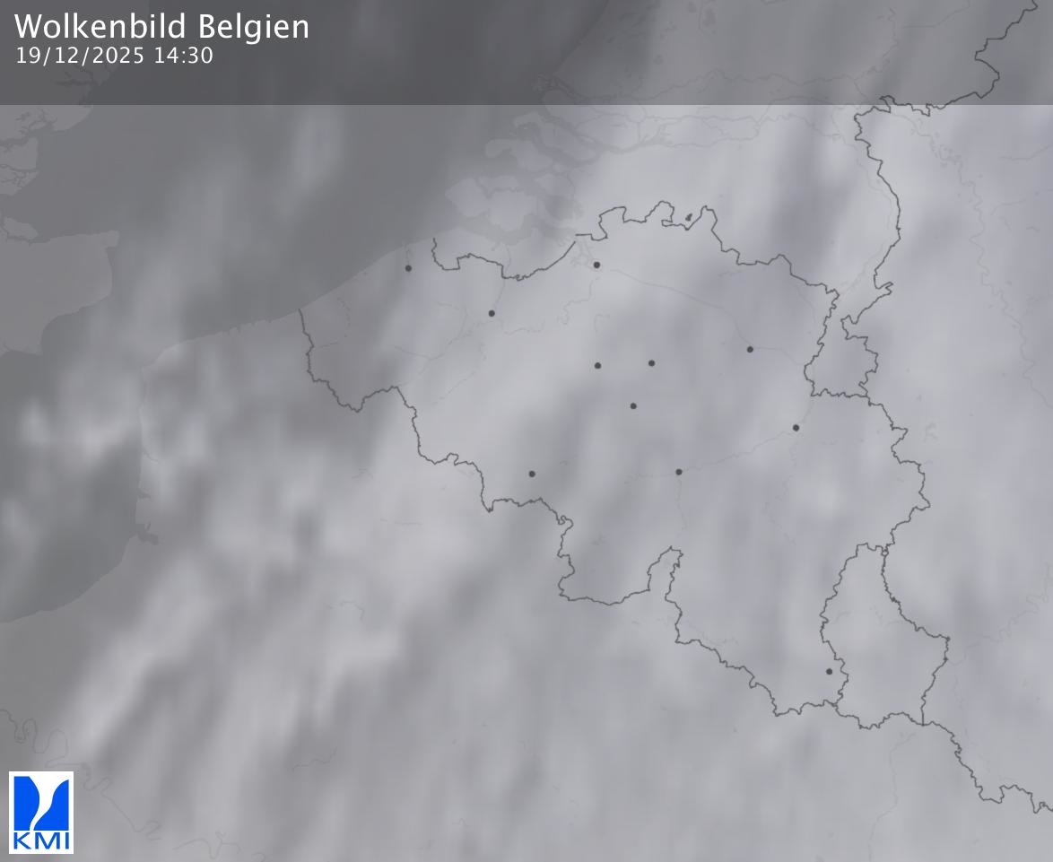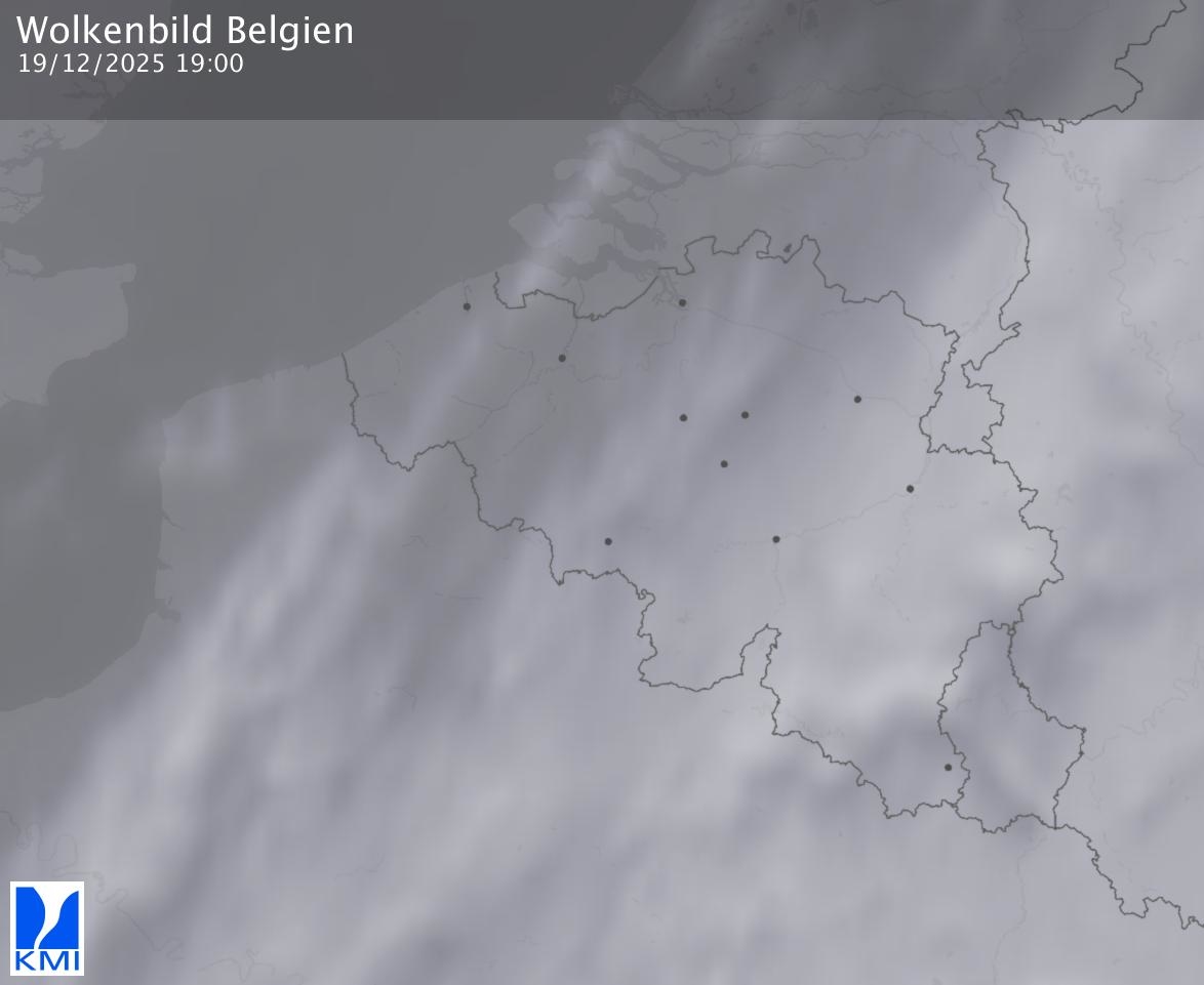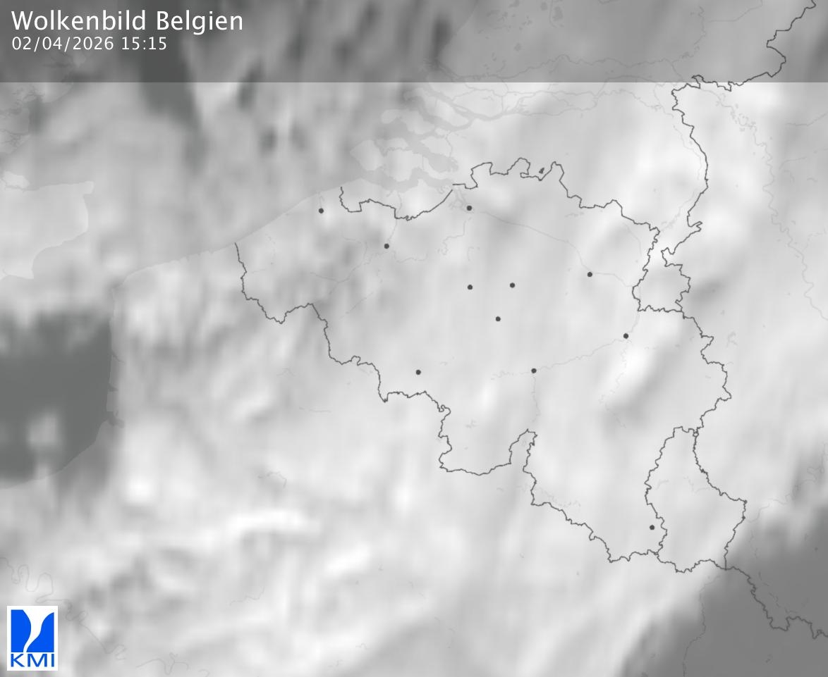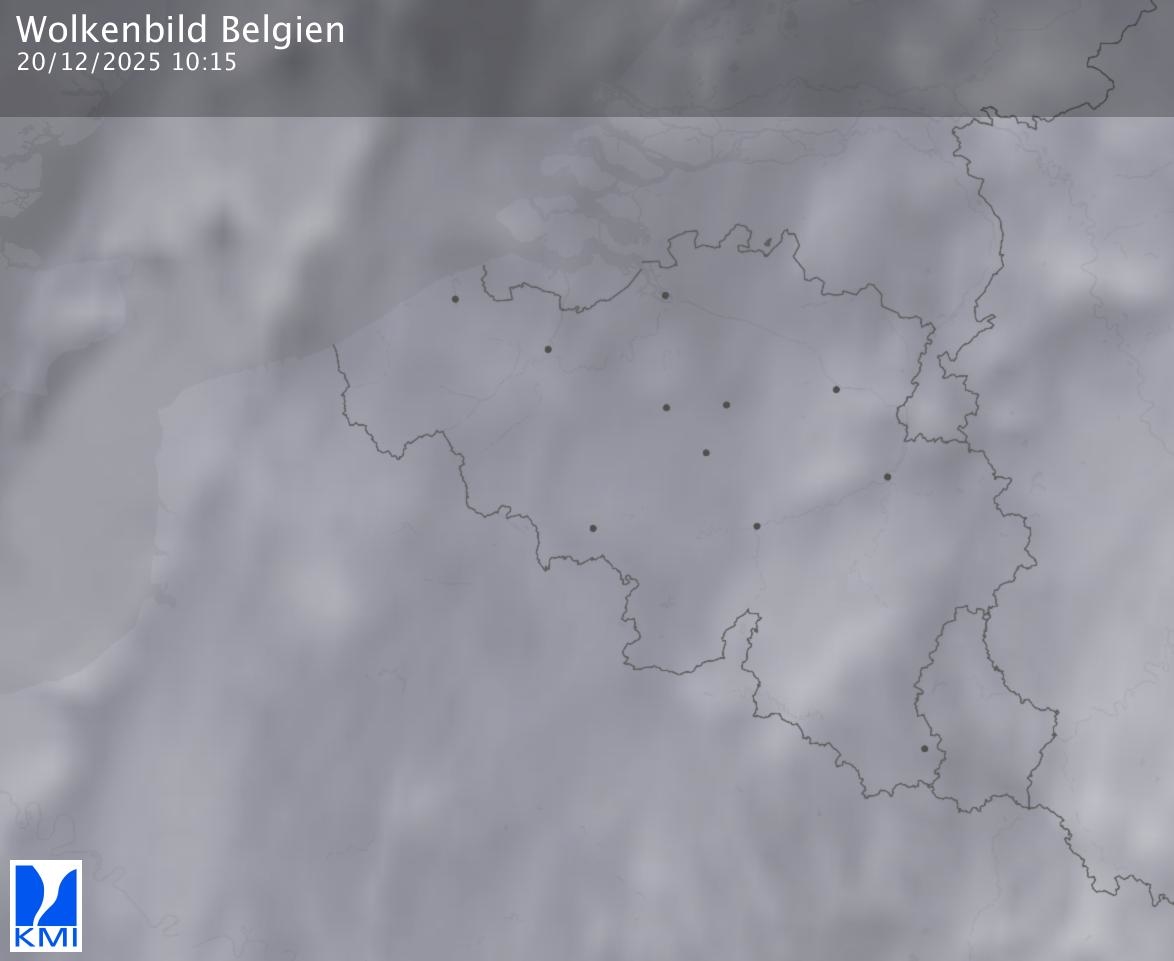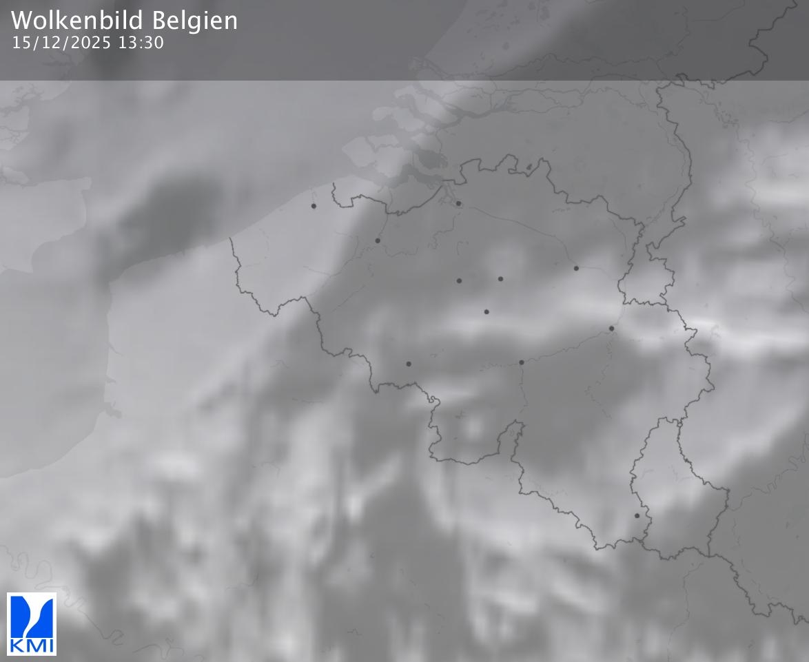 Das Wolkenbild Belgiens ist eine Kombination der sichtbaren und Infrarotkanäle des Satelliten.