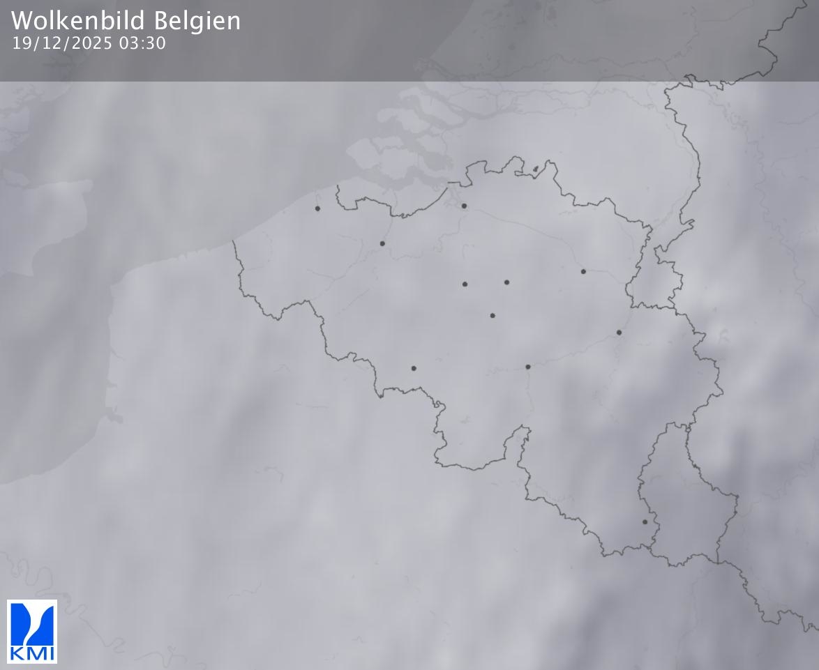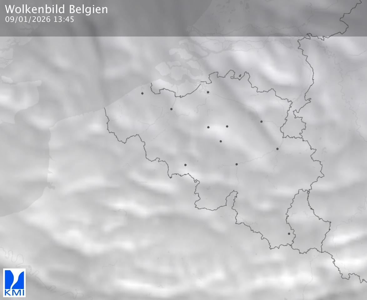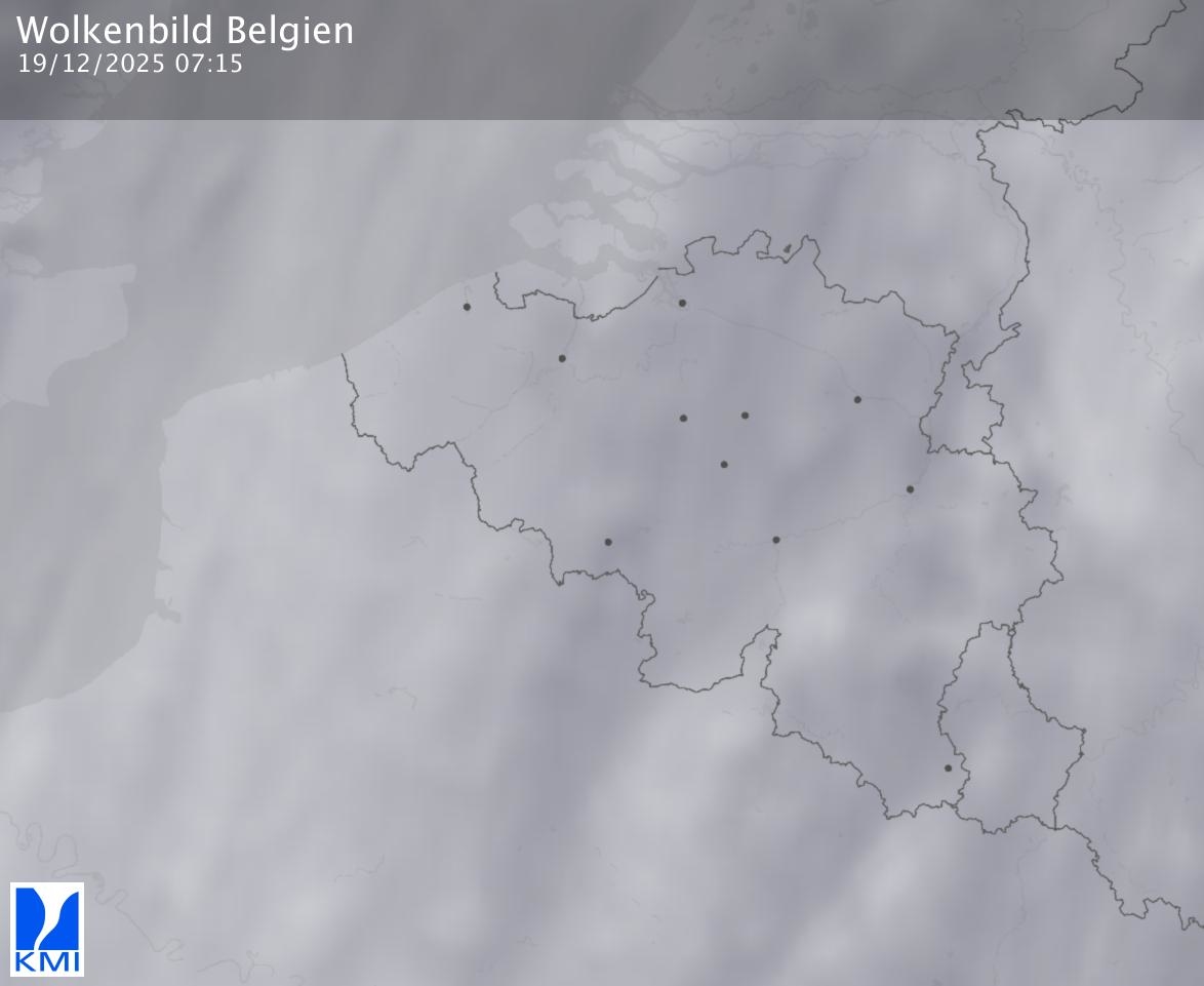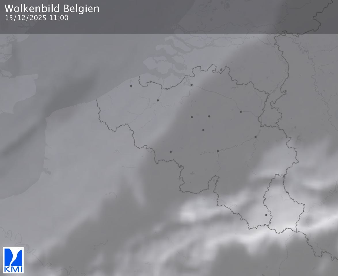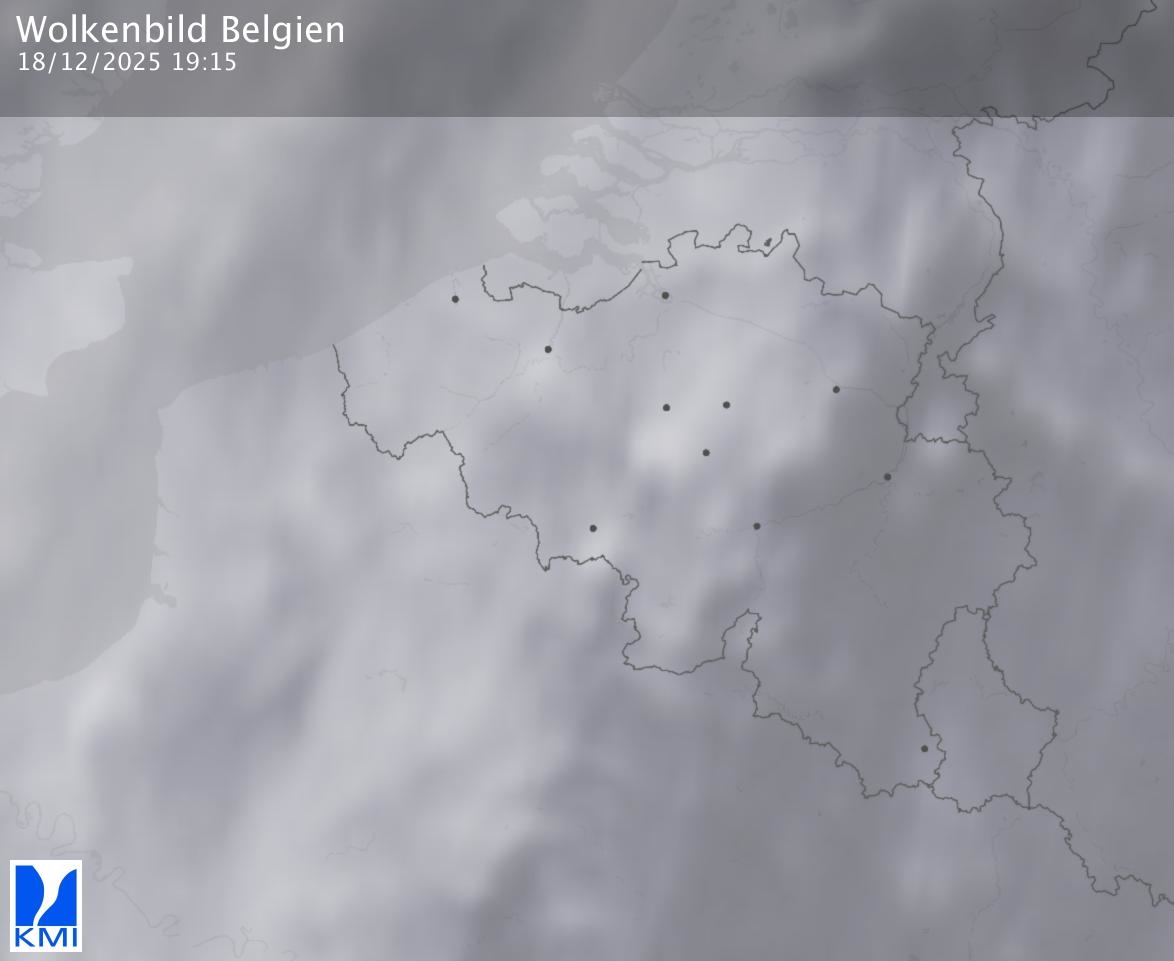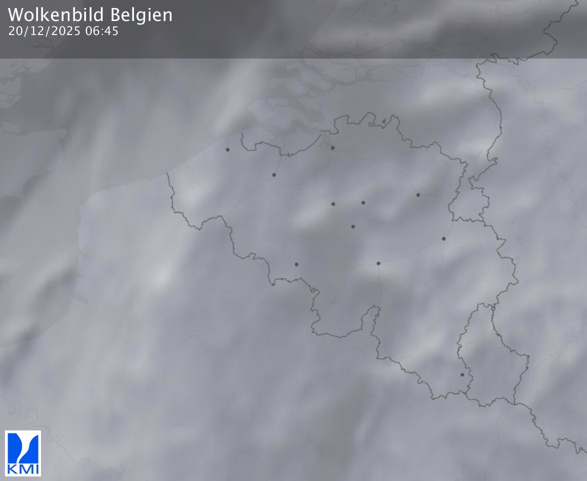 Das Wolkenbild Belgiens ist eine Kombination der sichtbaren und Infrarotkanäle des Satelliten.