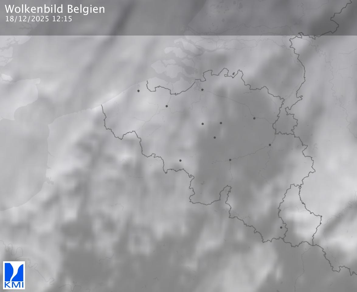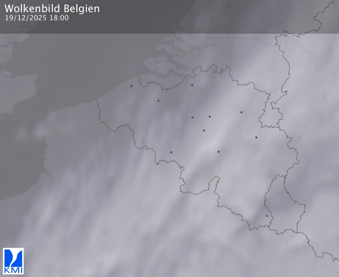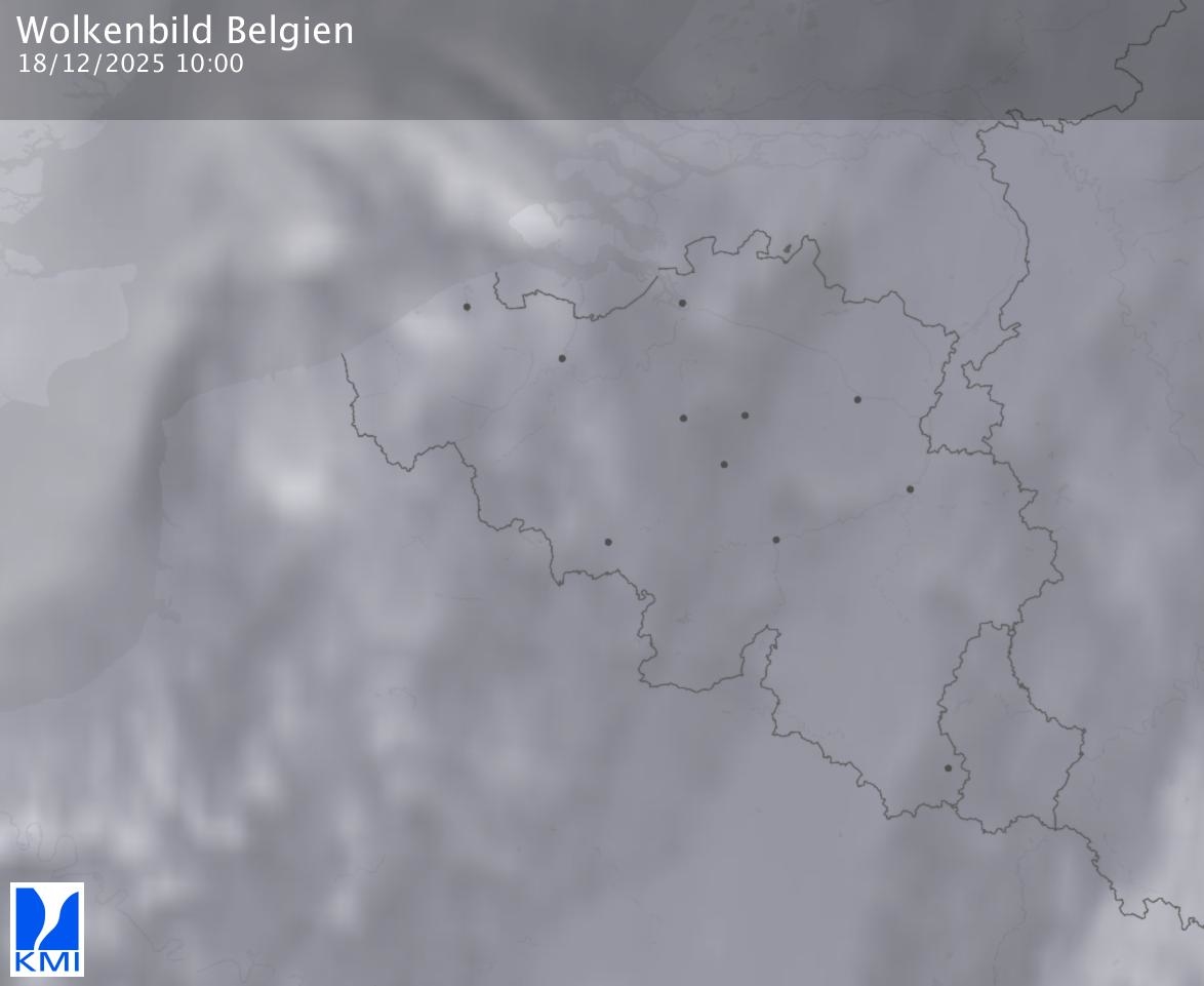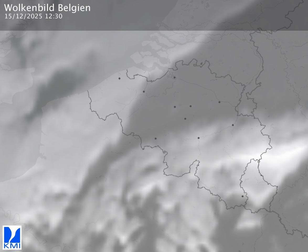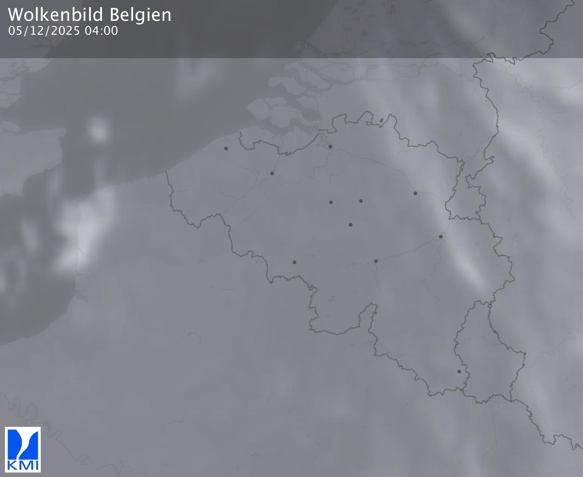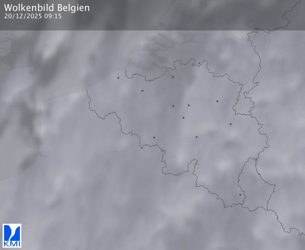 Das Wolkenbild Belgiens ist eine Kombination der sichtbaren und Infrarotkanäle des Satelliten.