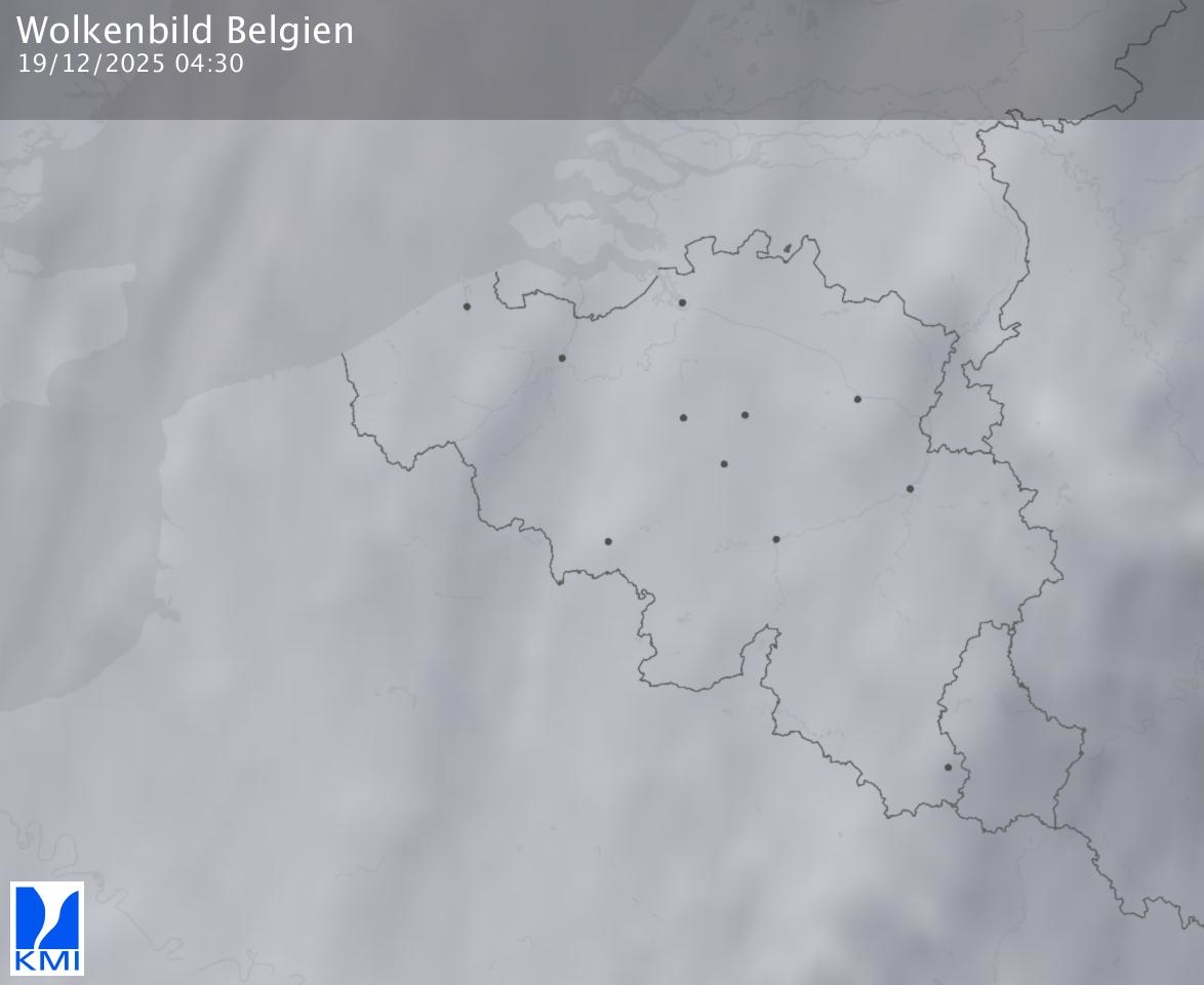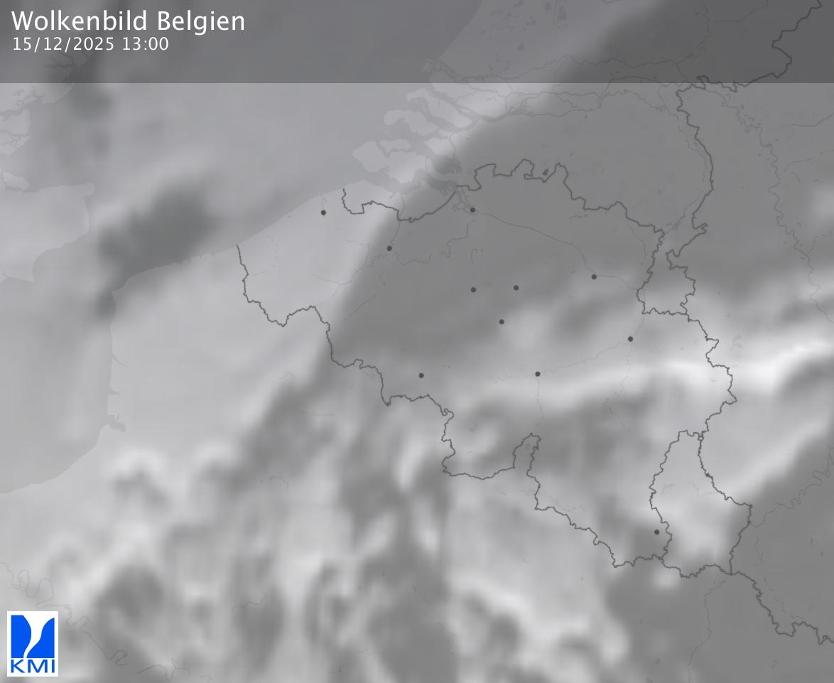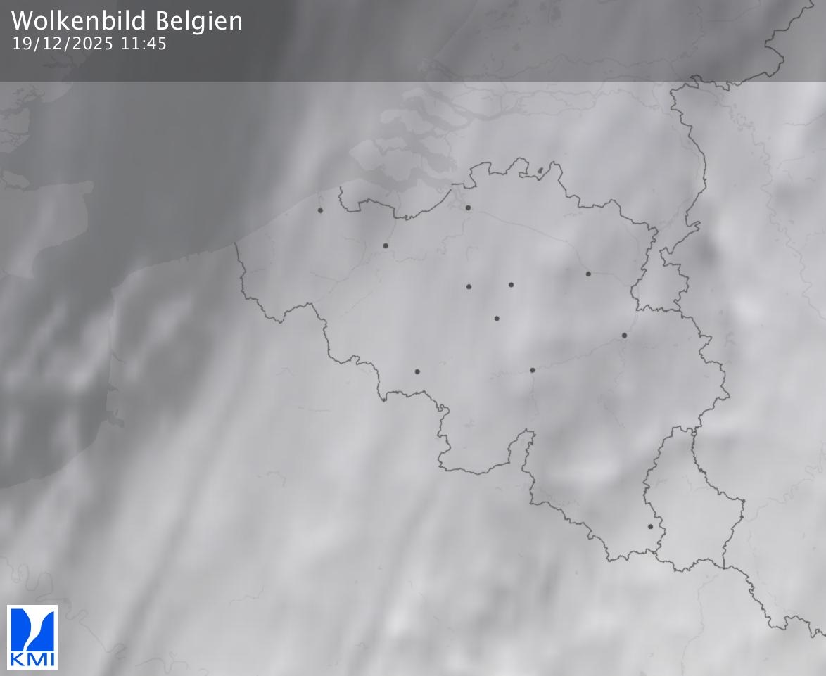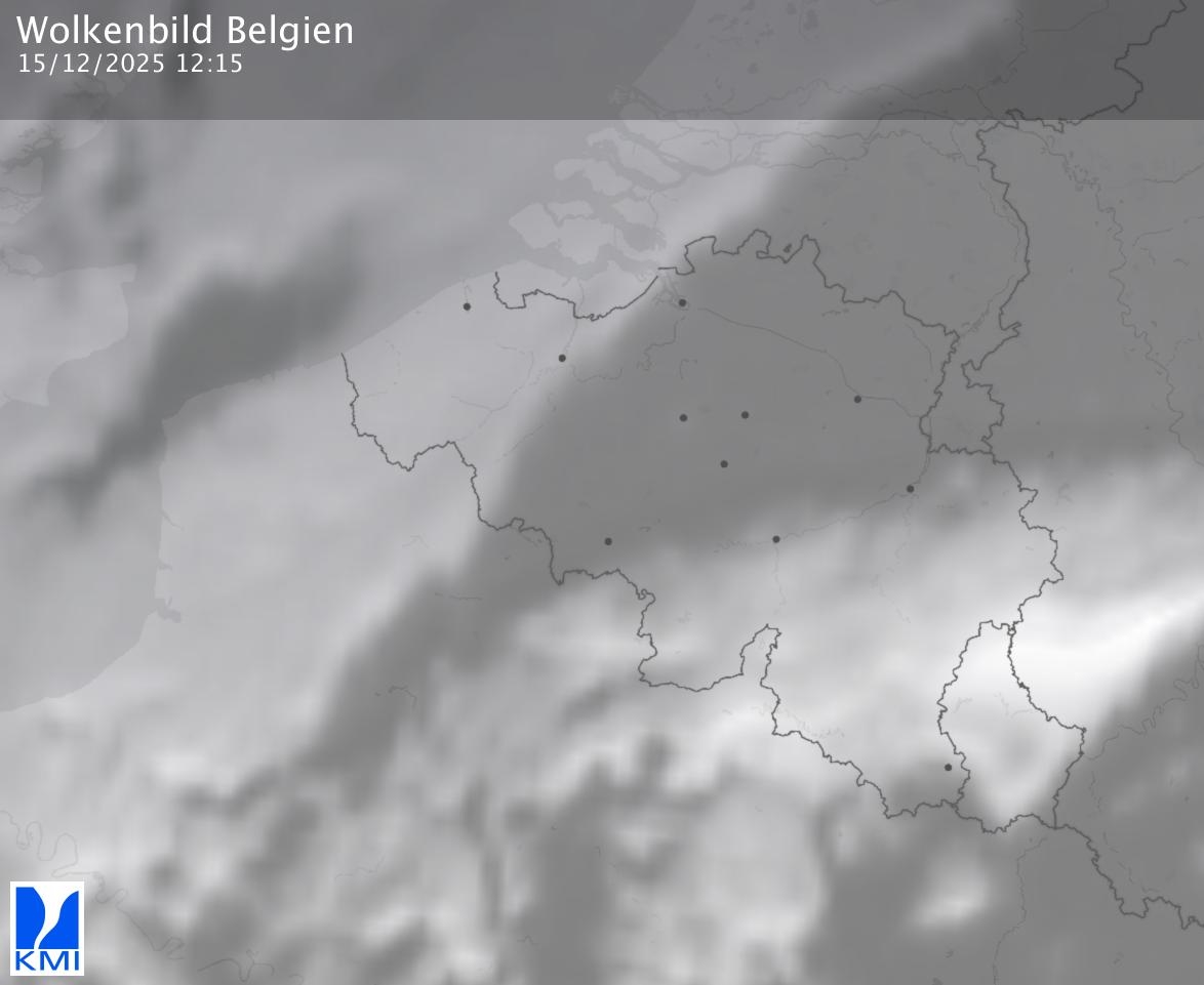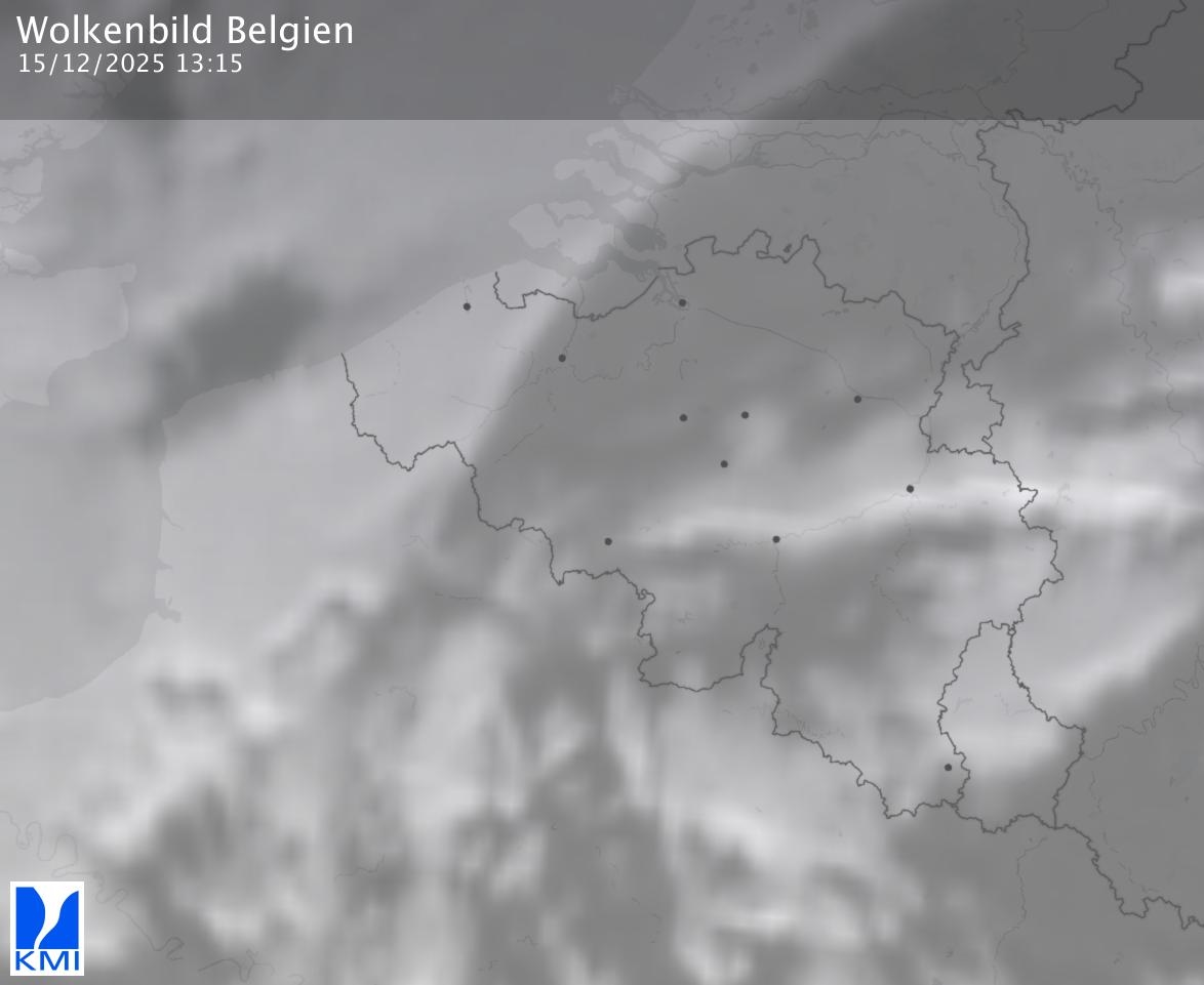 Das Wolkenbild Belgiens ist eine Kombination der sichtbaren und Infrarotkanäle des Satelliten.