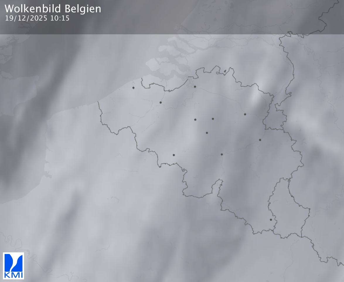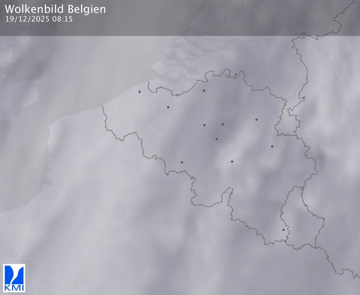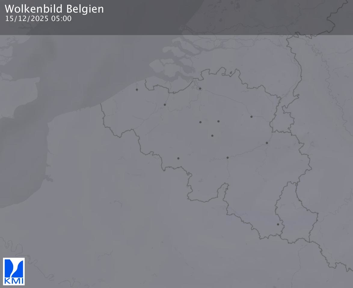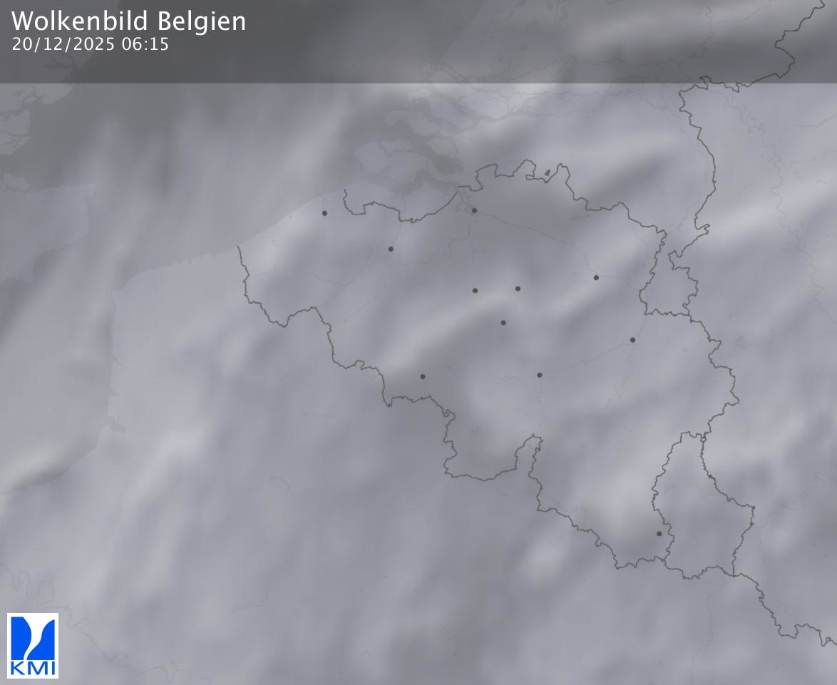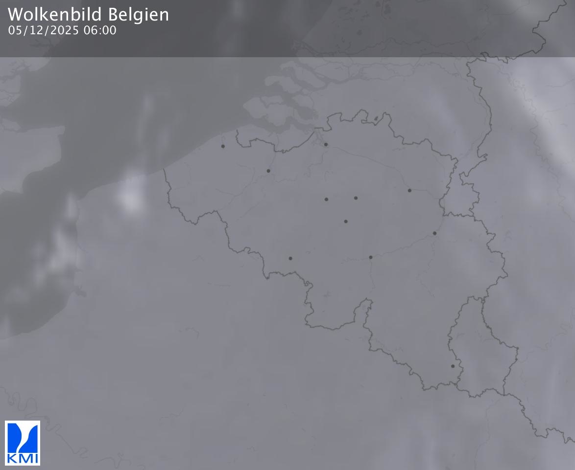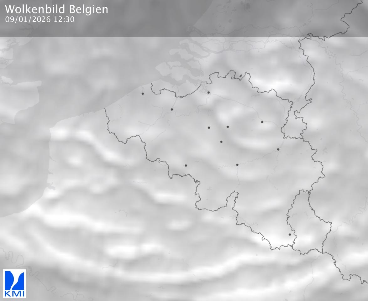 Das Wolkenbild Belgiens ist eine Kombination der sichtbaren und Infrarotkanäle des Satelliten.
