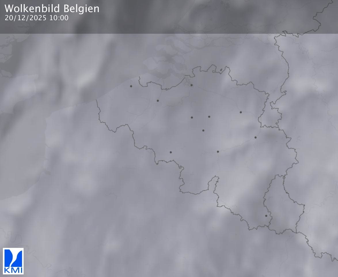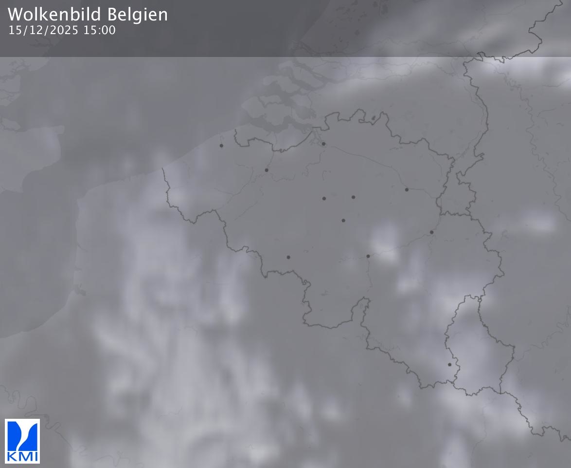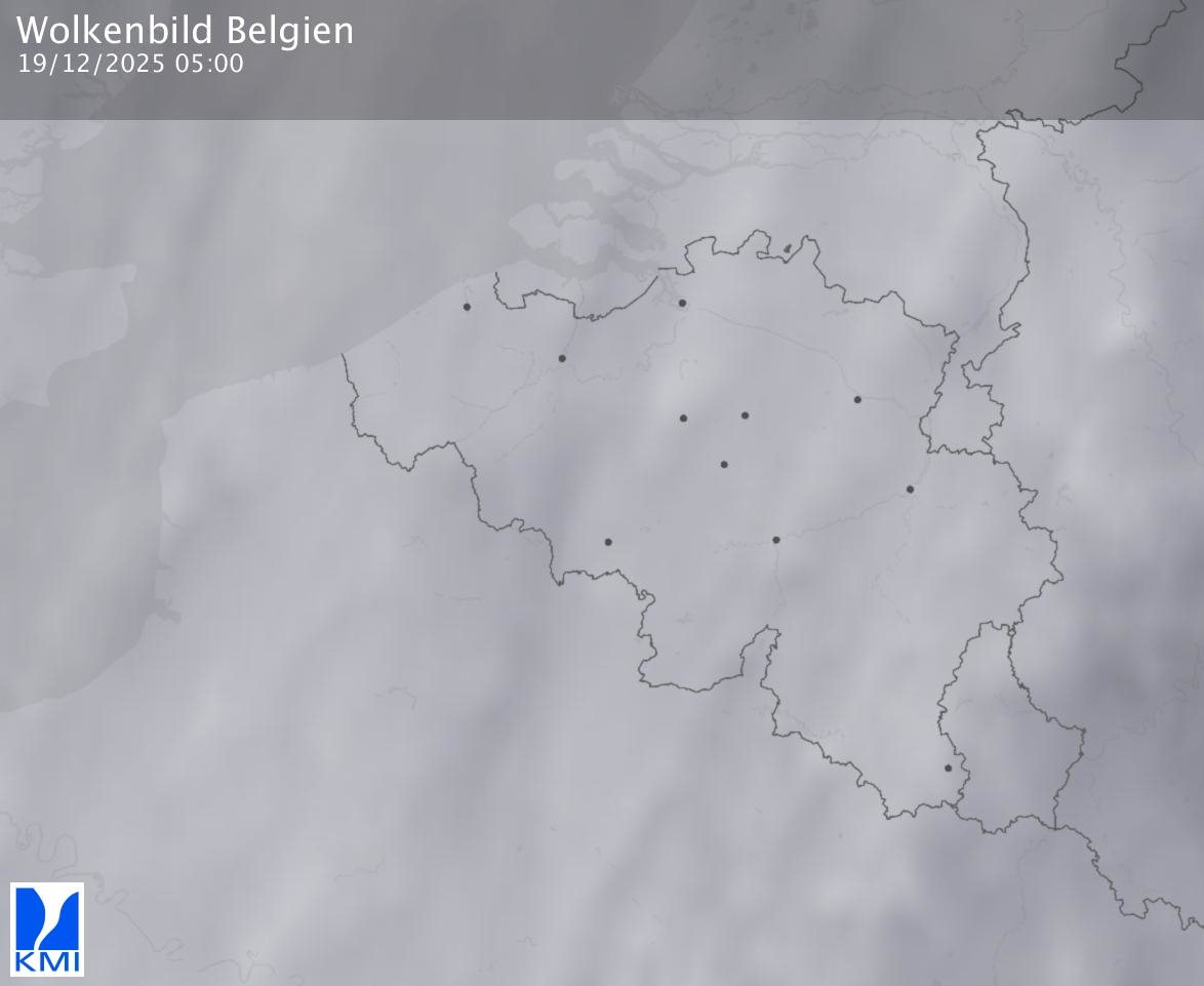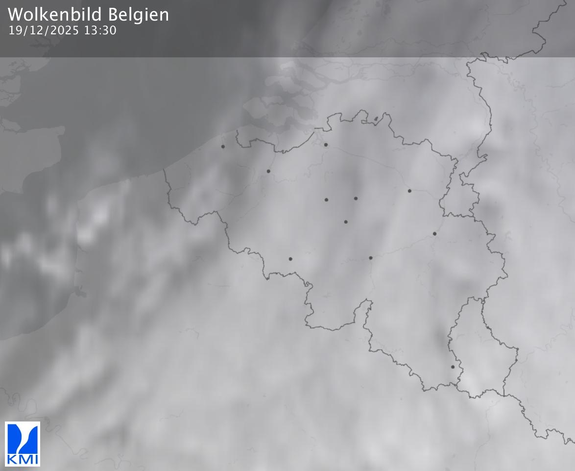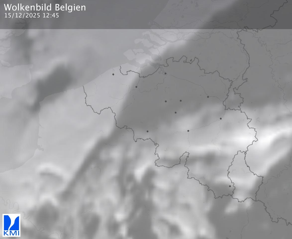 Das Wolkenbild Belgiens ist eine Kombination der sichtbaren und Infrarotkanäle des Satelliten.