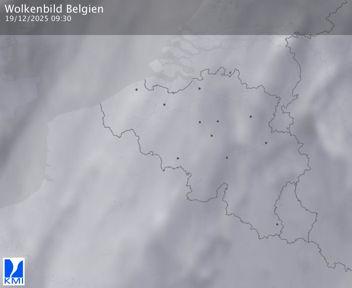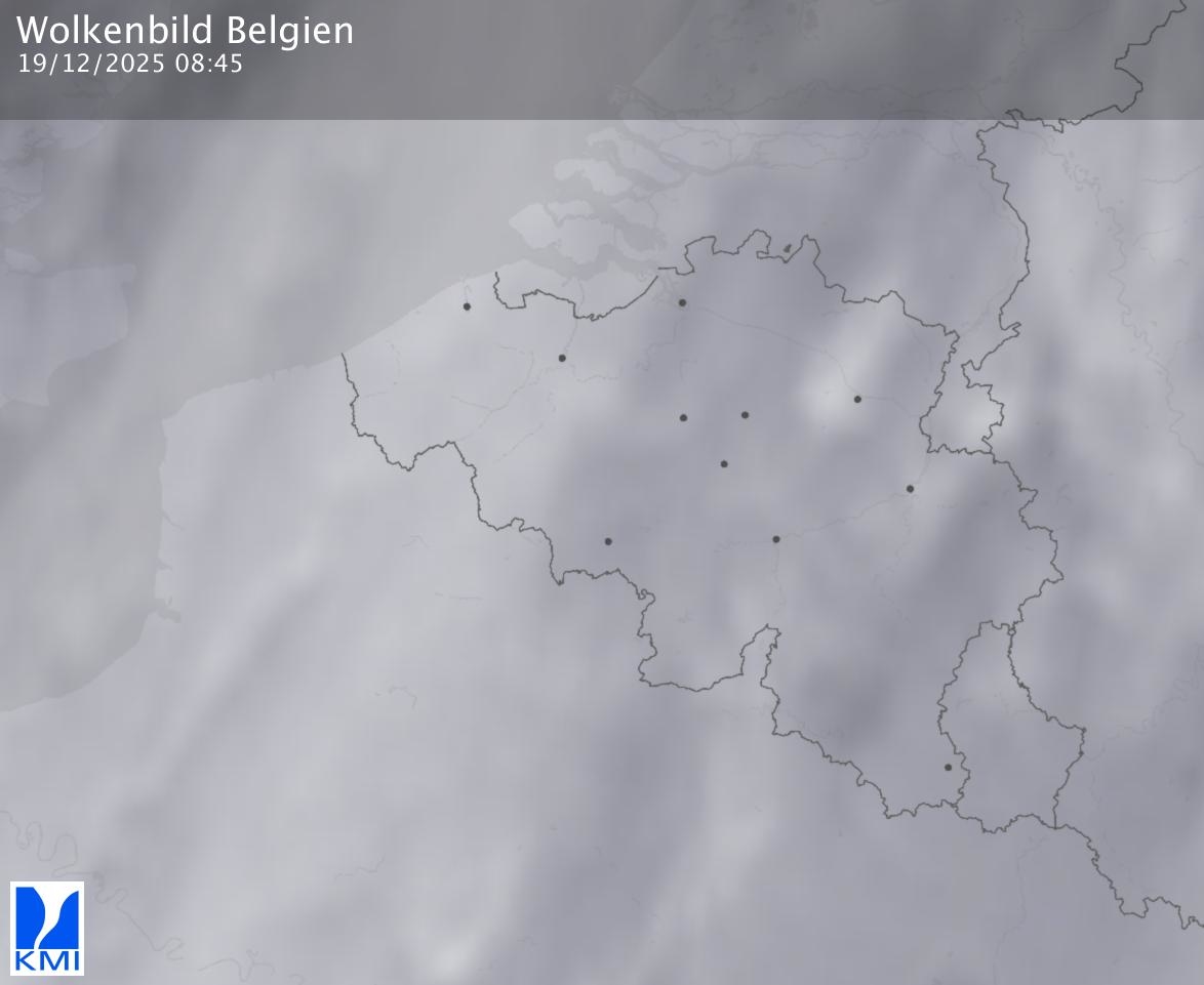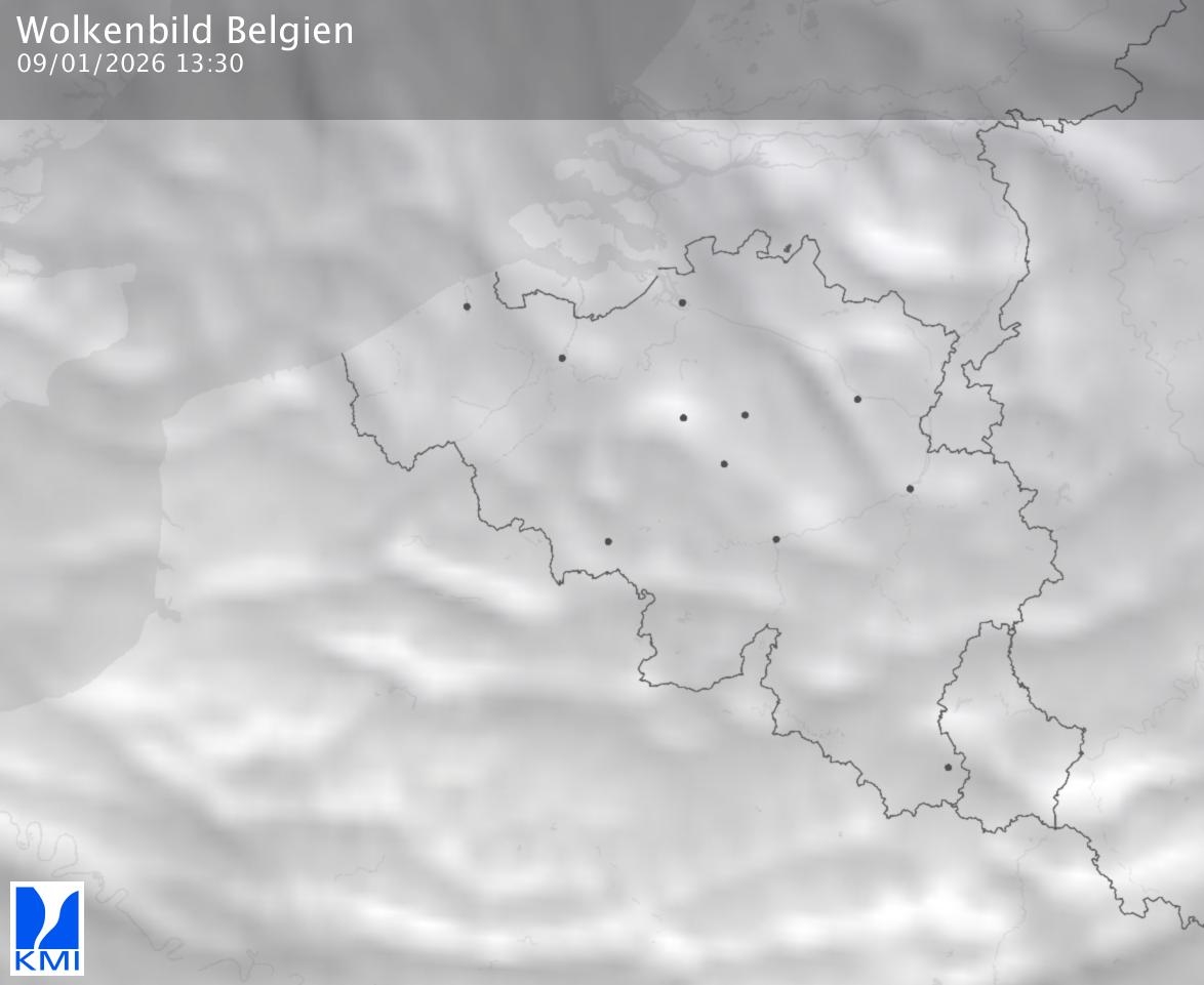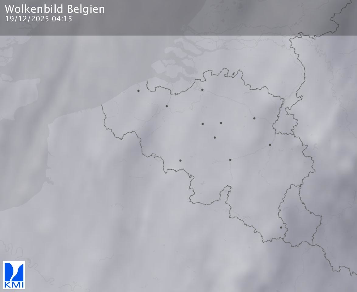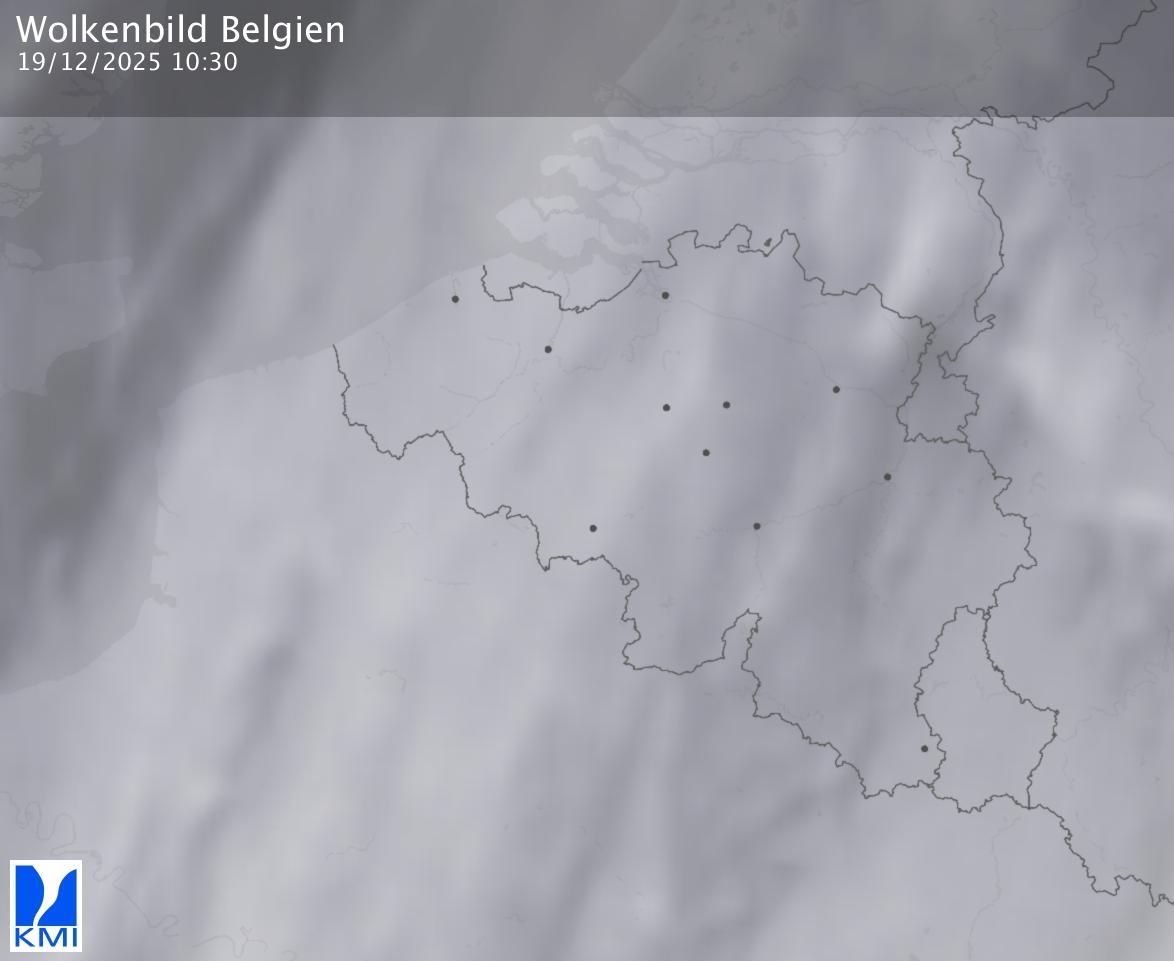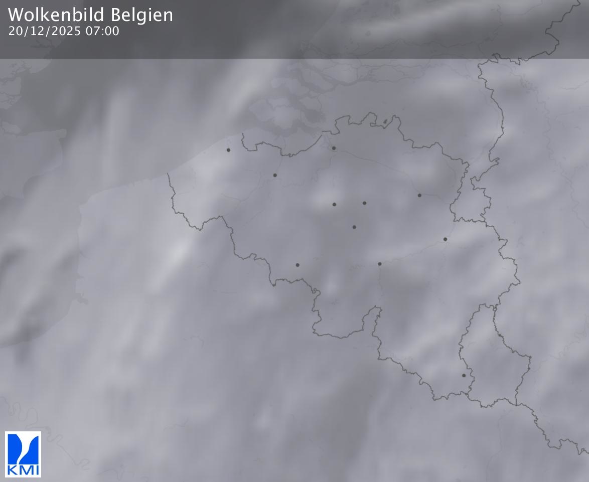 Das Wolkenbild Belgiens ist eine Kombination der sichtbaren und Infrarotkanäle des Satelliten.