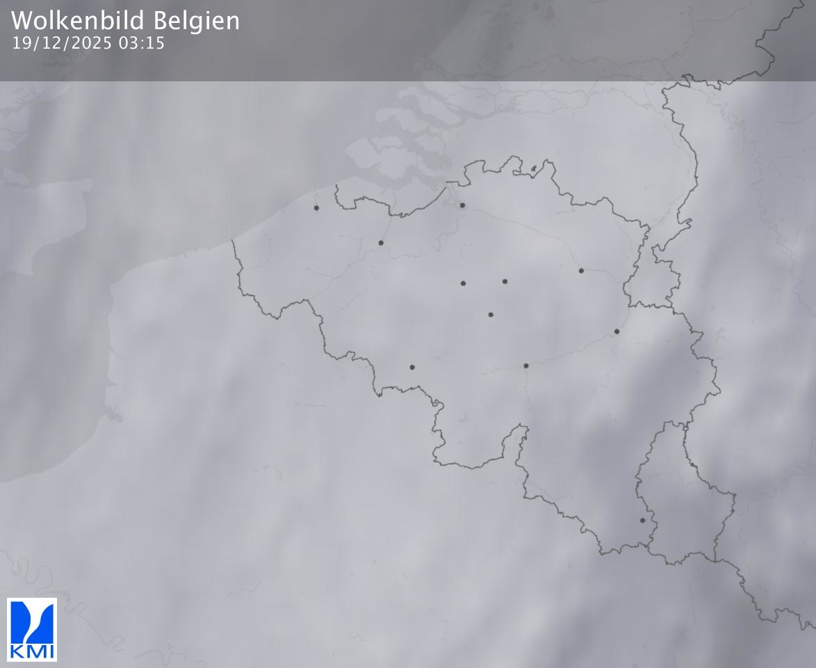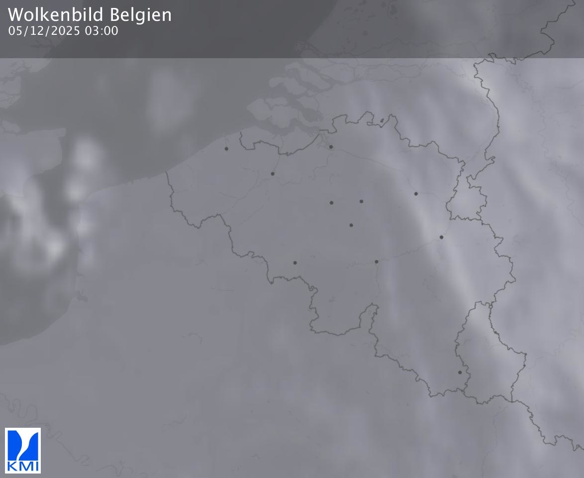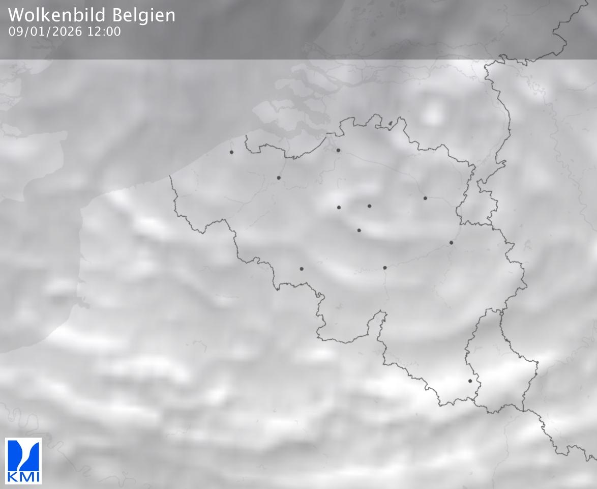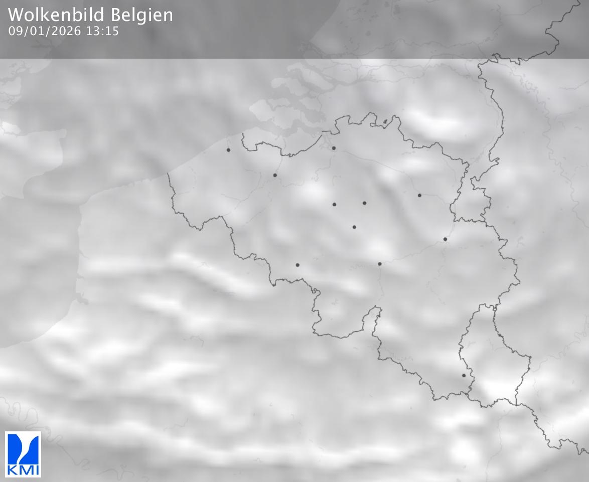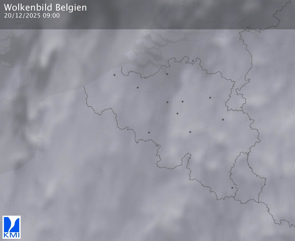 Das Wolkenbild Belgiens ist eine Kombination der sichtbaren und Infrarotkanäle des Satelliten.