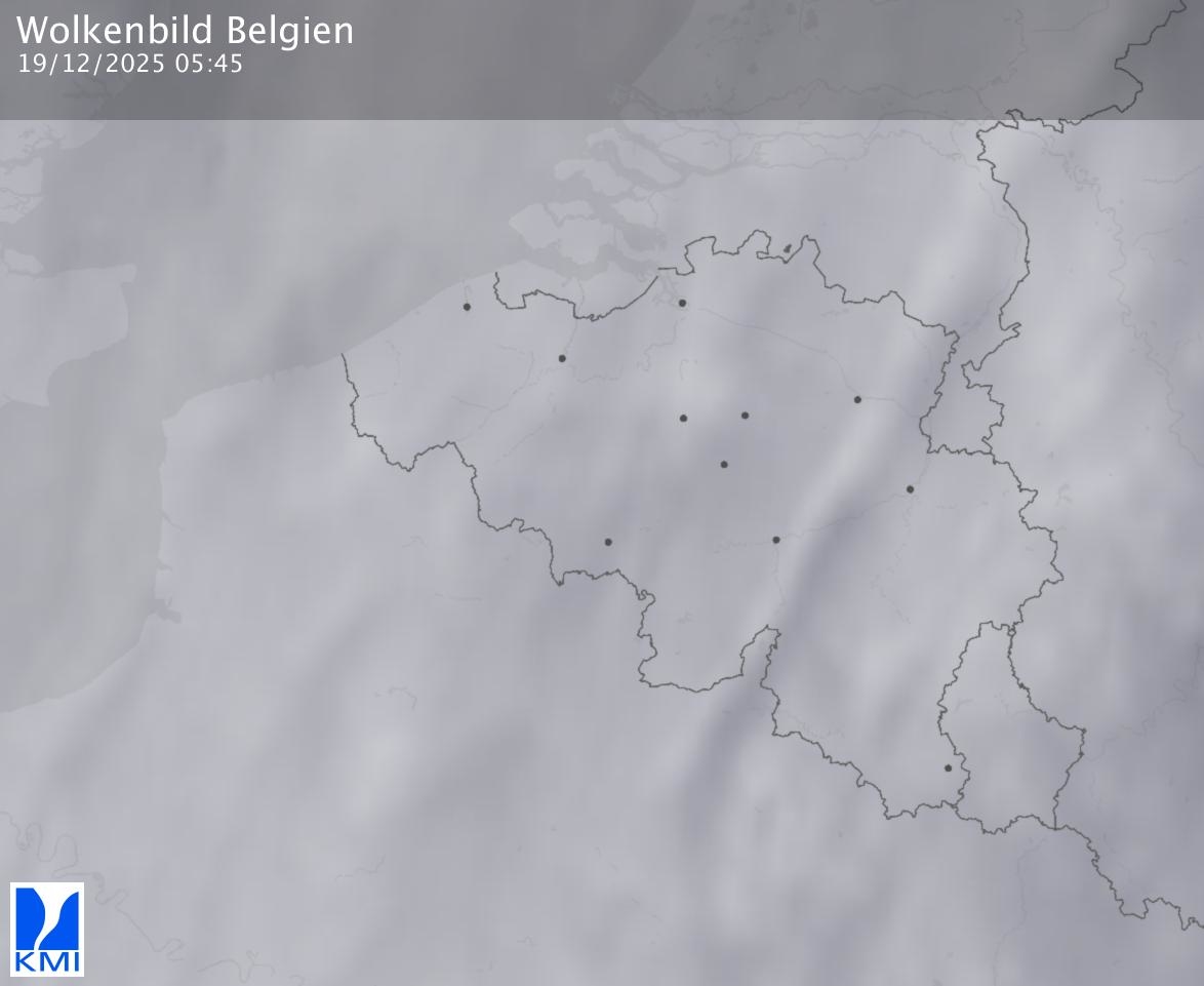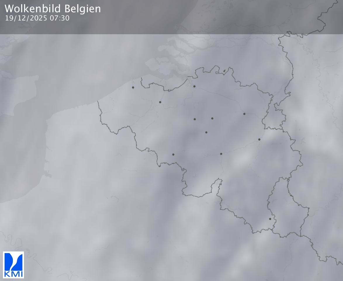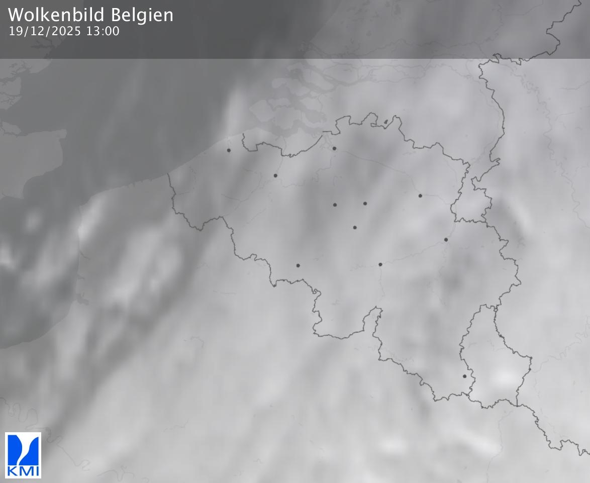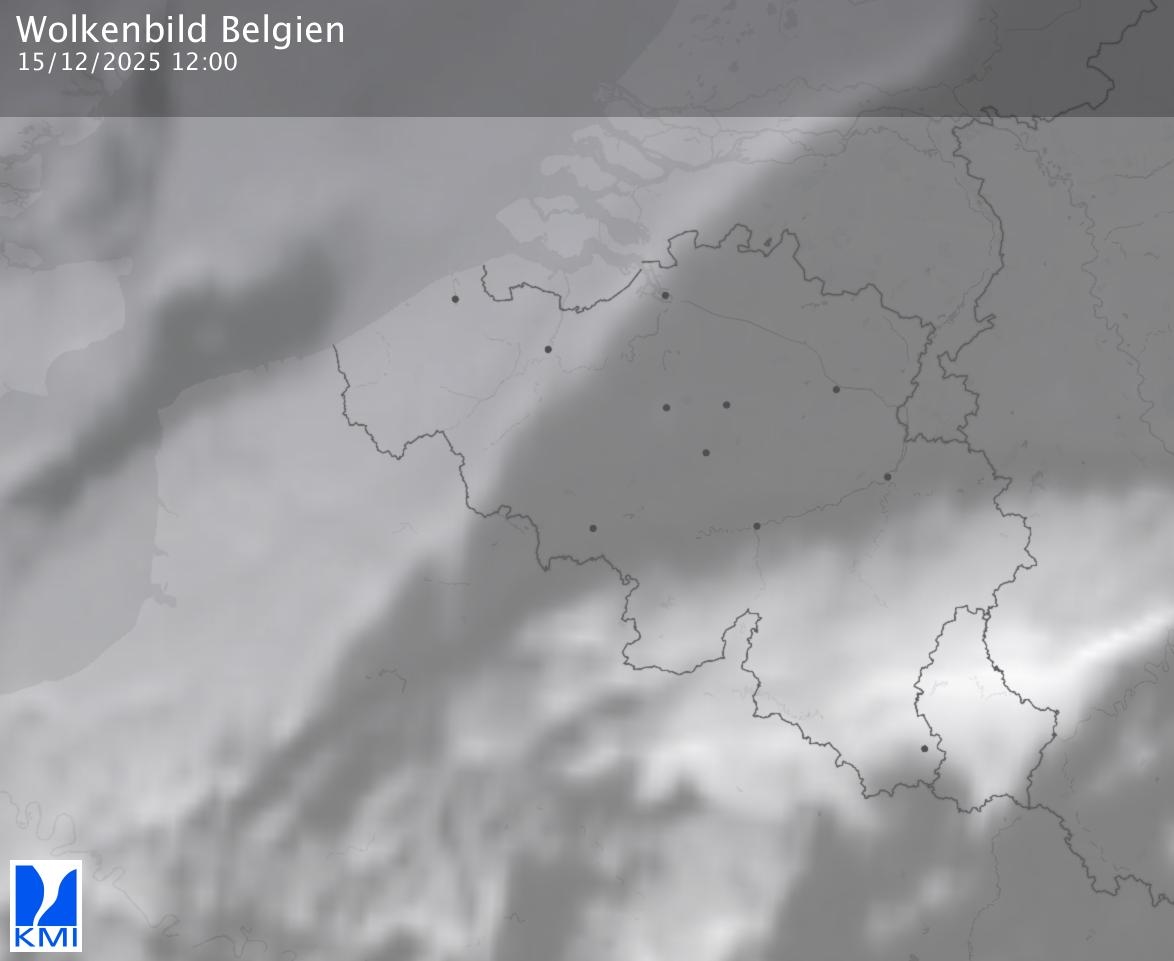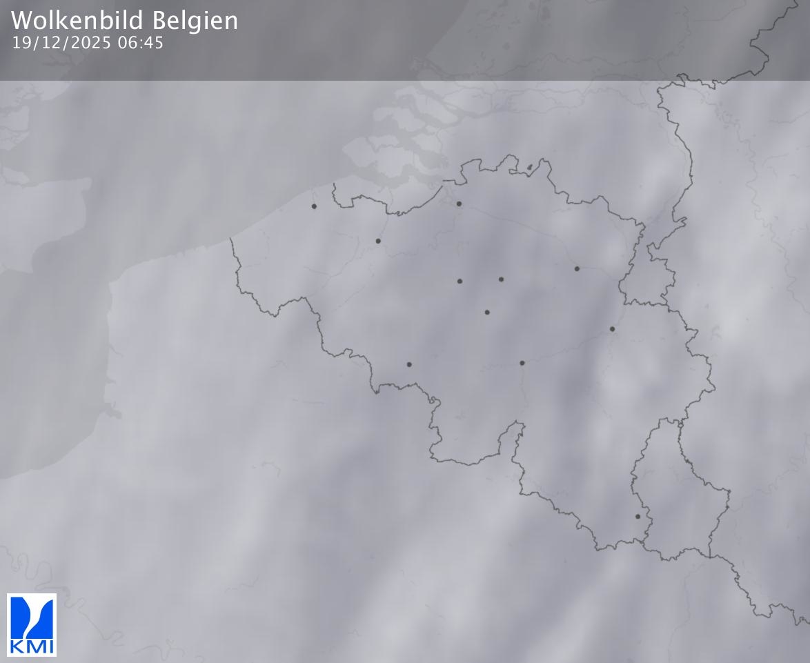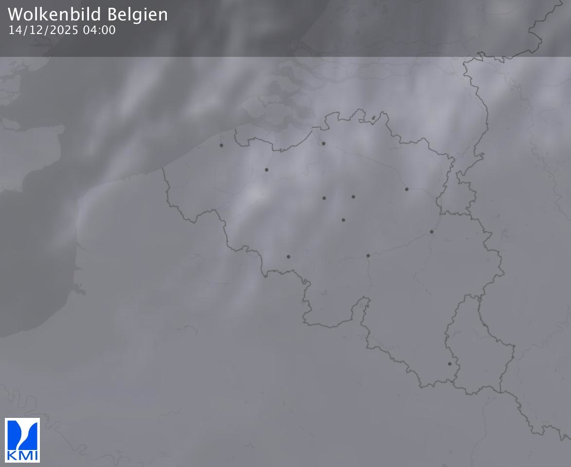 Das Wolkenbild Belgiens ist eine Kombination der sichtbaren und Infrarotkanäle des Satelliten.