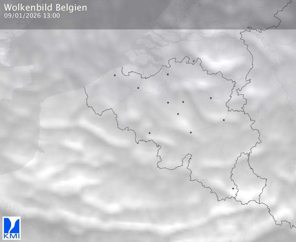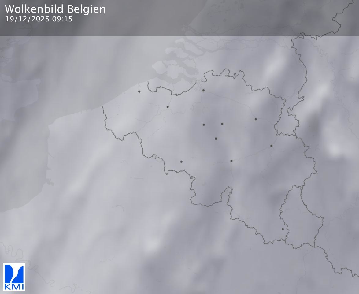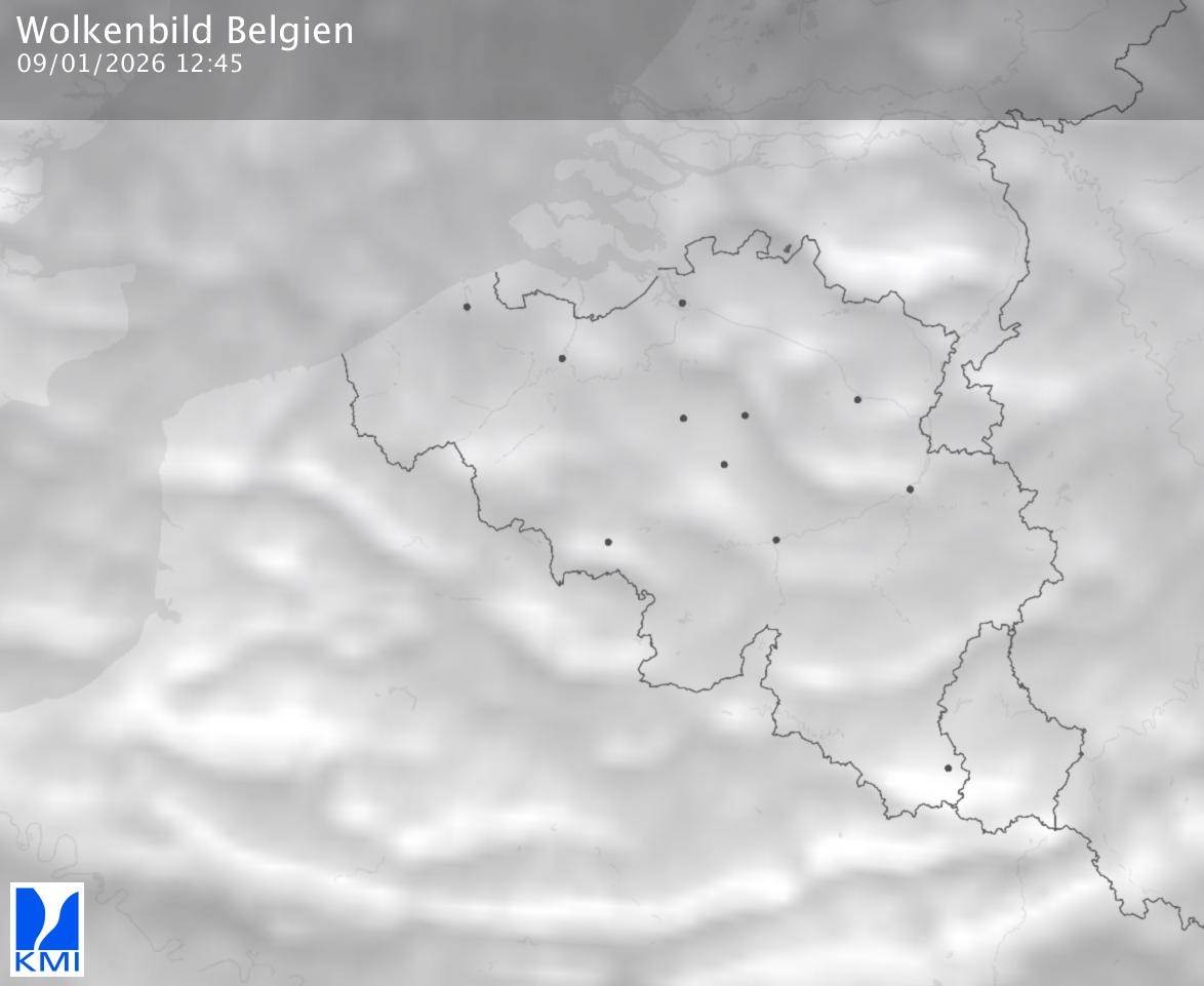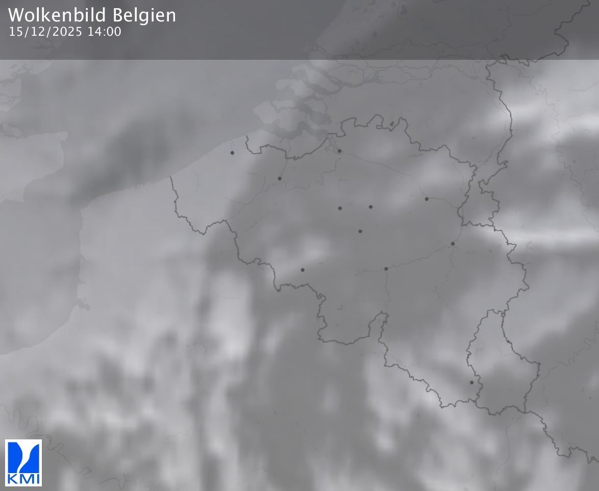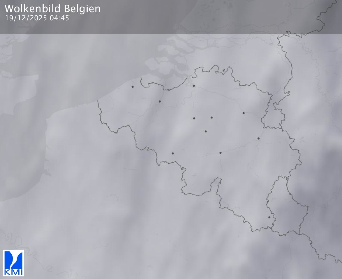 Das Wolkenbild Belgiens ist eine Kombination der sichtbaren und Infrarotkanäle des Satelliten.