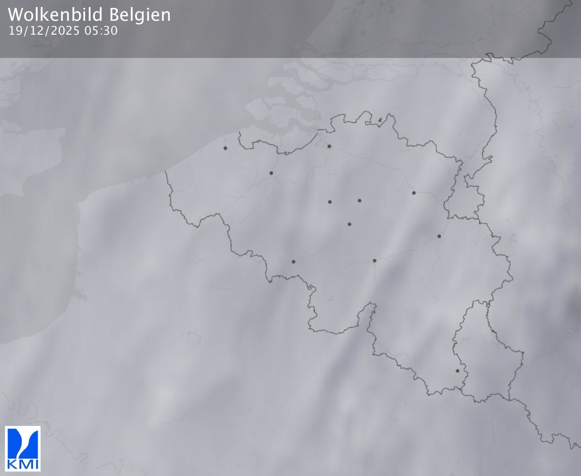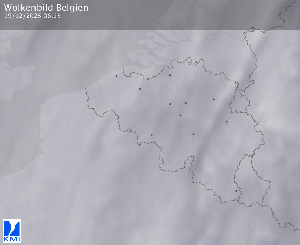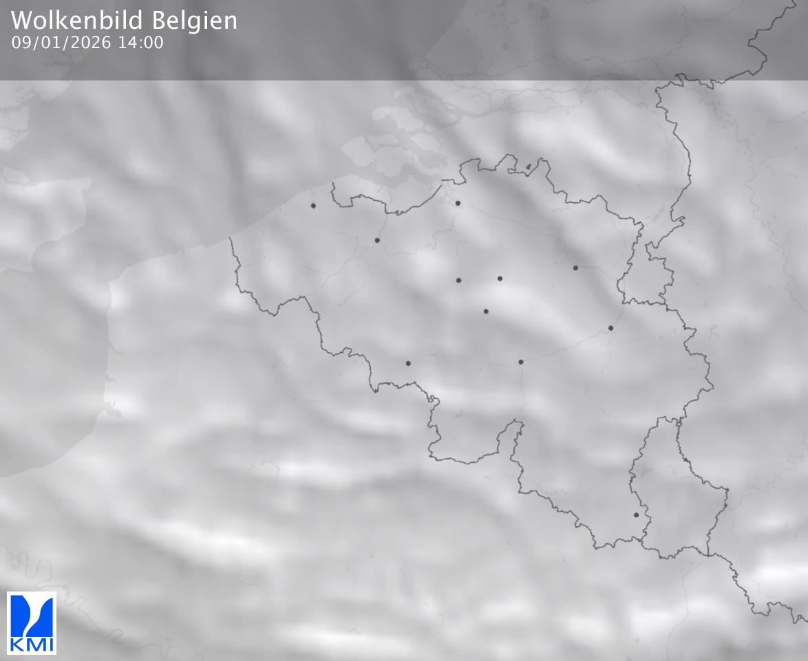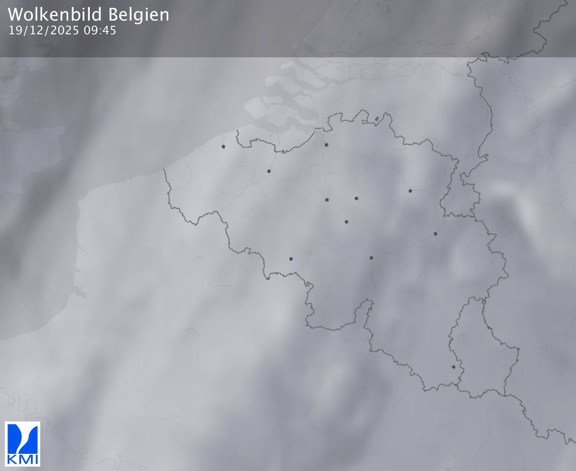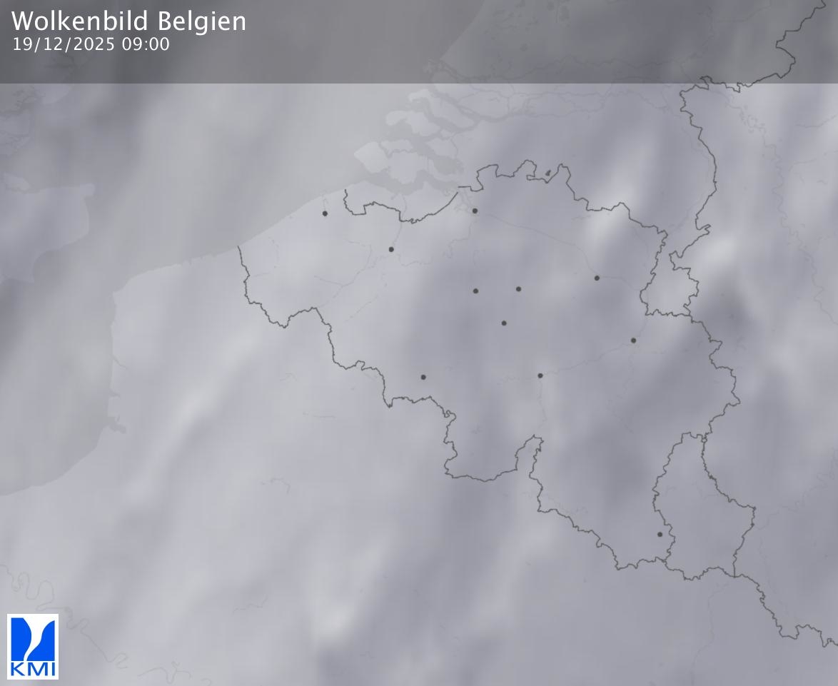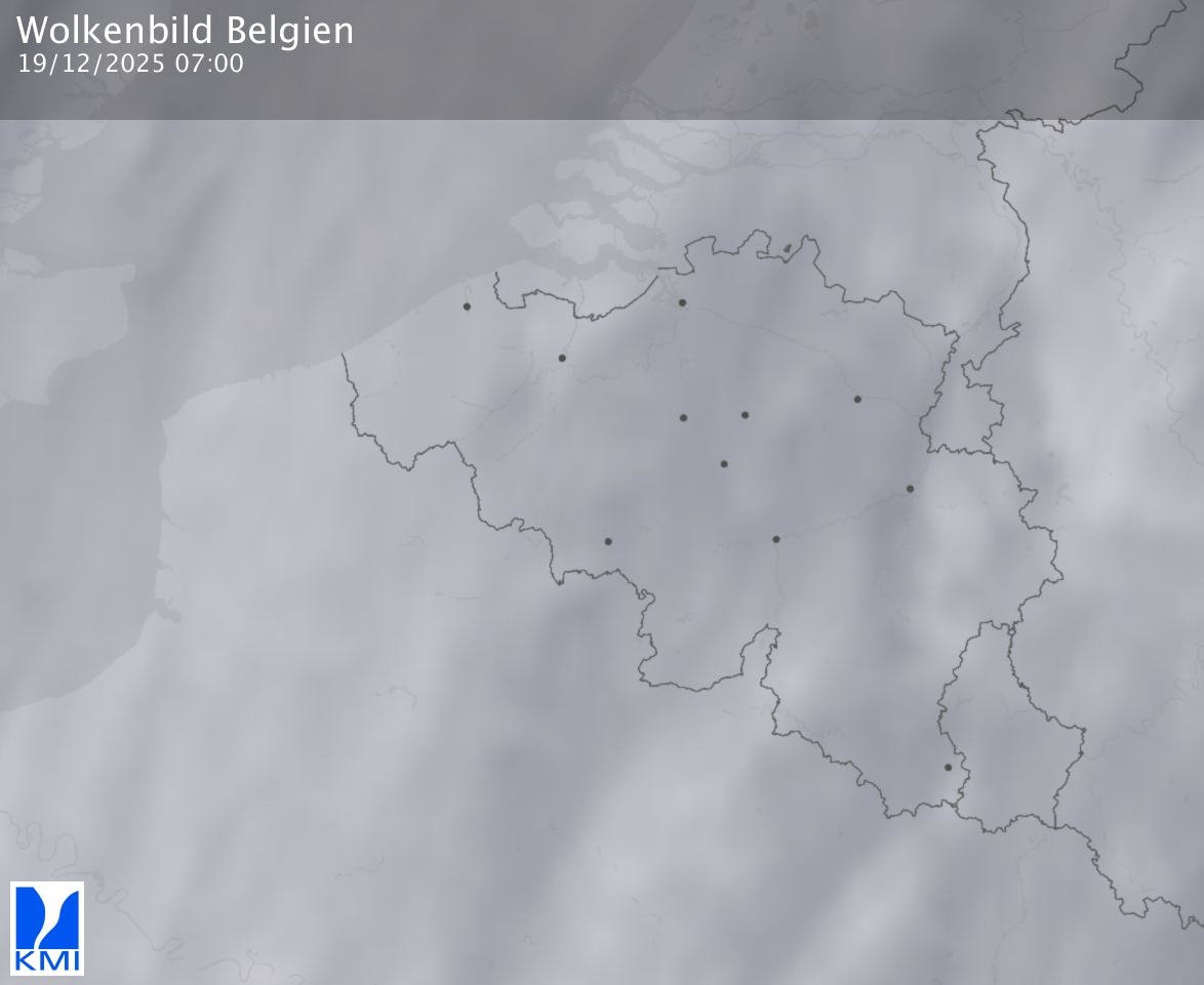 Das Wolkenbild Belgiens ist eine Kombination der sichtbaren und Infrarotkanäle des Satelliten.