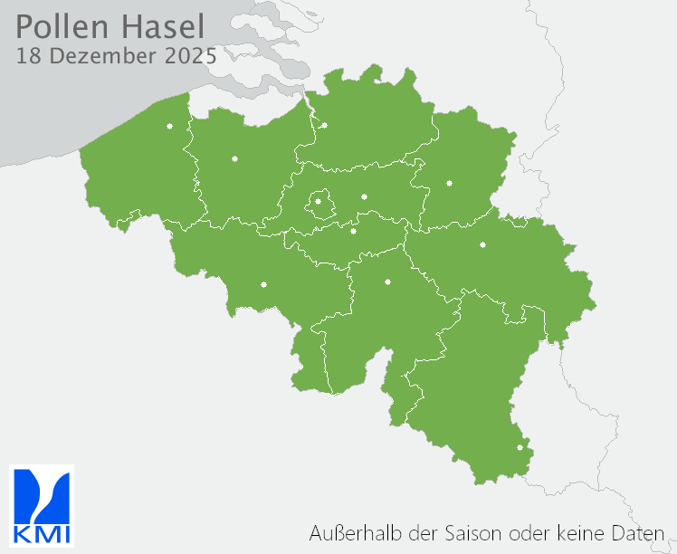 Die Informationen über zu erwartende Pollenallergien und Heuschnupfen basieren auf dem SILAM-Pollentransportmodell. Das zu Grunde liegende Modell stammt vom Finnischen Meteorologischen Institut. In Zusammenarbeit mit Sciensano hat das KMI dieses Modell speziell für Belgien angepasst. Die Abteilung für Mykologie und Aerobiologie von Sciensano verfügt über jahrzehntelange Pollenbeobachtungen in Belgien und unterstützt das Pollenmodell und die Pollenallergie-Risikobewertung. Wenn Sie mehr wissen möchten oder Informationen über eine andere Pollenart wünschen, besuchen Sie bitte die Website von Sciensano www.airallergy.be.