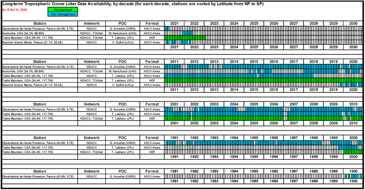 Scheme showing the status of the homogenization of long-term tropospheric ozone lidar data records.