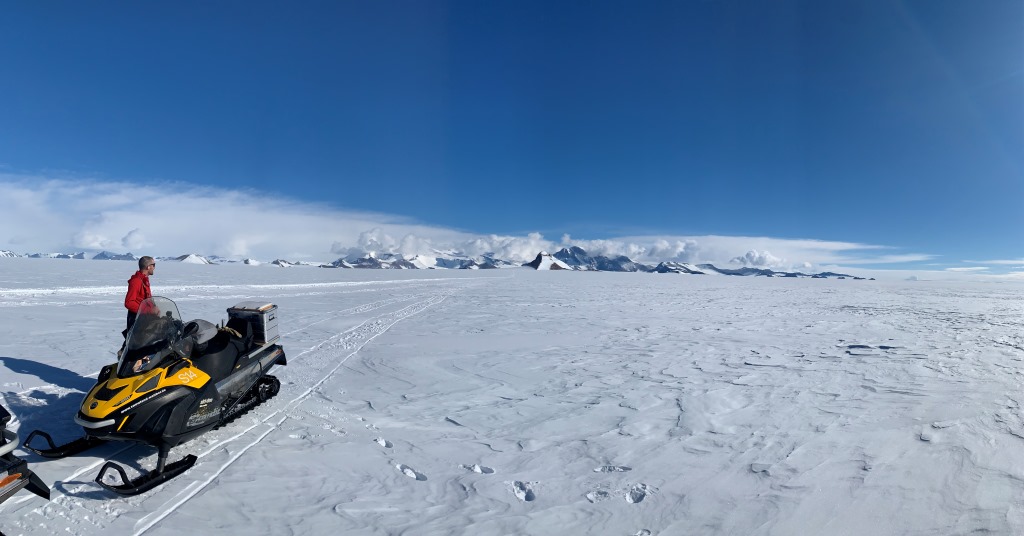 On Friday 17th of December, the team of Frank Pattyn left for their mission on measuring ice-rise dynamics and Surface Mass Balance (SMB) in #Antarctica with @MarieCavitte, @IzeboudMaaike and Sarah Wauthy. It is a trip of about 165 km, heading to the north (coast side). During this journey, Sarah was probing every 5 km in order to obtain a transect until the coast. Preben and Timothy were assisting her, driving the car.