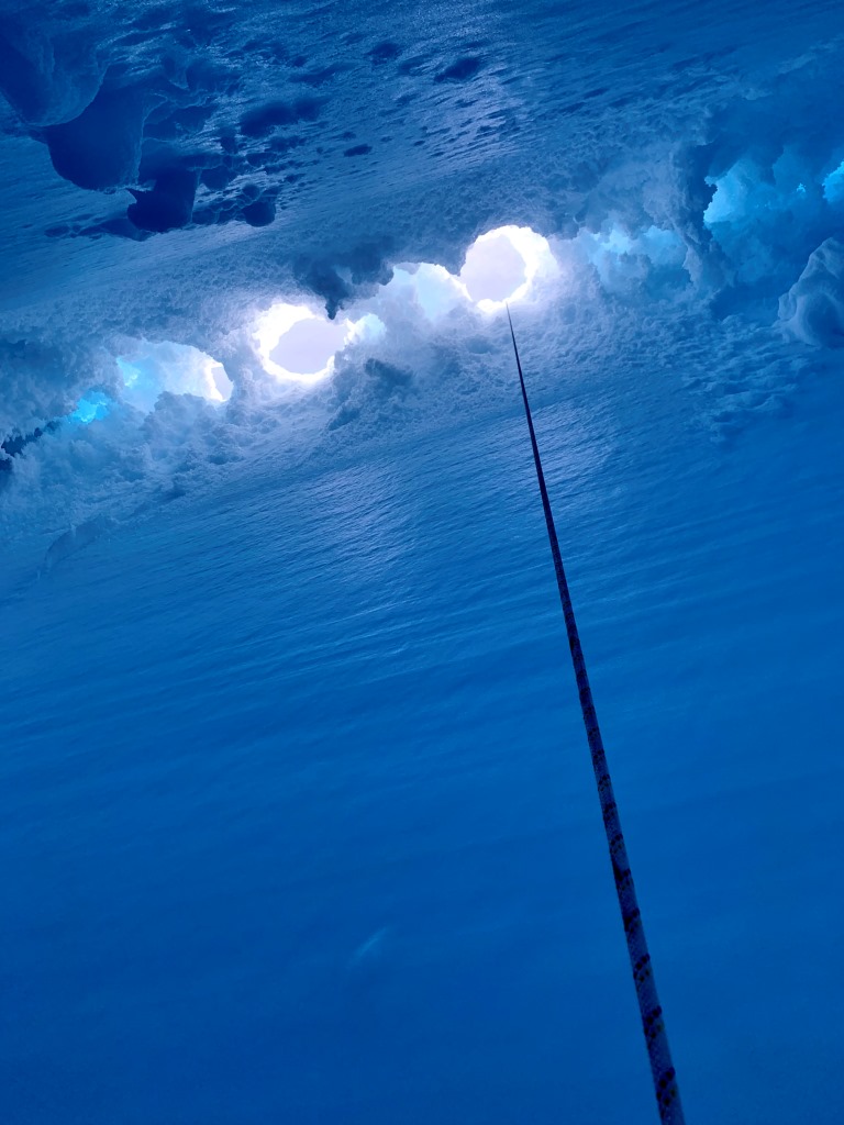 It is important to train the right methods how to rescue someone who has fallen into a crevasse. In addition to the image here there is also a short video giving an impression from inside the crevasse.