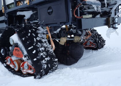 On Monday and Tuesday we were occupied by following some necessary training courses on safety within and around the station, medics, the use of a GPS, skidoo driving and how to deal with crevasses. Yesterday, Preben was the chosen victim to fall into a crevasse. Christophe (paramedic) rescued him and the crew of the Venturi team was called upon to do the evacuation. They are at the base to test their electric snowcat, which drives on batteries. Since the PES is a zero emission station, we are able to produce our own energy and this works really well! You can find more feedback here: https://www.brusselstimes.com/belgium-all-news/198304/belgian-polar-station-in-antarctica-deploys-first-e-vehicle-of-its-kind?utm_medium=Social&utm_source=Twitter#Echobox=1639836359