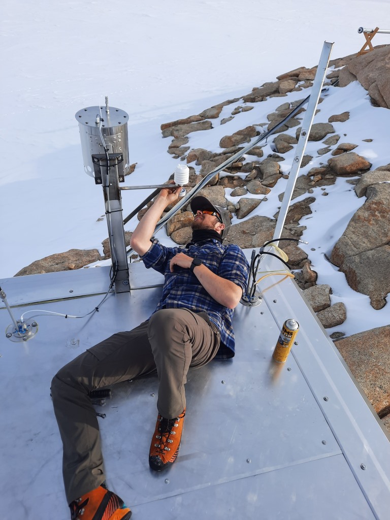 This week we were busy installing a WS100 Radar Precipitation Sensor (Smart Disdrometer) at the station, so we can differentiate between the different types of precipitation. Our small AWS has been read out after the storm we had this week and it worked perfectly! The goal is now to also install such a small AWS at the Nuna tak mountain and at the plateau.