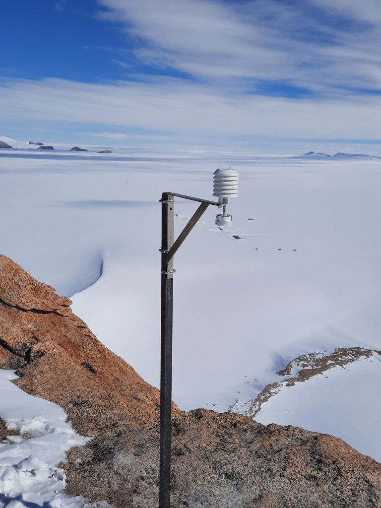 Another instrument on that list is our mini weatherstation (Fig. 4-2 ) It measures pressure, relative humidity and temperature and can work for one year in extreme weatherconditions autonomously on just one small battery! We will install three of those, the first one has been installed on the roof of the southern container. Another one will be installed on top of the Utsteinen nunatak and the third one at our remote site. Besides the local meteo data, it will give us also a permanent view of the meteo data at three different altitudes.