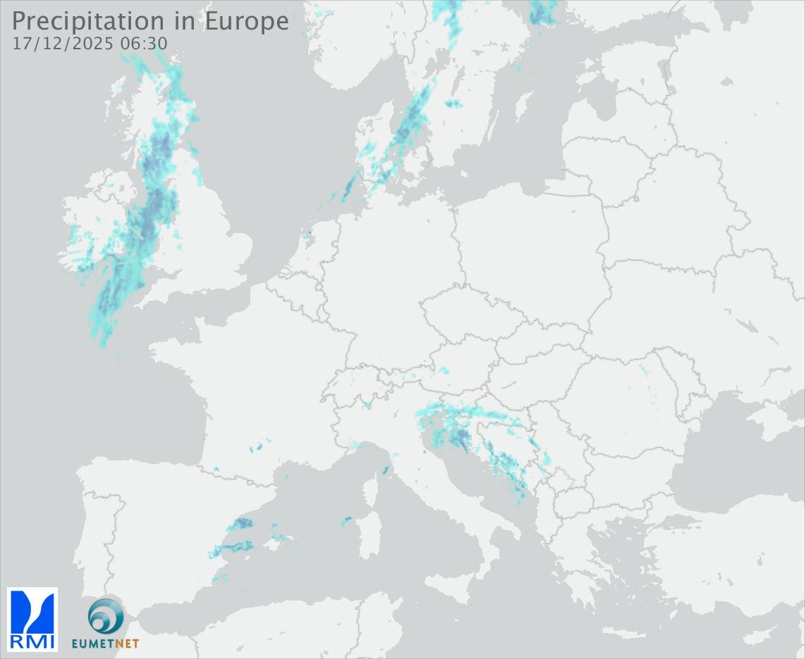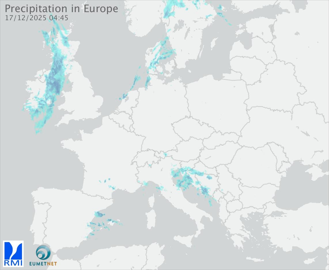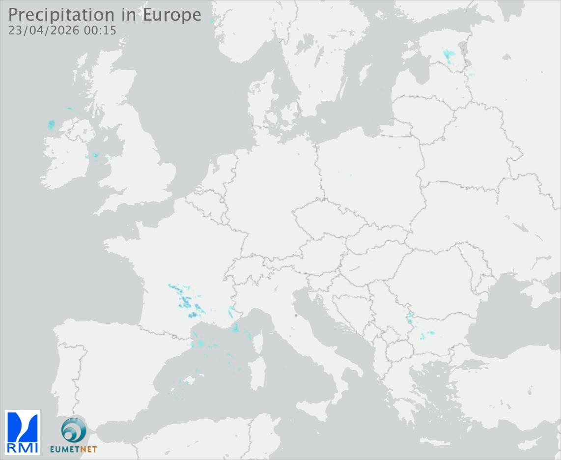 This animation shows the fallen precipitation observed by the radars of the European members of the OPERA program of Eumetnet.