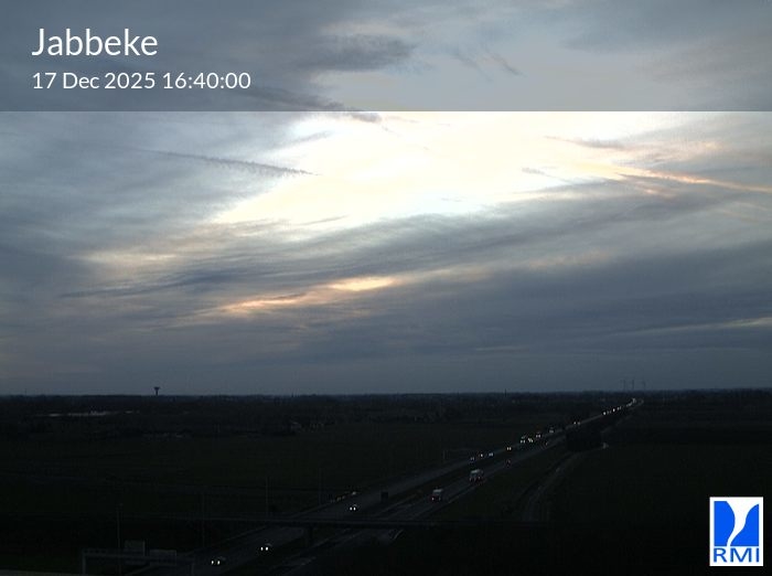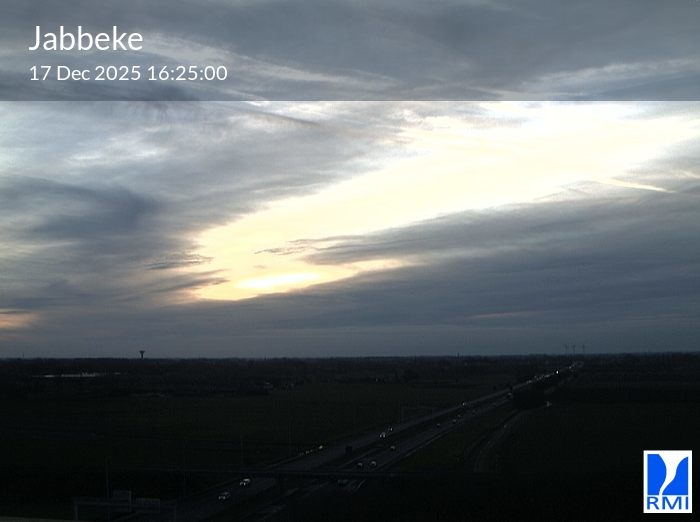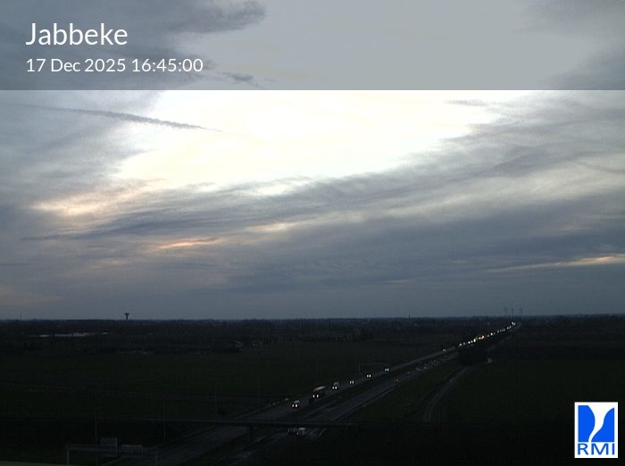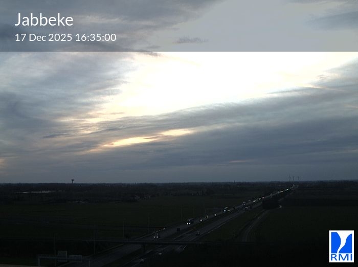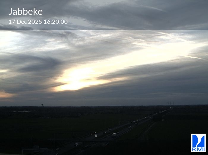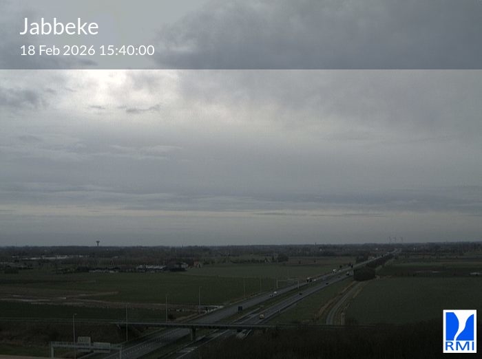 The webcam is located on the tower of the RMI weather radar in Jabbeke at the junction of the E40 highway towards France and the A10 to the coast (Ostend).