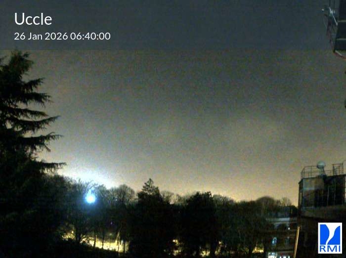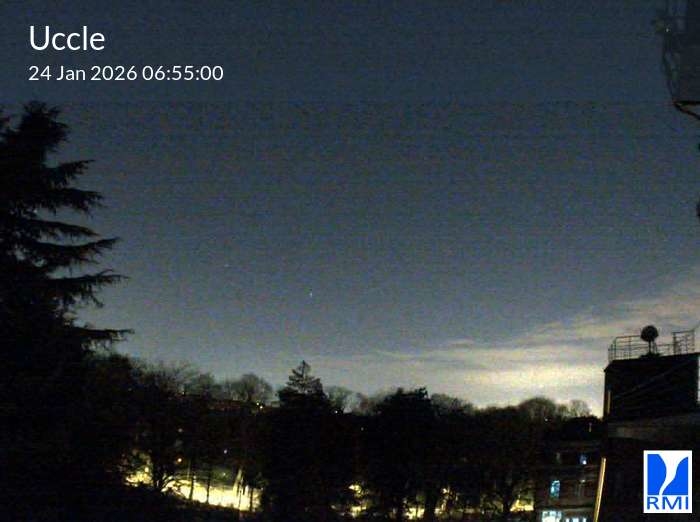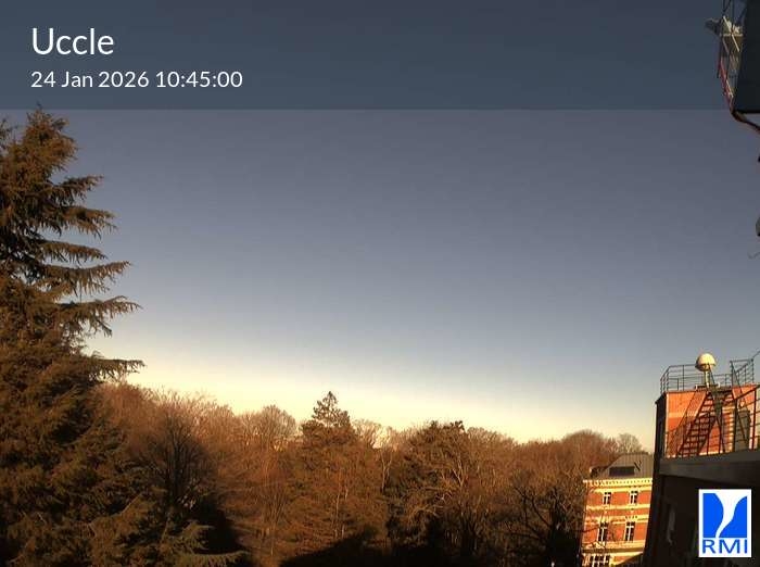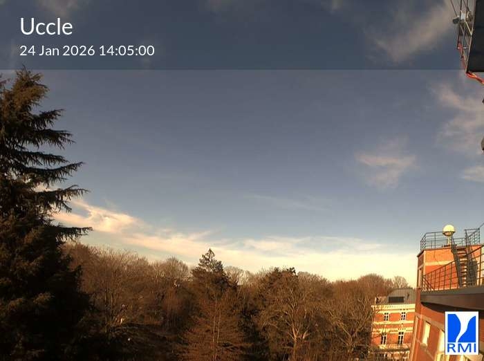 This webcam is situated on top of the observation tower in the RMI park in Uccle and is oriented to the North to avoid direct sunlight at noon.